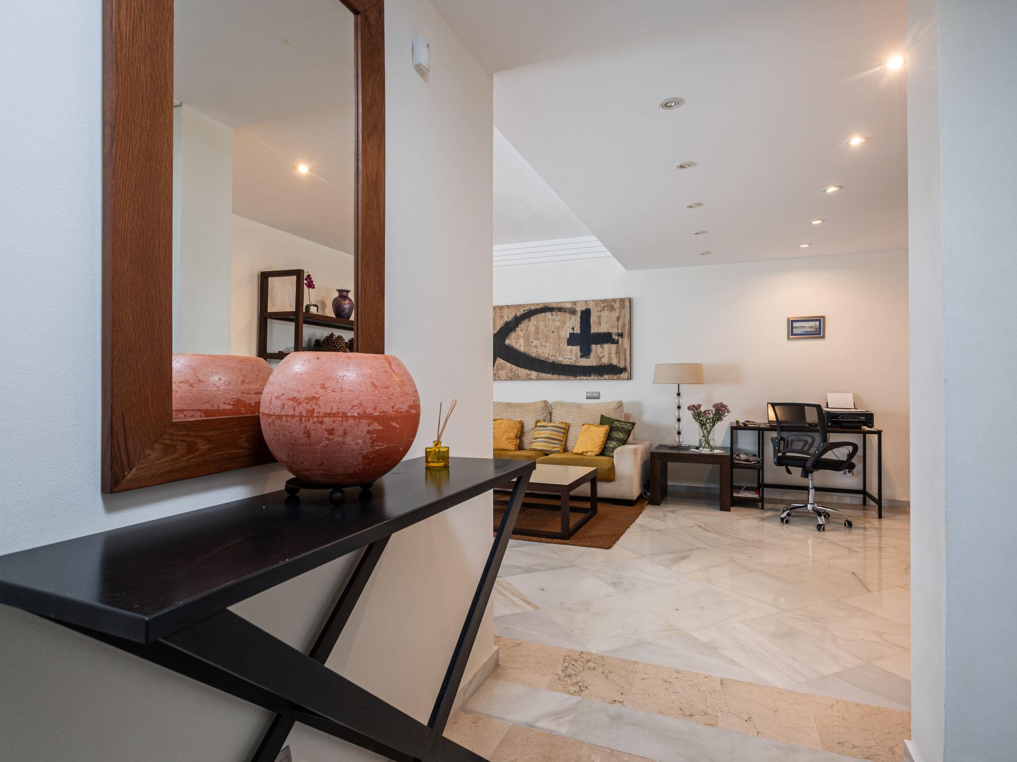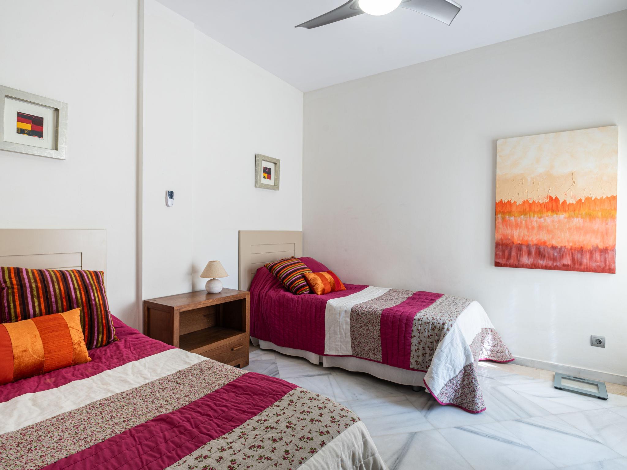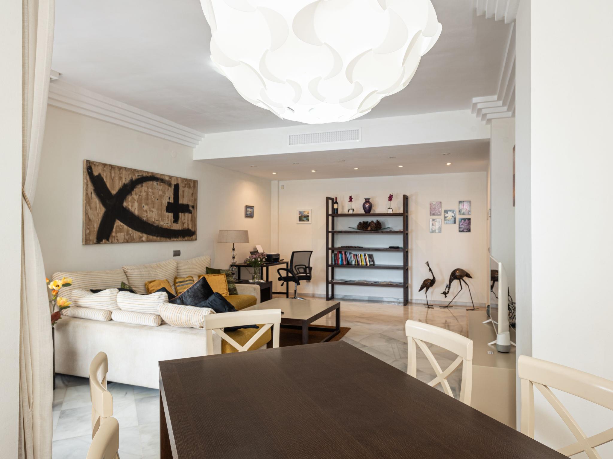 "Fuente Aloha", 3-room apartment 110 m2 on 1st floor. Spacious and bright, beautiful and tasteful furnishings: living/dining room with digital TV, air conditioning and forced-air heating. Exit to the terrace. 1 room with 1 french bed (150 cm, length 200 cm), air conditioning and forced-air heating. Exit to the terrace. 1 room with 2 beds (90 cm, length 190 cm), air conditioning and forced-air heating. Kitchen (oven, dishwasher, 3 ceramic glass hob hotplates, toaster, kettle, microwave, freezer, electric coffee machine). Exit to the balcony. Bath/bidet/WC, shower/WC. Terrace 28 m2. Terrace furniture, barbecue, deck chairs (2). View of the garden. Facilities: washing machine, iron, children's high chair, baby cot, hair dryer. Internet (WiFi, free). Garage space n 81. Please note: non-smokers only. VUT/MA/06324 // Reg. Nr.: ESFCTU0000290410006884660000000000000000VUT/MA/063246