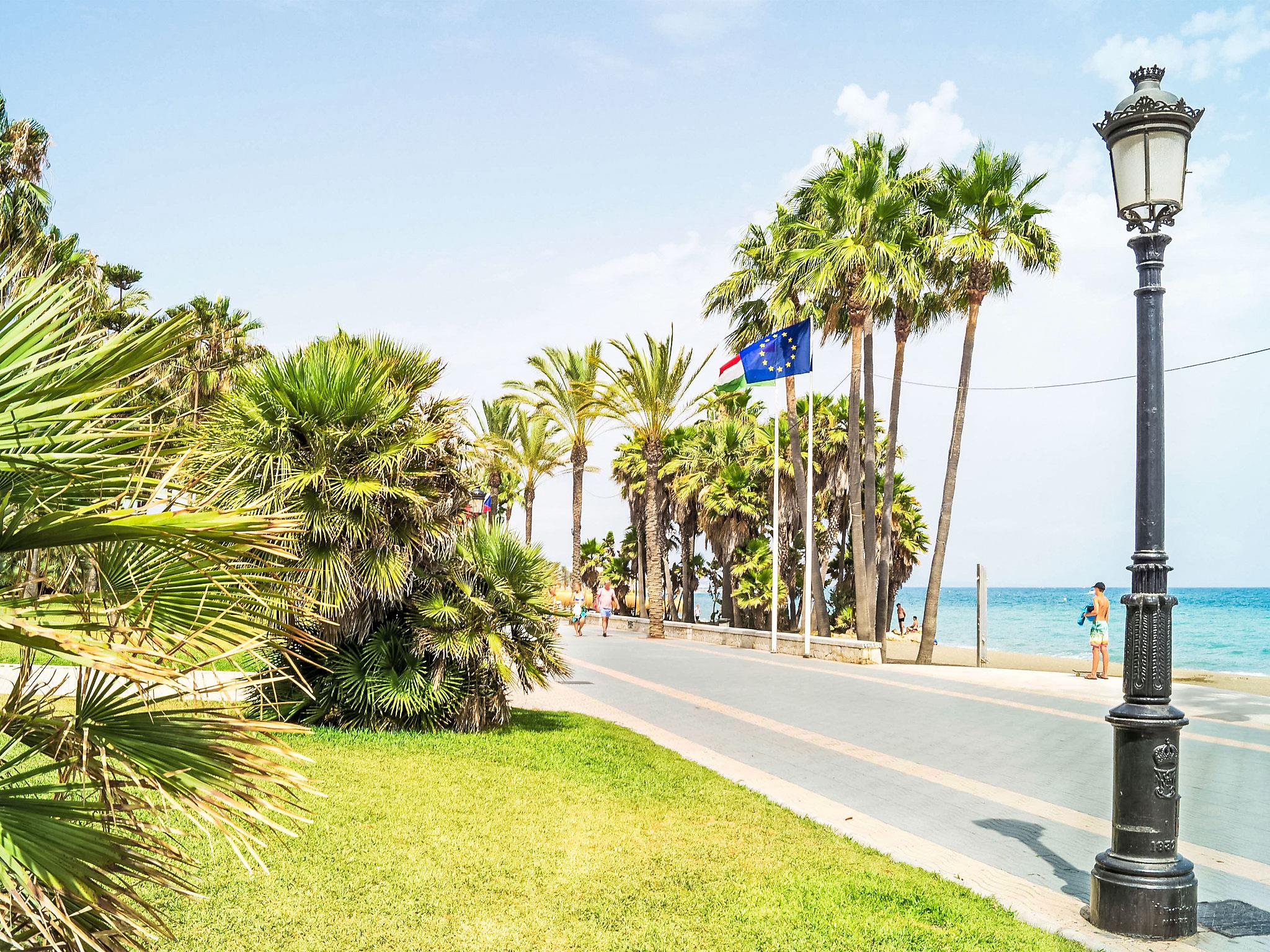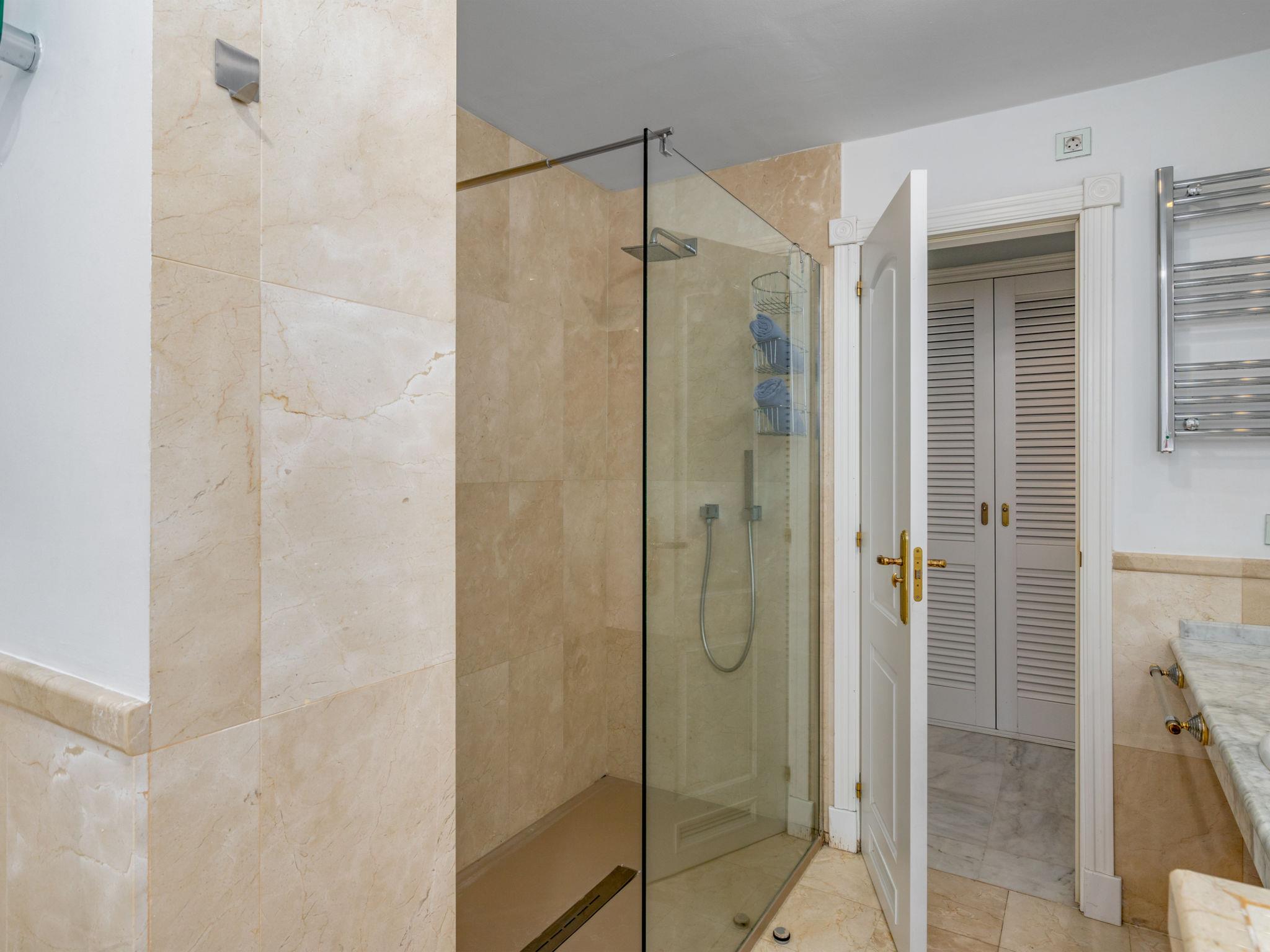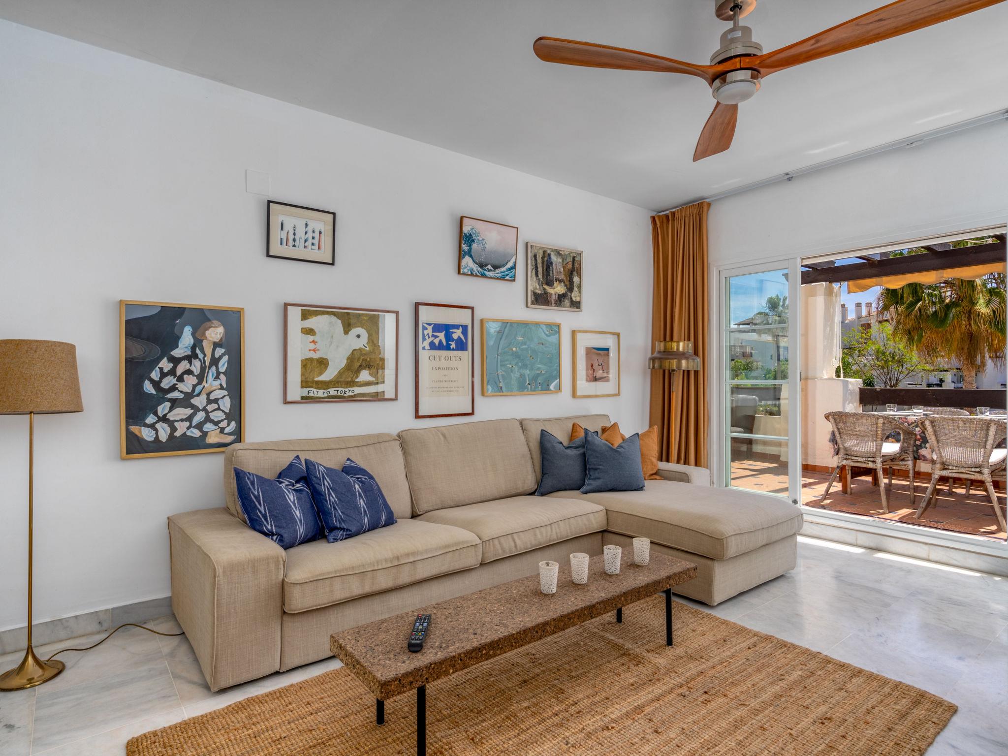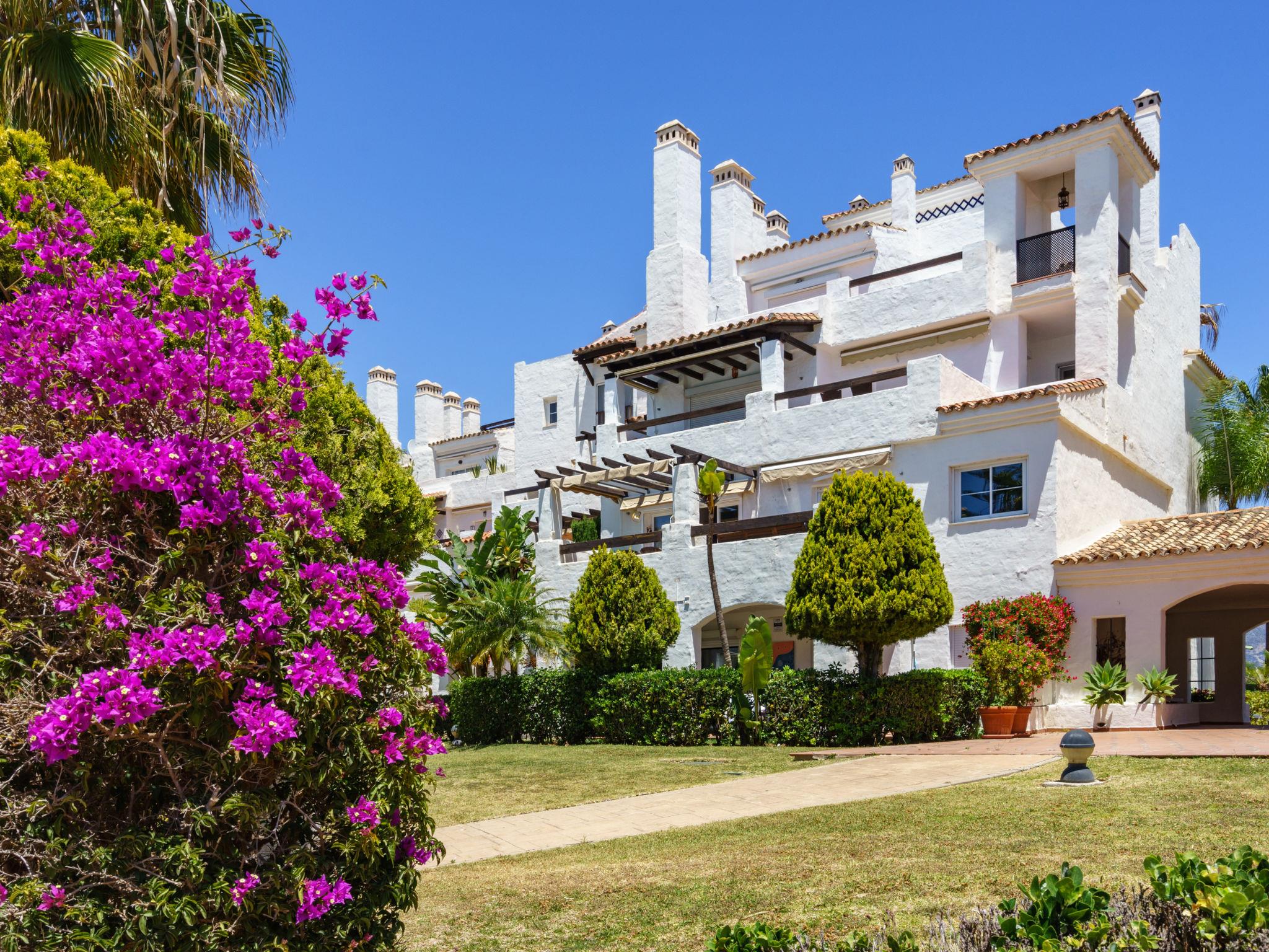 San Pedro playa: Beautiful apartment block "Las Adelfas". In the resort 400 m from the centre of San Pedro de Alcantara, 3 km from the centre of Puerto Banus, 7 km from the centre of Marbella, in a quiet, sunny position, 100 m from the sea, from the beach, road to cross. For shared use: beautiful garden to relax, 2 swimming pools (40 x 20 m, depth 5 - 220 cm, seasonal availability: 01.May. - 30.Sep.). Children's pool, outdoor shower. In the house: air conditioning, washing machine. Communal covered parking. Bus stop "Boulevard San Pedro" 900 m, sandy beach 100 m. Golf course (18 hole) 2 km. 24hr guard. Neighbourhood highly sensitive to noise. Quietness and good behaviour expected.