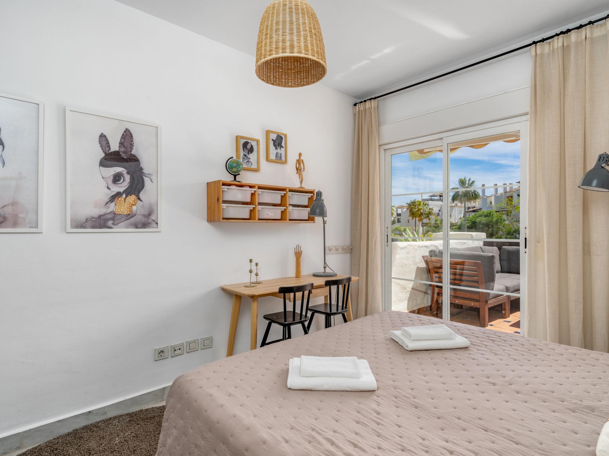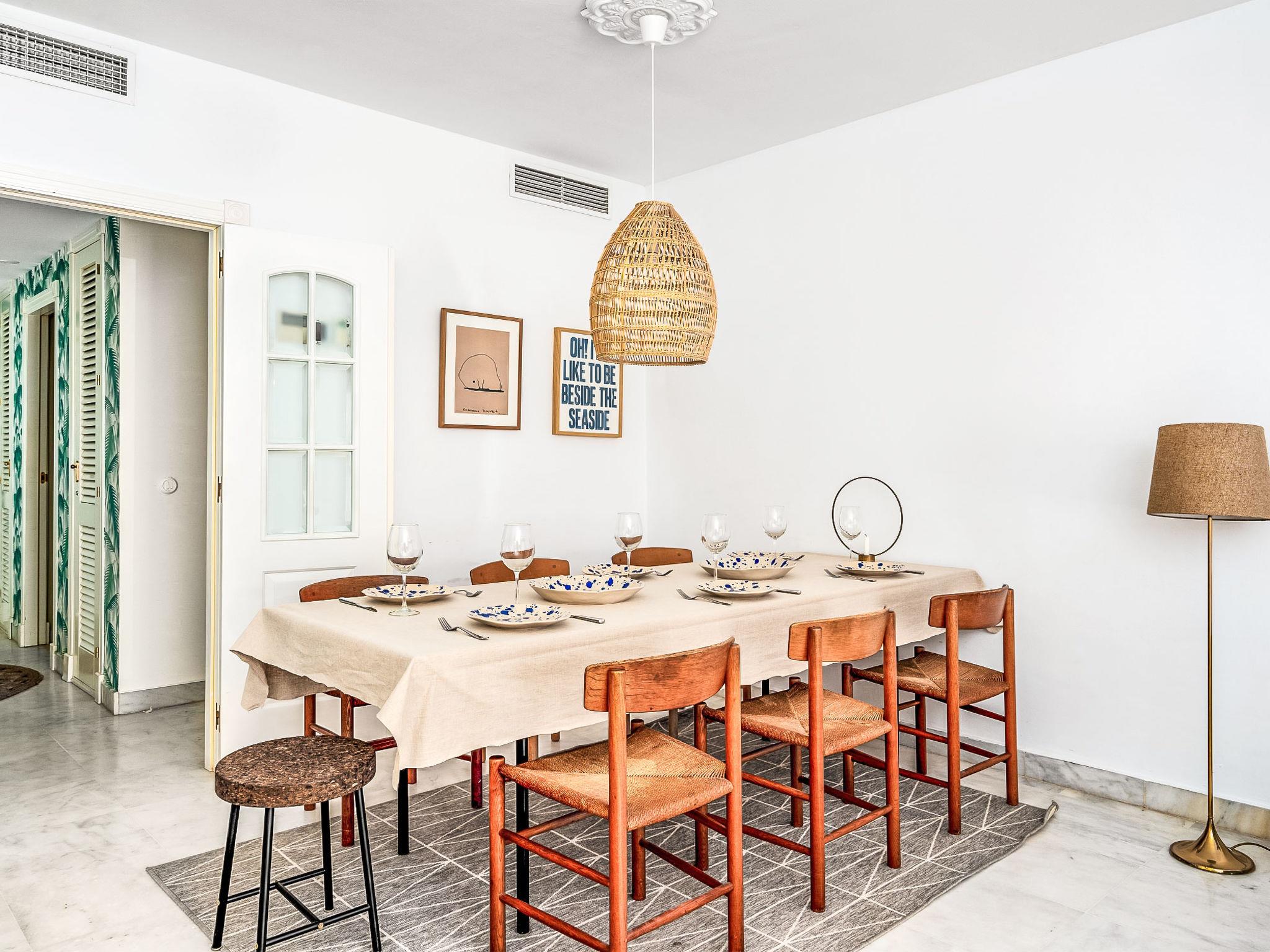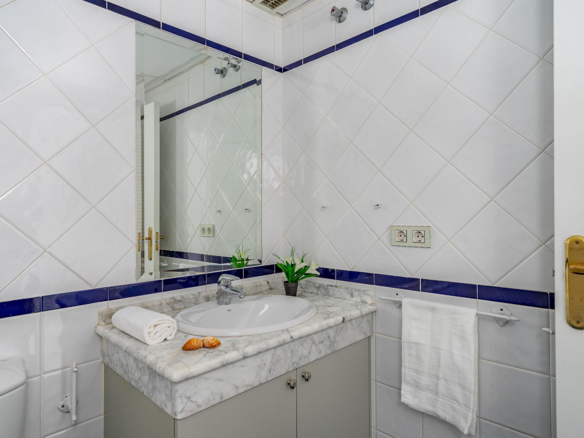 "Las Adelfas", 4-room apartment 135 m2 on 1st floor. Spacious and bright, renovated in 2016, beautiful furnishings: living/dining room with digital TV, air conditioning and forced-air heating. Exit to the terrace. 3 rooms, each room with 1 double bed (180 cm, length 200 cm), air conditioning and forced-air heating. Kitchen (oven, dishwasher, 4 ceramic glass hob hotplates, microwave). Bath/WC, sep. WC, bath/shower/bidet/WC. Air-conditioning, forced-air heating. Terrace, south-west facing position. Terrace furniture. View of the swimming pool and the garden. Facilities: washing machine, children's high chair, baby cot. Internet (WiFi, free). Parking space n 1. Please note: suitable for families. Non-smokers only. VFT/MA/16505 // Reg. Nr.: ESFCTU0000290420004434370000000000000000VFT/MA/165059