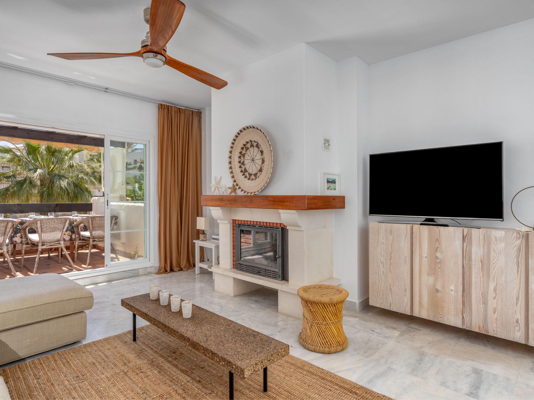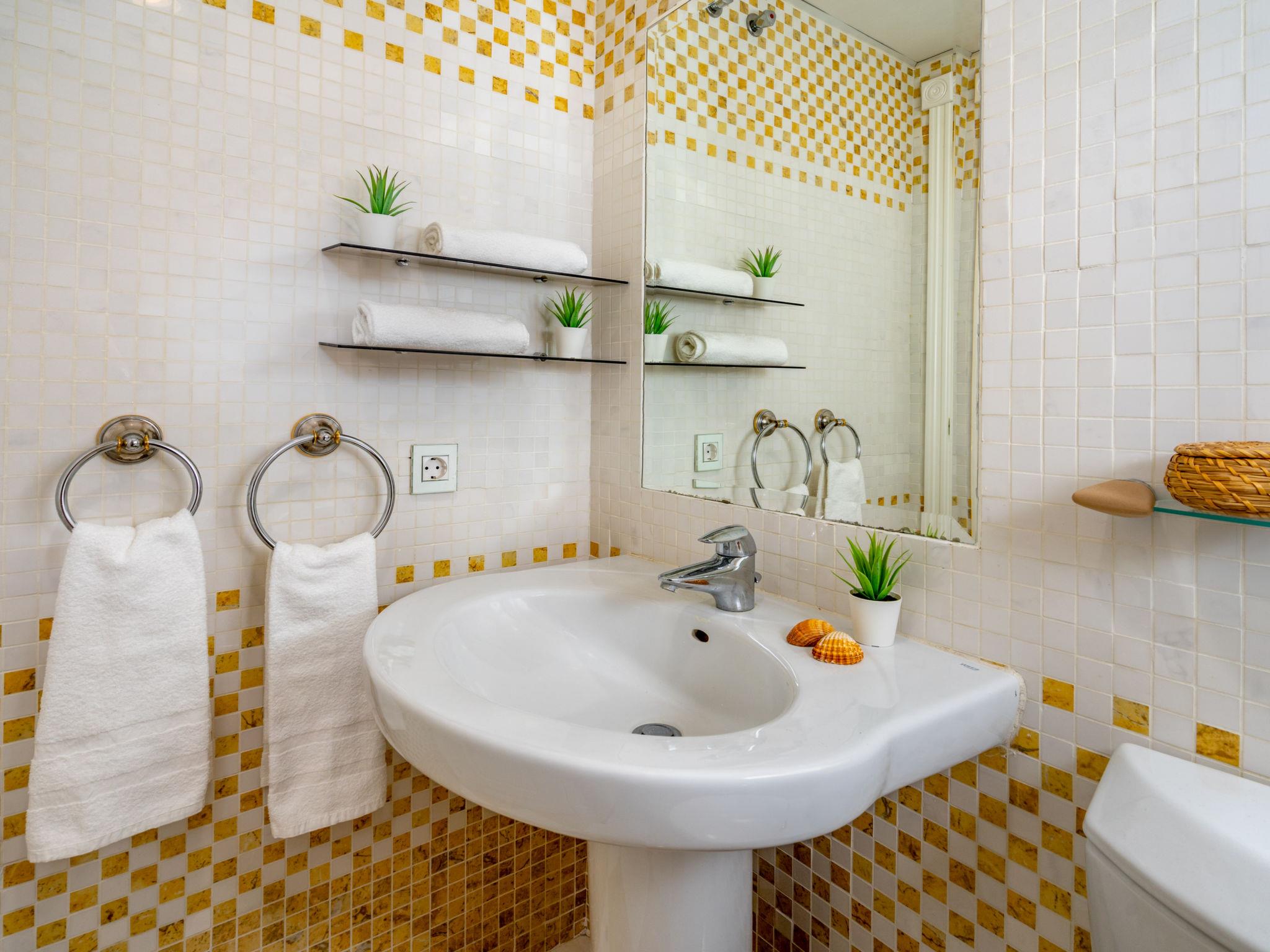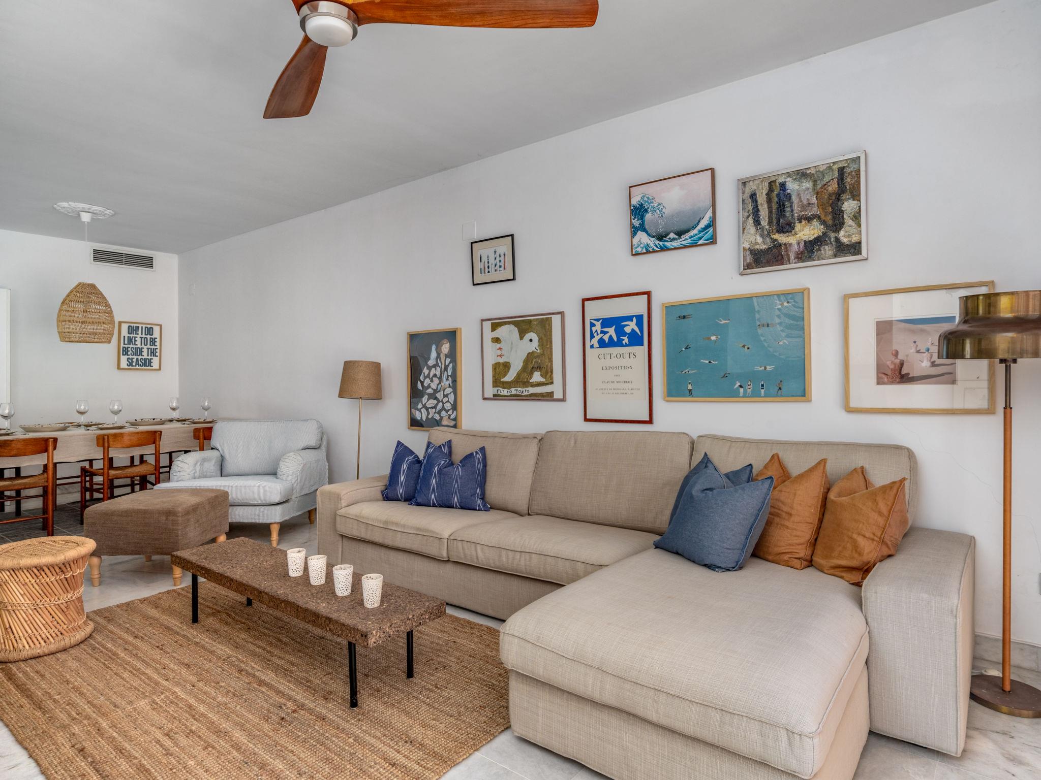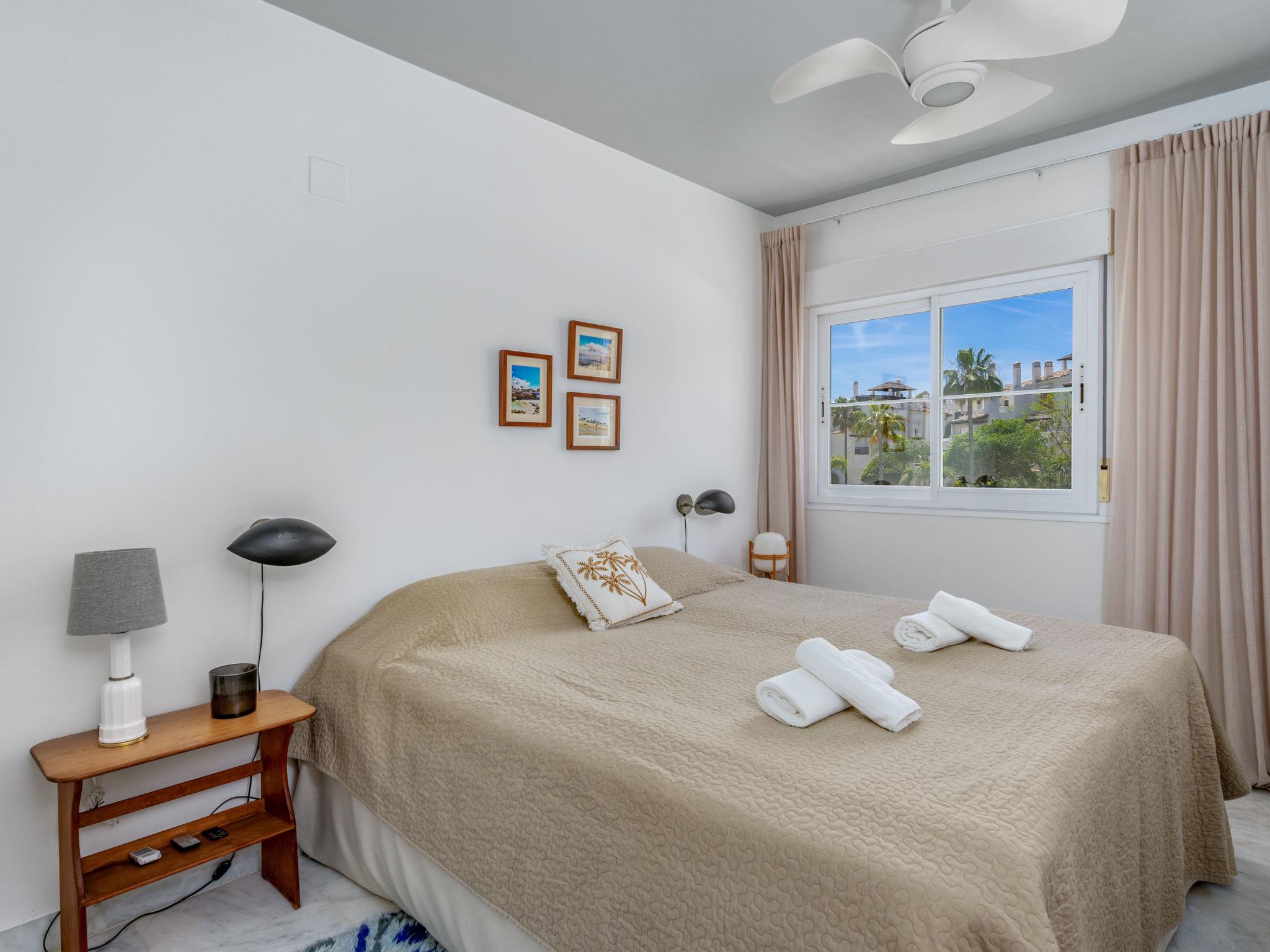 "Las Adelfas", 4-room apartment 135 m2 on 1st floor. Spacious and bright, renovated in 2016, beautiful furnishings: living/dining room with digital TV, air conditioning and forced-air heating. Exit to the terrace. 3 rooms, each room with 1 double bed (180 cm, length 200 cm), air conditioning and forced-air heating. Kitchen (oven, dishwasher, 4 ceramic glass hob hotplates, microwave). Bath/WC, sep. WC, bath/shower/bidet/WC. Air-conditioning, forced-air heating. Terrace, south-west facing position. Terrace furniture. View of the swimming pool and the garden. Facilities: washing machine, children's high chair, baby cot. Internet (WiFi, free). Parking space n 1. Please note: suitable for families. Non-smokers only. VFT/MA/16505 // Reg. Nr.: ESFCTU0000290420004434370000000000000000VFT/MA/165059