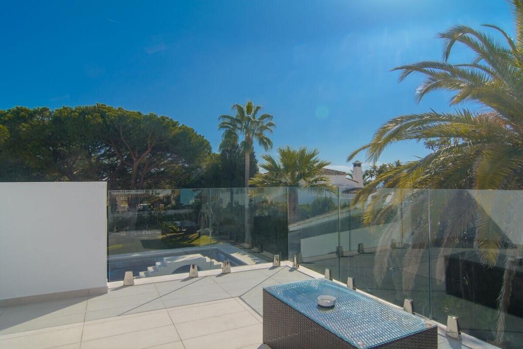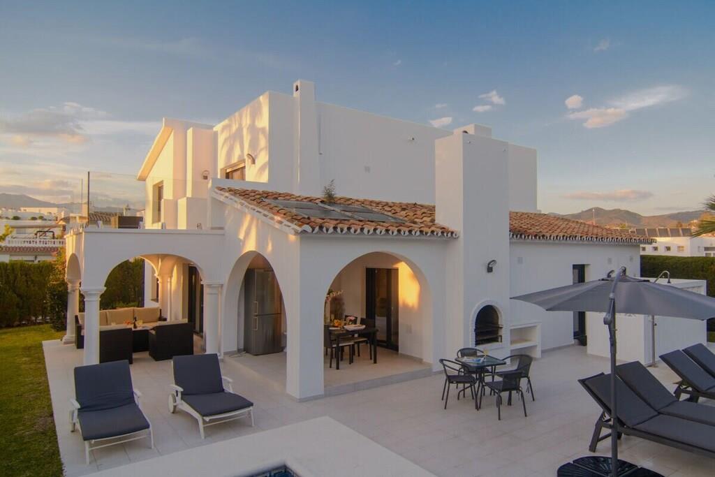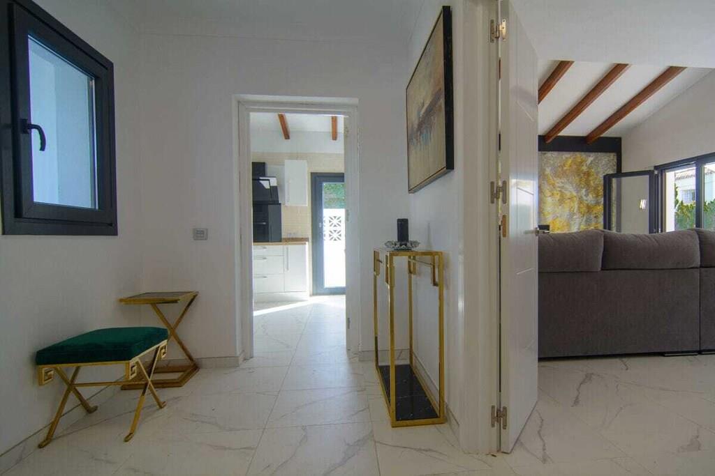Sind Sie auf der Suche nach einem Urlaubsort, der die andalusische Tradition mit dem Bedürfnis nach modernem Design perfekt verbindet? Besuchen Sie unsere schöne Villa und alle Ihre Erwartungen werden erfüllt werden! Dieses nach Süden ausgerichtete Stadthaus mit 5 Schlafzimmern (300m2) befindet sich auf einem großzügigen Grundstück (1000m2), hat eine mediterrane Vegetation, einen besonderen L-förmigen Pool mit römischer Treppe (der Hauptteil ist 9mx4m, das Kinderbecken ist 3m x 3m), Sonnenliegen, Terrassen, Grillplatz, einen wunderschönen Blick auf das Meer und die Berge, ein gepflegtes und sorgfältig durchdachtes Design, moderne und doch sehr stilvolle Möbel und Dekorationen. ~ Innen Im Erdgeschoss befinden sich das Wohnzimmer, zwei Schlafzimmer, eine Küche und ein Familienbad. Das Wohnzimmer besteht aus zwei verschiedenen Bereichen: dem Sitz- und dem Essbereich. Die schönen Marmorböden und das gepflegte Design, die Holzbalken und die exquisite Dekoration machen Ihren Aufenthalt so angenehm wie möglich. In der Sitzecke steht ein bequemes Sofa vor einem Flachbildfernseher (iptv mit internationalen Kanälen). Der Kamin vervollständigt die heimelige Atmosphäre. Der Essbereich verfügt über einen eleganten Esstisch für sechs Personen mit bequemen gepolsterten Stühlen. Von hier aus können Sie durch eine Schiebetür auf die Hauptterrasse gelangen. Im Erdgeschoss befinden sich zwei Schlafzimmer, die sich ein Familienbad teilen. Eines der Schlafzimmer hat zwei Einzelbetten (2x90x200cm), geräumige Kleiderschränke, einen Flachbildfernseher (iptv mit internationalen Kanälen), zwei Wandlampen und einen Nachttisch. Das Familienbadezimmer hat eine begehbare Dusche, Waschbecken, Toilette und ein Fenster für natürliches Licht. Das zweite Schlafzimmer hat ein Doppelbett (160x200cm), zwei Nachttische, Wandlampen, große Schränke, einen Tisch, der ideal ist, wenn Sie an Ihrem Laptop arbeiten, und einen Flachbildfernseher (iptv mit internationalen Kanälen). Neben der kleinen Eingangshalle befindet sich die Küche, die sehr praktisch ist und über alle notwendigen Geräte verfügt: Ceranfeld, Backofen, Mikrowelle, Nabe, Kühlschrank, Toaster, Wasserkocher. Sie hat auch zwei Barhocker, die die moderne Atmosphäre vervollständigen. Im Obergeschoss befinden sich drei Schlafzimmer, ein Bad en suite, ein Familienbad und eine Terrasse, von der aus Sie den schönen Garten mit Pool, das Meer und die Berge bewundern können. Das Hauptschlafzimmer hat ein Doppelbett (180x200cm), zwei Nachttische, einen geräumigen Kleiderschrank, eine Kommode, zwei Hocker und einen Flachbildfernseher (iptv mit internationalen Kanälen). Das Badezimmer hat ein sehr ansprechendes Design und eine perfekte Ausstattung mit Wandlampen, zwei Spiegeln, einer begehbaren Dusche mit Regenkopf, Waschbecken und Toilette. Das zweite Schlafzimmer im Obergeschoss hat ein Doppelbett (160x200cm) mit Nachttisch, einen geräumigen Kleiderschrank und sichtbare Holzbalken. Das dritte Schlafzimmer im Obergeschoss verfügt über ein Doppelbett (140x200cm), einen geräumigen Kleiderschrank, einen Nachttisch, einen Tisch für den Laptop und einen Flachbildfernseher (iptv mit internationalen Kanälen). Diese beiden Schlafzimmer teilen sich ein Familienbadezimmer mit einer begehbaren Dusche mit Regendusche, Waschbecken, Toilette und Fenster. Alle Schlafzimmer sind klimatisiert. ~Terrassen und Garten Die schöne, geräumige Terrasse, die vom Wohnzimmer aus zugänglich ist, ist mit einem Rattan-Esstisch für sechs Personen ausgestattet und hat Zugang zu einem großen Kühlschrank. Von hier aus können Sie die schöne mediterrane Vegetation des großen Gartens (1000m2) und den Pool bewundern. Der gepflegte Garten, der den Pool umgibt, ist mit schönen Palmen bepflanzt und ein grüner Zaun verleiht diesem Raum Intimität. Ein kleiner Esstisch für vier Personen steht neben dem Pool, mit einem Sonnenschirm für die heißen Sommertage. Der Grillplatz ermöglicht es Ihnen, an kühlen Abenden besondere Mahlzeiten zuzubereiten. Wenn Sie keine Lust haben, zum Meer zu laufen, können Sie sich am Pool auf einer der sechs Sonnenliegen entspannen, die hier für Ihren Komfort aufgestellt sind. Das L-förmige Schwimmbad hat zwei verschiedene Bereiche: der Hauptteil ist 9mx4m, das Kinderbecken ist 3m x 3m groß, eine Schwimmbrücke trennt die beiden Bereiche und eine römische Treppe. Die obere Terrasse (12m2) im ersten Stock bietet einen schönen Blick auf das Meer, den Pool, den Garten, die Urbanisation und die Berge. Der kleine Rattan-Couchtisch ermöglicht es Ihnen, die perfekte Aussicht zu genießen, während Sie Ihren Morgenkaffee trinken. Dienstprogramme: TV (6), Zentralheizung, Kamin, Klimaanlage, Ventilatoren, Toaster, Bügeleisen, Geschirrspüler, Backofen, Mikrowelle, Kühlschrank, Gefrierschrank, Waschmaschine, Trockner, Kaffeemaschine, Wasserkocher, BBQ. Räume: 5 Schlafzimmer, 3 Bäder, Wohnzimmer mit Essbereich und Sitzecke, 1 Küche. Möblierung: Einzelbetten (2), Doppelbetten (4), Sofas, Außensofa und Sessel mit Sitzgelegenheiten (6), Sonnenliegen (4), Esstisch (4), Esstisch auf Terrasse (6), Esstisch auf Terrasse (4). Jedes Schlafzimmer hat einen Kleiderschrank. Sonstiges: Bettwäsche und Handtücher inklusive. Kostenloses Internet WIFI verfügbar. Draußen: Große Terrasse, privater Außenpool, privater Garten, Grillplatz.