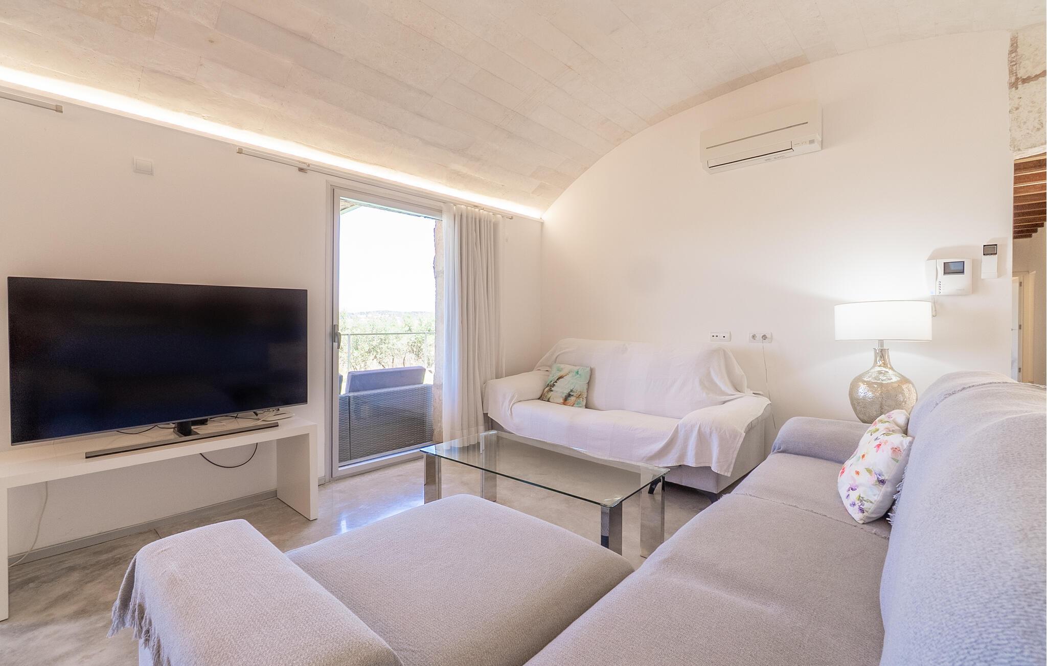 Dette mallorcanske feriehus giver jer de optimale rammer for en afslappende ferie i fredfyldte omgivelser. Find jer til rette i de rummelige sofaer i den lyse stue, se en film sammen eller slap blot af. Brug spiseområdet, der støder op til det store, moderne køkken, til hyggelige måltider. Tilbered regionale retter og lav mad sammen.