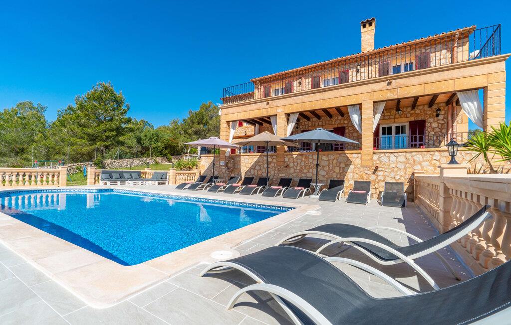 Villaen "Maria de Mendia", bygget i traditionel stenbrudskonstruktion og alligevel meget moderne, er et særdeles familievenligt hus, ikke kun på grund af sin størrelse og indretning, men også på grund af sine lave sæsonpriser hele året rundt. Omgivet af talrige træer ligger den to-etagers villa på en smuk ejendom med en smuk, uberørt beliggenhed. I kan nyde den smukke udsigt over de bølgende bakker, der præger øens østlige landskab, fra talrige steder omkring villaen: 12 udendørs siddepladser og lige så mange liggestole tilbyder masser af muligheder for vores gæster. Den moderne, ubebyggede stenvilla har et smukt designet udendørsområde: den rummelige pool med den runde, flade trappe ligger kun få skridt under huset og er omgivet af en vidunderlig solterrasse. Hver gæst har sin egen liggestol, og der er også i alt 3 parasoller til rådighed. Den praktiske udendørs bruser giver jer mulighed for at bruse af efter en lang svømmetur i poolen uden at skulle hjem - især praktisk for rejsende med små børn. Fra poolen fører terrassen trin til terrasseområdet omkring huset og til verandaen, som er delvist overdækket takket være balkonen på første sal ovenover. Udover en moderne siddegruppe i polyrattan finder I her også et langt spisebord. At spise udenfor med murstensgrillen placeret lige ved siden af det overdækkede område er bare en rigtig fornøjelse. Den ekstra spiseplads, som er placeret uden for den overdækkede del af terrassen, kan skygges ved hjælp af et maritimt fortelt. Fra poolen eller terrassen kan I få adgang til husets indre via flere gulv-til-loft vinduer. Det rummelige køkkenområde er placeret bag store vindueselementer, hvis buede former minder om et flettet kurvehåndtag og oversvømmer rummet med behagelig lysstyrke. Køkkenet har adskillige skabe og en disk i amerikansk stil med mere end nok opbevaringsplads. De 3 farvede taburetter understreger områdets moderne og åbne karakter. "Fuldt møbleret" betyder ikke kun fast installerede elektriske apparater som ovn, mikroovn, stort køle-fryseskab og komfur, men også en blender, kaffemaskine, brødrister, elkedel og meget mere. Opholdsstuen med brune gulvfliser og komfortable sofaer fuldender sin hyggelige atmosfære ved hjælp af en pejs. Soveværelserne er alle moderne indrettede, har komfortable senge, og nogle er dekoreret med mønstret tapet af høj kvalitet. Fra nogle af soveværelserne på første sal er der adgang til den store altan, som I helt sikkert skal bruge ved solnedgang for at nyde stilheden og den vidunderlige naturlige udsigt med et godt glas mallorcansk rødvin. Der er 4 moderne badeværelser, nogle med hjørnebadekar eller -bruser, og 2 badeværelser er en-suite. Den rustikke og moderne villa "Maria de Mendia" ligger midt i et ganske enkelt smukt, naturligt miljø, mellem Manacors centrum og den maleriske havneby Portocristo. I kan købe dagligvarer enten i Manacor eller Portocristo, hvor der også er et autentisk bondemarked om søndagen. "Calas de Mallorca", smukke naturstrande, men også nogle veludviklede bystrande, ligger langs østkysten og kan nås på 10-15 minutter. Bemærk venligst, at denne ejendom ikke accepterer ungdomsgrupper eller polterabender. En ungdomsgruppe på denne ejendom består af personer på 23 år eller derunder. Book ikke denne ejendom, hvis I er en ungdomsgruppe eller polterabend, da jeres reservation vil blive afvist, når den er booket, hvilket også kan være tilfældet ved ankomst til ejendommen eller under jeres ophold, og I vil ikke modtage en refusion