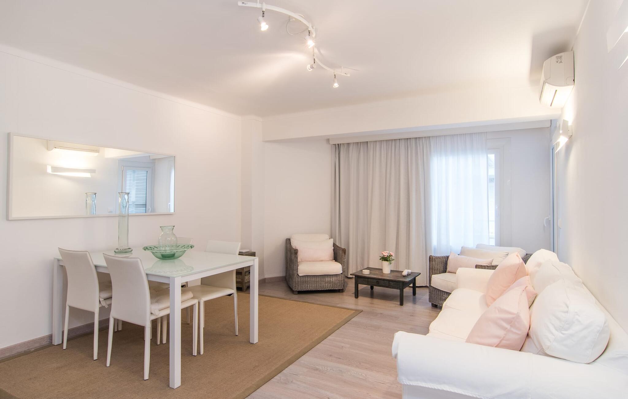 Gemt bag den ret uanselige facade på et etagehus, som kun ligger få hundrede meter fra havnen og havnestranden, ligger denne puristiske 3-værelses lejlighed med parkeringsplads ved gaden. Den overdækkede altan på bagsiden af huset viser sig at være en lille udendørs oase, hvorfra man kan nyde en smuk udsigt over haven og kvarteret. Der er plads til en behagelig udendørs sofa, samt to liggestole og et spisebord. Andre praktiske funktioner: den udendørs håndvask og bedst af alt: det udendørs badeværelse. Med sit helt hvide design giver "Marieta I" dig mulighed for at lade dine egne farver skinne og vil glæde dig med den behagelige kølighed i dets værelser. Vinduer og døre lukker lys og luft ind (ventilatorer og aircondition er også inkluderet), mens interiøret giver et behageligt tilbagetog fra aktiviteterne udenfor. Efter en dag på havet kan du hurtigt slukke og ikke blive distraheret af andre indtryk. Tre mindre soveværelser er grupperet omkring stue/spisestue. Du kan vælge mellem to dobbeltsenge (1,60 x 2 m) og to enkeltsenge med enkeltmadrasser (0,90 x 2 m). Indbyggede skabe giver tilstrækkelig opbevaringsplads. Der er også et moderne badeværelse med bruseniche. Det fuldt udstyrede, lyse køkken har direkte udgang til altanen, så borddækning og klargøring kan klares på ingen tid. Udstyret med en vaskemaskine gør dette feriehus mulighed for strandture, udflugter og vandsport, selvom du rejser let. Blå timer, rosenrød udsigt og alt andet end almindeligt: Den sydlige del af øen vil fortrylle dig med sine farver - fra Cueva Azul på Gedeøen til lagunerne i Ses Salines - og afsløre dens kreative side. Den tidligere fiskerlandsby Colònia de Sant Jordi tiltrækker gæster, der elsker vandet, ønsker at være aktive eller er forelsket i den naturlige skønhed i denne region. Kystafsnittet har huler, bugter, naturlige strande og små øer, og Cabrera-marinereservatet tiltrækker dykkere ind i den artsrige undervandsverden. Der sker altid noget ved Platja des Port ved marinaen og ved Platja d'es Dolç, omkring 2 km væk, som også tilbyder familier sikker svømning. En tapas-tur, der tilbydes om sommeren, tager dig til forskellige steder i byen; Holder du dig lige i centrum, kan du se bort fra tiden og forkæle dig selv med endnu et glas vin på grund af den kortere gåtur hjem. Centralt beliggende, omgivet af smukke strande og vandsportscentre: "Marieta I", en moderne loftslejlighed i hvid stil, tager dig direkte til havet! At gå til havnen, fyret, stranden, supermarkedet og det allerede dækkede bord - det kunne ikke være mere praktisk. Ses Salines, Santanyí og Portocolom er ideelle til korte ture på hjul. Dette er et Fincallorca feriehus.