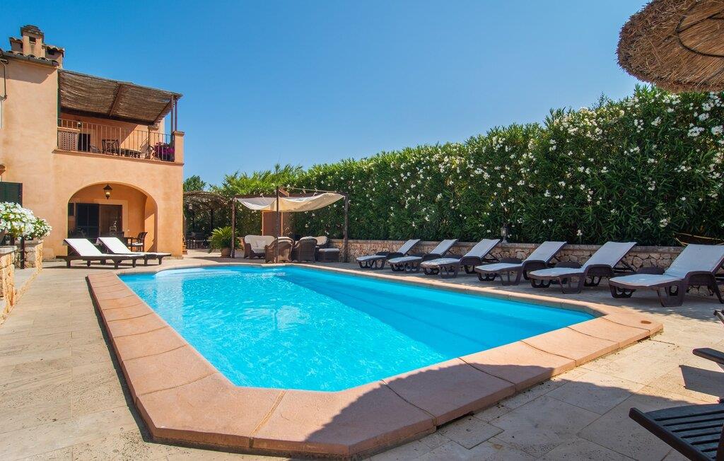 "Martijoan" er et glimrende eksempel på et privat mallorcansk landsted. Vores luftfotos fremhæver placeringen ved "Campo", selvom I allerede kan se Manacors skyline i baggrunden. Området er domineret af landbrugsjord, som sammen med den smukke have tilføjer villaens charme. Gå en rolig tur rundt i ejendommen, hvor I finder attraktive siddepladser både i haven og i huset. Skyggefulde terrasser med daybeds, morgenmadssteder til jeres morgenkaffe, bambus- eller stofparasoller med fede møbler, en spiseplads på verandaen, et opholdsområde på altanen ovenpå, det hyggelige hjørne i haven foran dammen - disse er bare nogle få af de områder, der er tilgængelige. Det er værd at opdage og vil især glæde jeres børn. Ud over opdagelsesturen i det åbne område er der fitness- og spillelokale i garagen til rådighed for store og små. Der er også mål i en fodboldkamp, og intet står i vejen for en bordtennis- eller bordfodboldturnering. To andre højdepunkter skal nævnes: den store pool og det overdækkede udendørs køkken med grill og ovn. Poolen er indlejret i en terrasse udstyret med liggestole og en chill lounge lavet af kurvemøbler. Udetoilettet er særligt praktisk, da det betyder, at I ikke behøver at afbryde jeres aktiviteter for længe. I sommerkøkkenet kan I tilberede en grill af frisk fisk, kød og grøntsager og nyde de smagfulde produkter, som Mallorca har at byde på. Den velholdte nybyggede villa med charmen fra en mallorcansk landejendom byder på et fantastisk layout, perfekt hvis I rejser med to eller flere familier. Huset byder på komplette faciliteter på begge etager, hver med stue og køkken, så I kan tilbringe jeres ferie sammen på trods af at de er noget adskilt. I stueetagen ligger landstedets køkken med pejs ved siden af spisepladsen og grænser op til den åbne opholdsstue. Møblerne er af høj kvalitet og er traditionelt suppleret med antikke møbler. Indretningen ser meget moderne ud, med et strejf af nostalgi. Et klaver supplerer det attraktive "Ensemble des Parterres", som også har to udsøgt møblerede soveværelser med masser af opbevaringsplads og et moderne badeværelse med badekar og bruser. Ovenpå finder I et lignende anlæg med en stue, et meget moderne, fuldt udstyret køkken arrangeret omkring en hyggelig ø og en pejs. Tre soveværelser med aircondition, komfortable dobbeltsenge og et moderne brusebad fuldender denne selvforsynende boligenhed, som derfor er perfekt til en anden familie. På øverste etage er der desuden en overdækket altan med pooludsigt, hvor I kan tilbringe hyggelige timer med en smuk udsigt. Denne opdeling giver en større rejsegruppe meget behagelig autonomi - den ene ferierytme forstyrrer ikke den anden, og samværet med at grille og lege er udelukkende til afslapning. Lille bemærkning: På grund af en aktuel teknisk indstilling på den digitale elmåler skal de tre klimaanlæg tændes efter hinanden og kan ikke bruges samtidigt. Hvis en familie bevidst vælger en landvilla, som det er tilfældet med den anbefalede "Martijoan", kan de føle sig særligt frie. Det er endnu pænere, når I næsten er inden for synsvidde af en by. Da den alsidige villa er bekvemt placeret i nærheden af en vej, der nogle gange er hørbar, kan Manacor nås på 5 minutter i bil. Manacor er dog ikke en hvilken som helst by, men den næststørste på Mallorca. Oversat betyder navnet "hånden på hjertet", og det afspejler virkelig, hvor smuk byen er. Den er ikke kun kendt for sin perleindustri, men også for keramik, vin og meget mere. Der er et frugt- og grøntsagsmarked hver dag (undtagen søndage) på Placa Constitucio. Alt er perfekt til en selvbestemt ferie med venner og familie. Det vidunderlige layout og fantastiske indretning af den familievenlige villa "Martijoan" er ideelle til to familier, der rejser sammen. Huset er omgivet af et skønt havelandskab med mange detaljer og ligger helt landligt, ca 3 km fra Manacor. Her kan I gøre jeres daglige indkøb eller nyde en omfattende shoppingtur. Fantastisk smukke strande, som er relativt ukendte for turister, herunder Cala Varques, kan nemt nås i bil.