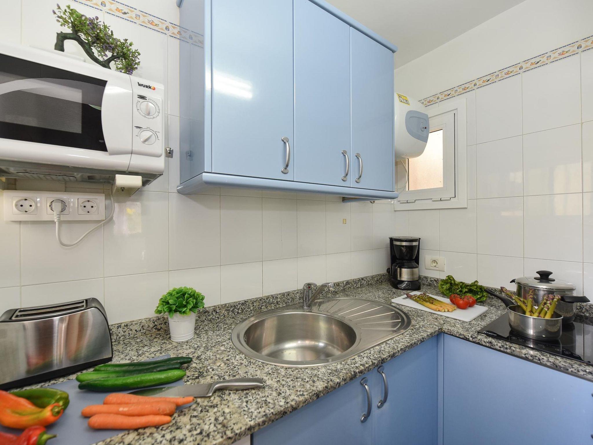 "Tindaya", 2-room apartment 45 m2. Comfortable and cosy furnishings: living/dining room with dining table, satellite TV and digital TV. Exit to the balcony. 1 room with 2 beds. Kitchen (2 ceramic glass hob hotplates, toaster, kettle, microwave, freezer, electric coffee machine). Shower/WC. Balcony. Balcony furniture. Facilities: safe, children's high chair, baby cot for up to 2 year olds, hair dryer. Internet (WiFi, free). Please note: non-smoking house. 2021-T3135