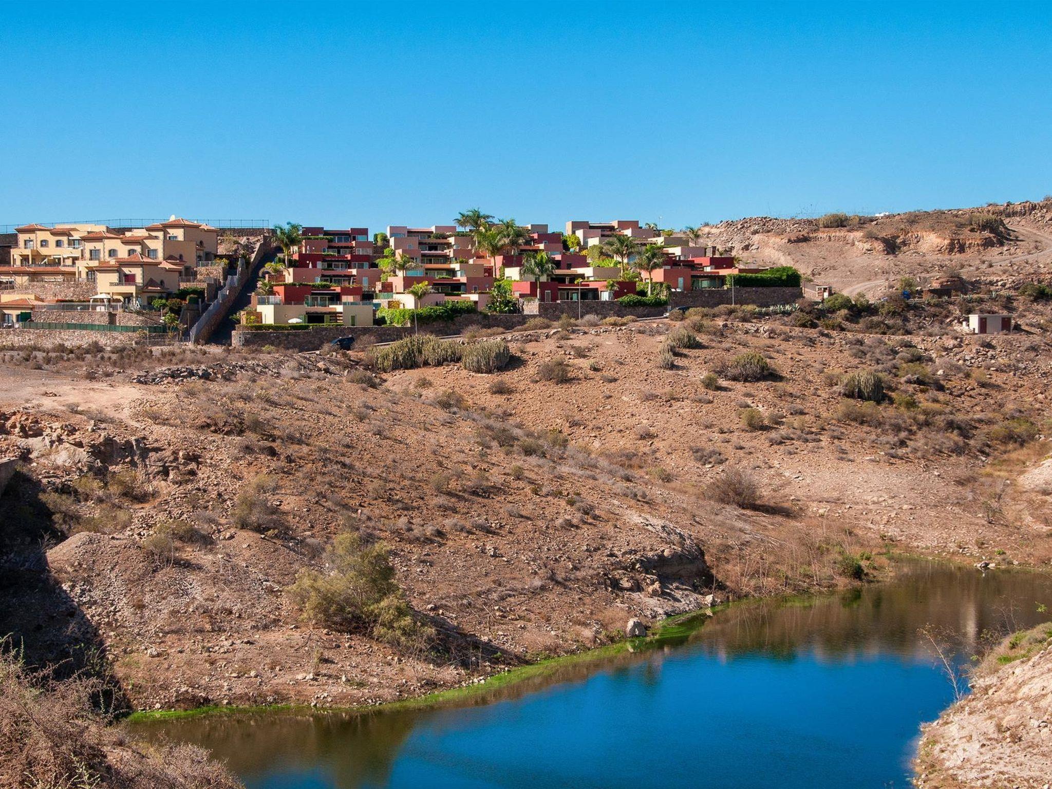 Modern, comfortable villa "Par4 Villa 21". In the centre of Salobre Golf Resort, on the outskirts Maspalomas 5 km, outside the resort Meloneras 7 km, in a quiet, sunny, elevated position in the residential district. Private: garden 80 m2 (fenced), lawn for sunbathing, swimming pool angular (8 x 4 m, depth 140 - 140 cm, seasonal availability: 01.Jan. - 31.Dec.). Barbecue, parking on the premises, public parking on the road. Shop 4 km, supermarket 3 km, restaurant 200 m, bus stop "Las Crucitas" 19 km, sandy beach 3 km. Golf course (18 hole) 500 m. Please note: car recommended. The owner does not accept any youth groups. Airfield 25 km from the property. Neighbourhood highly sensitive to noise. Quietness and good behaviour expected.