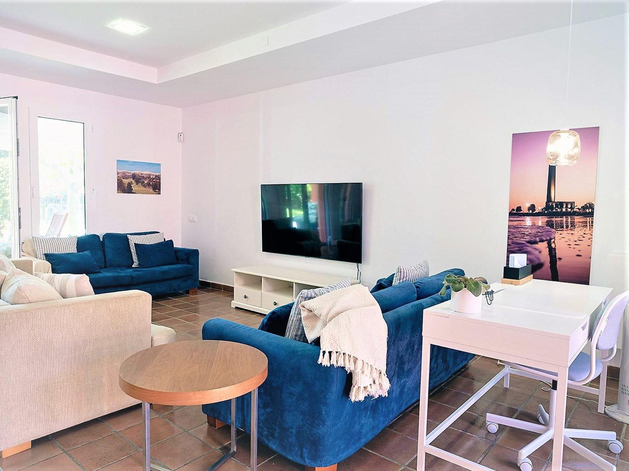 "El Flamboyan Maspalomas Golf", 5-room house 250 m2. Modern and cosy furnishings: living/dining room with dining table, satellite TV and digital TV. Exit to the patio. 1 room with 1 french bed, shower/bidet/WC and fan. 3 rooms, each room with 2 beds and fan. Kitchen (oven, dishwasher, 3 ceramic glass hob hotplates, toaster, kettle, microwave, freezer, electric coffee machine). Shower/WC, shower/bidet/WC. On the lower ground floor: playroom. Patio. Terrace furniture, barbecue, deck chairs. View of the swimming pool and the garden. Facilities: washing machine, safe, iron, mosquito net, children's high chair, baby cot for up to 2 year olds, hair dryer. Internet (WiFi, free). Parking. Please note: non-smoking house. 2022-T13156 // Reg. Nr.: ESFCTU0000350130003130070000000000000VV-35-1-00182364