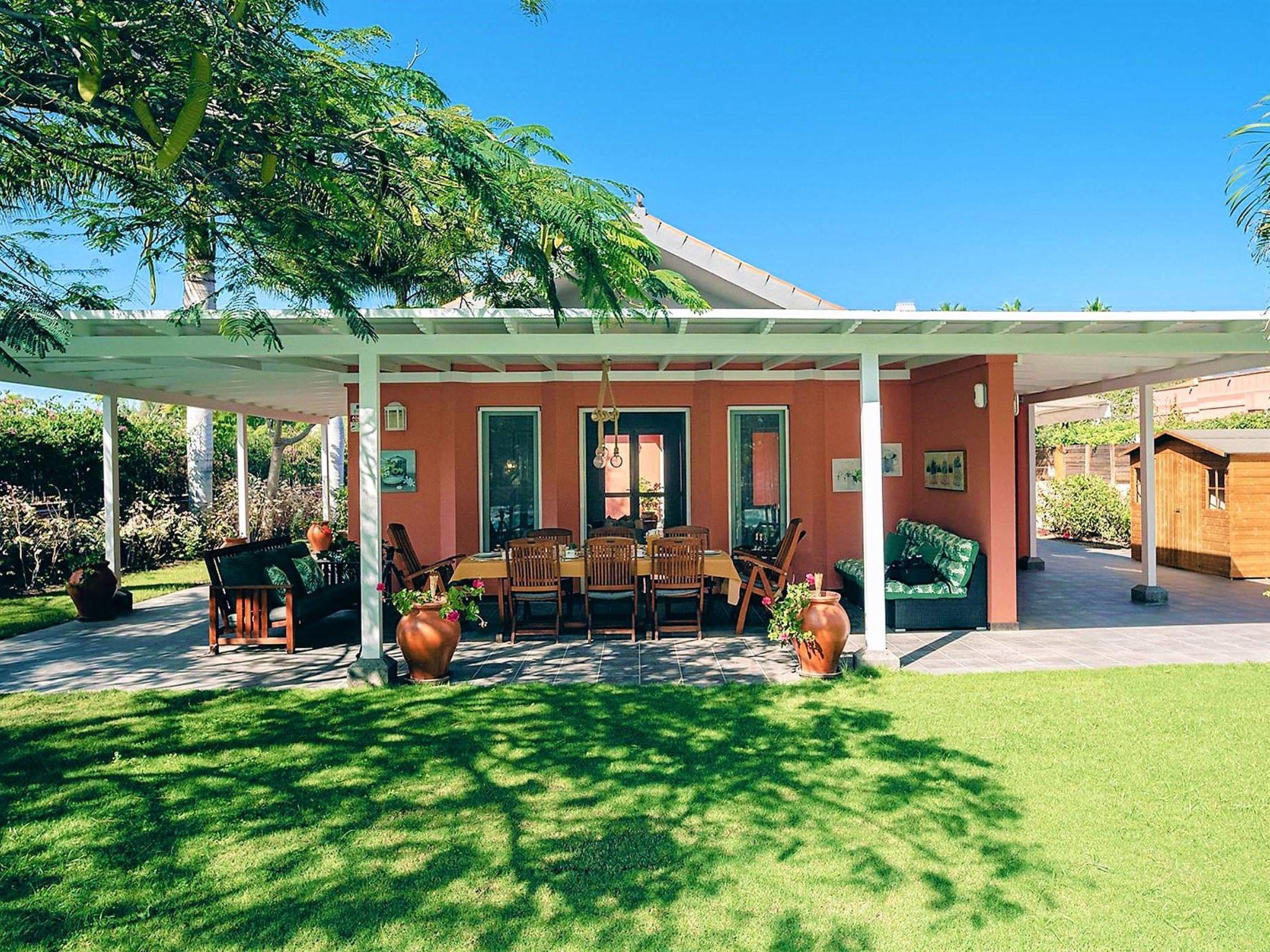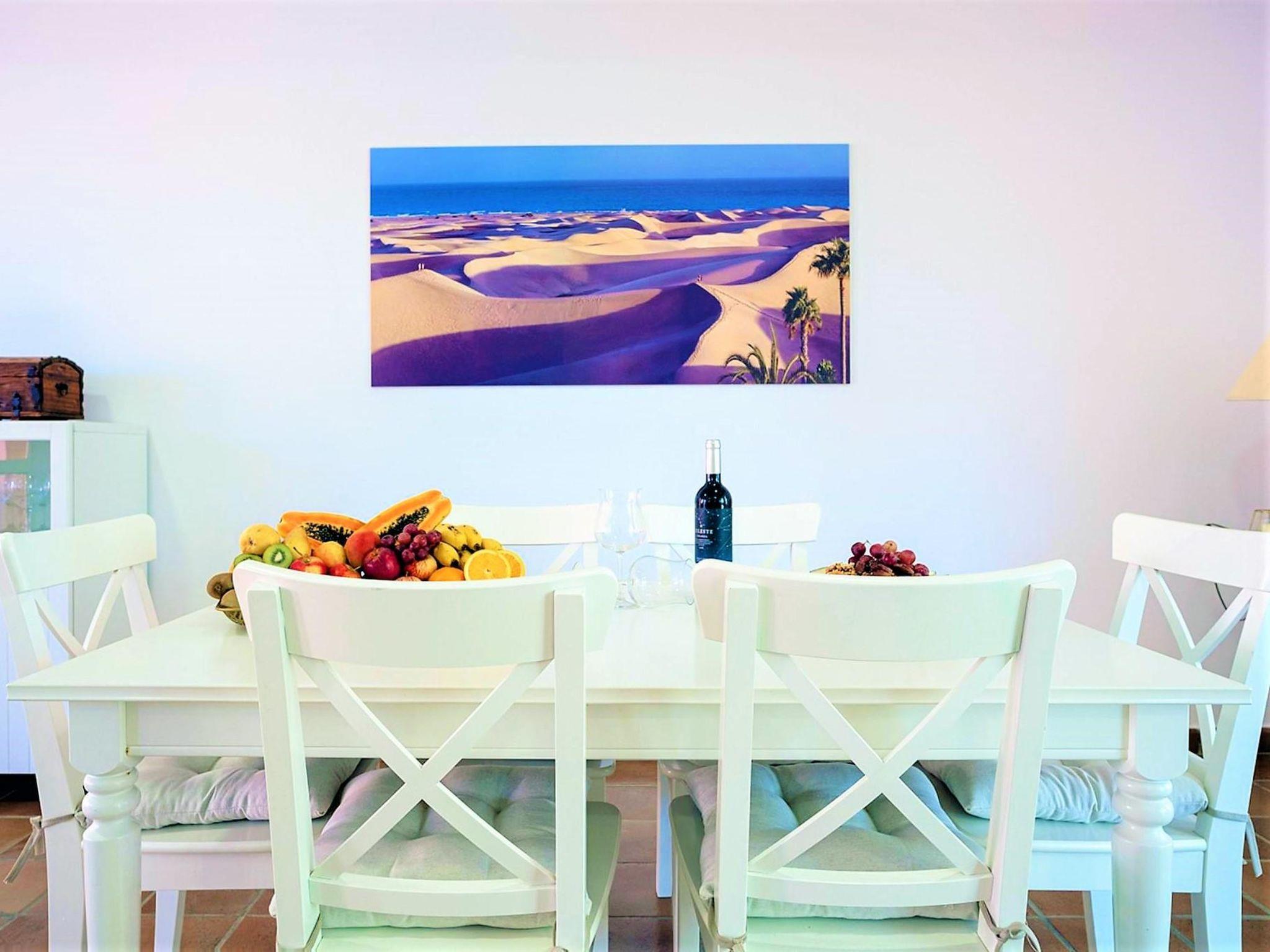 Modern, comfortable villa "El Flamboyan Maspalomas Golf". In the centre of Maspalomas, in a central, busy position. Private: garden (fenced) with lawn, swimming pool angular (9 x 7 m, depth 130 - 60 cm, seasonal availability: 01.Jan. - 31.Dec.). Paddling pool, barbecue. In the house: billiard table, sun terrace. Parking on the premises, public parking on the road. Shop, grocery, supermarket, restaurant 300 m, bus stop "Av T.O. Neckermann" 1.5 km. The owner does not accept any youth groups. Please note: airfield 27 km from the property. Neighbourhood highly sensitive to noise. Quietness and good behaviour expected.