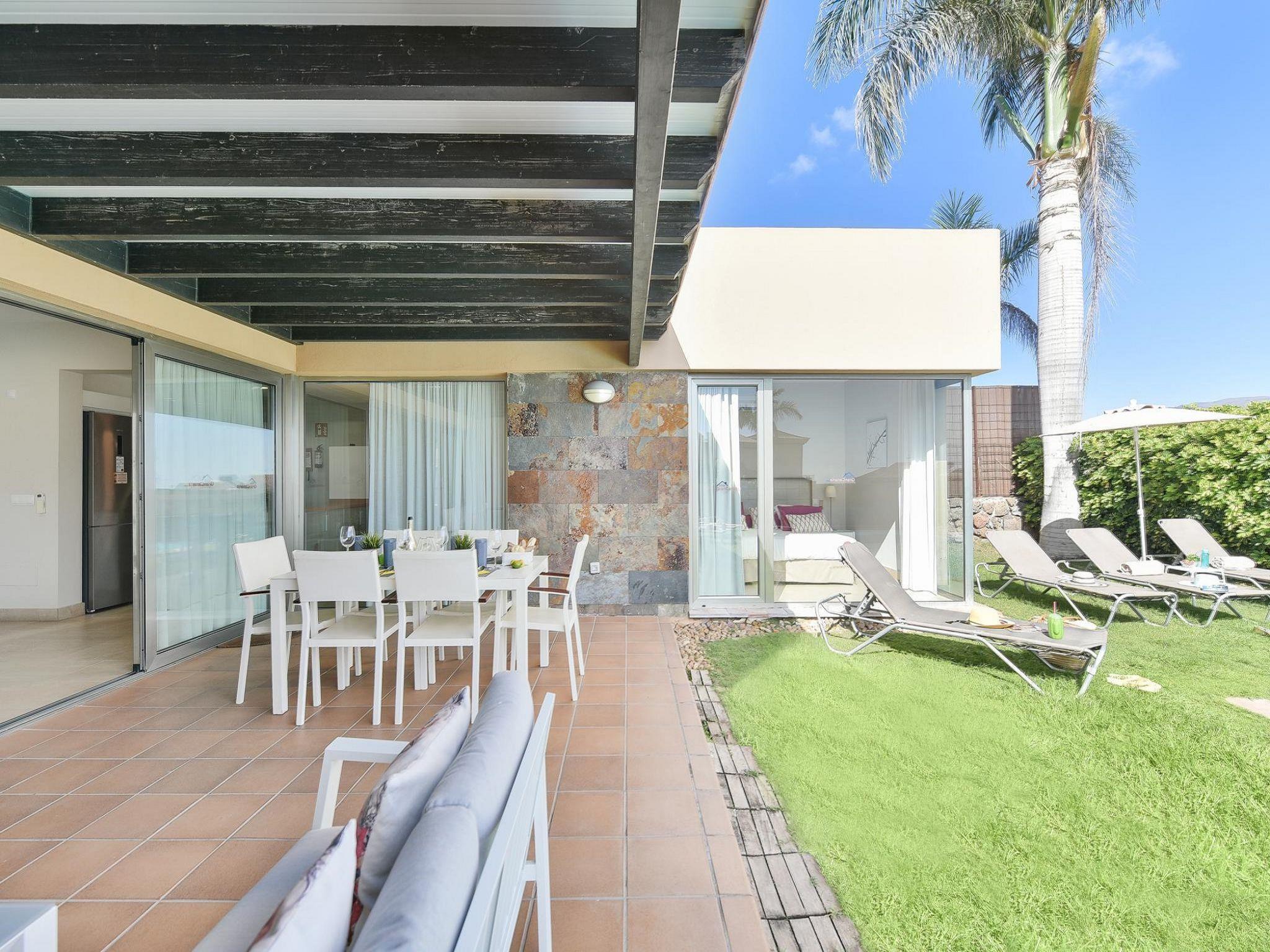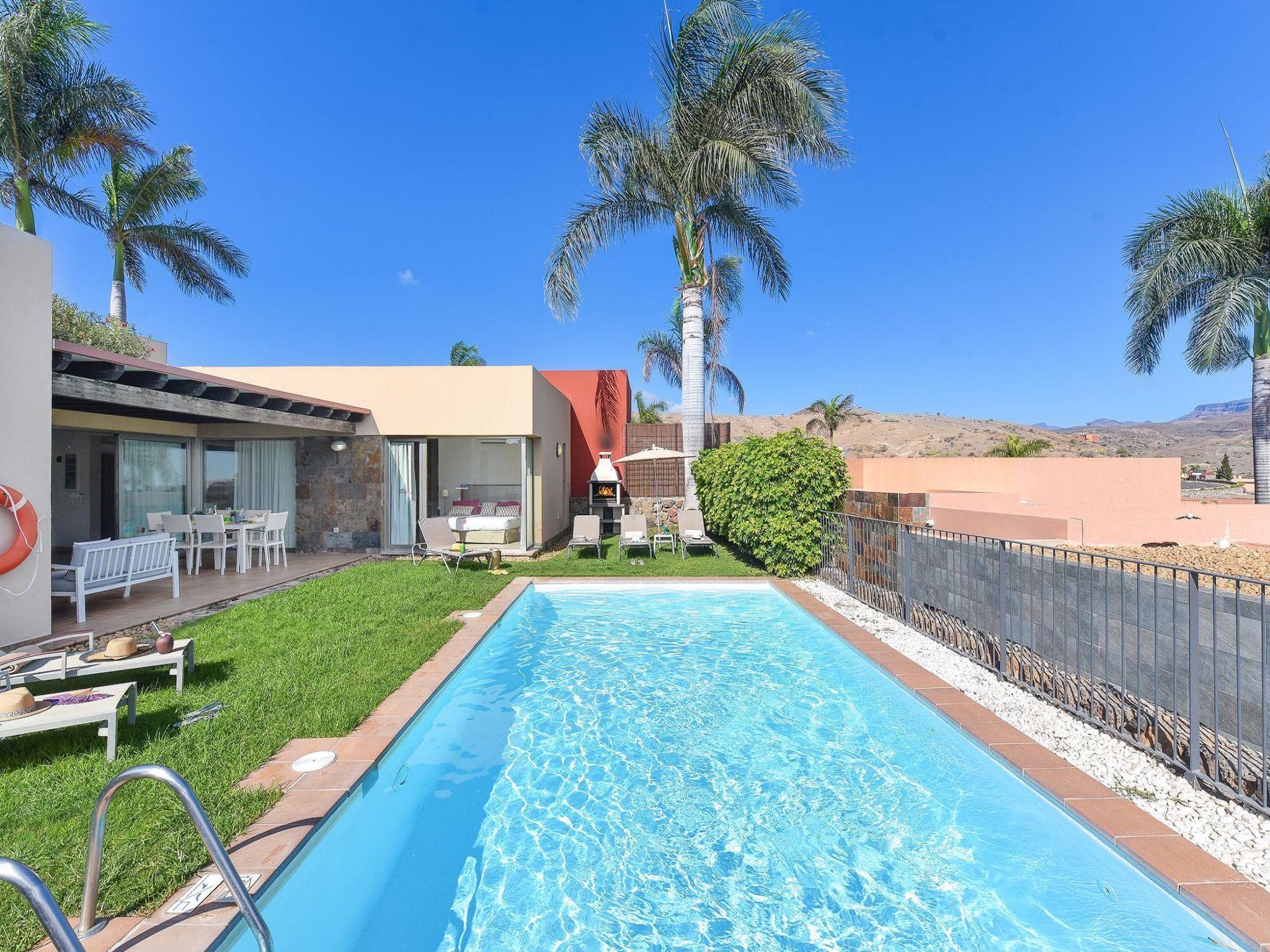 Modern, comfortable villa "Par4 Villa 7". In the centre of Salobre Golf Resort Maspalomas 5 km Meloneras 7 km, in a quiet, sunny, elevated position. Private: property 380 m2 (fenced), garden 80 m2, lawn for sunbathing, swimming pool (8 x 4 m, depth 1 - depth 40 cm, seasonal availability: 01.Jan. - 31.Dec.). Barbecue. In the house: WiFi, air conditioning, washing machine, tumble dryer. Parking at the house on the premises. Shop 4 km, supermarket 3 km, restaurant 200 m, bus stop "Las Crucitas" 19 km, sandy beach "3000". Golf course (18 hole) 500 m. Please note: car recommended. Suitable for families, suitable for seniors baby equipment on request. The owner does not accept any youth groups. Airfield 25 km from the property.