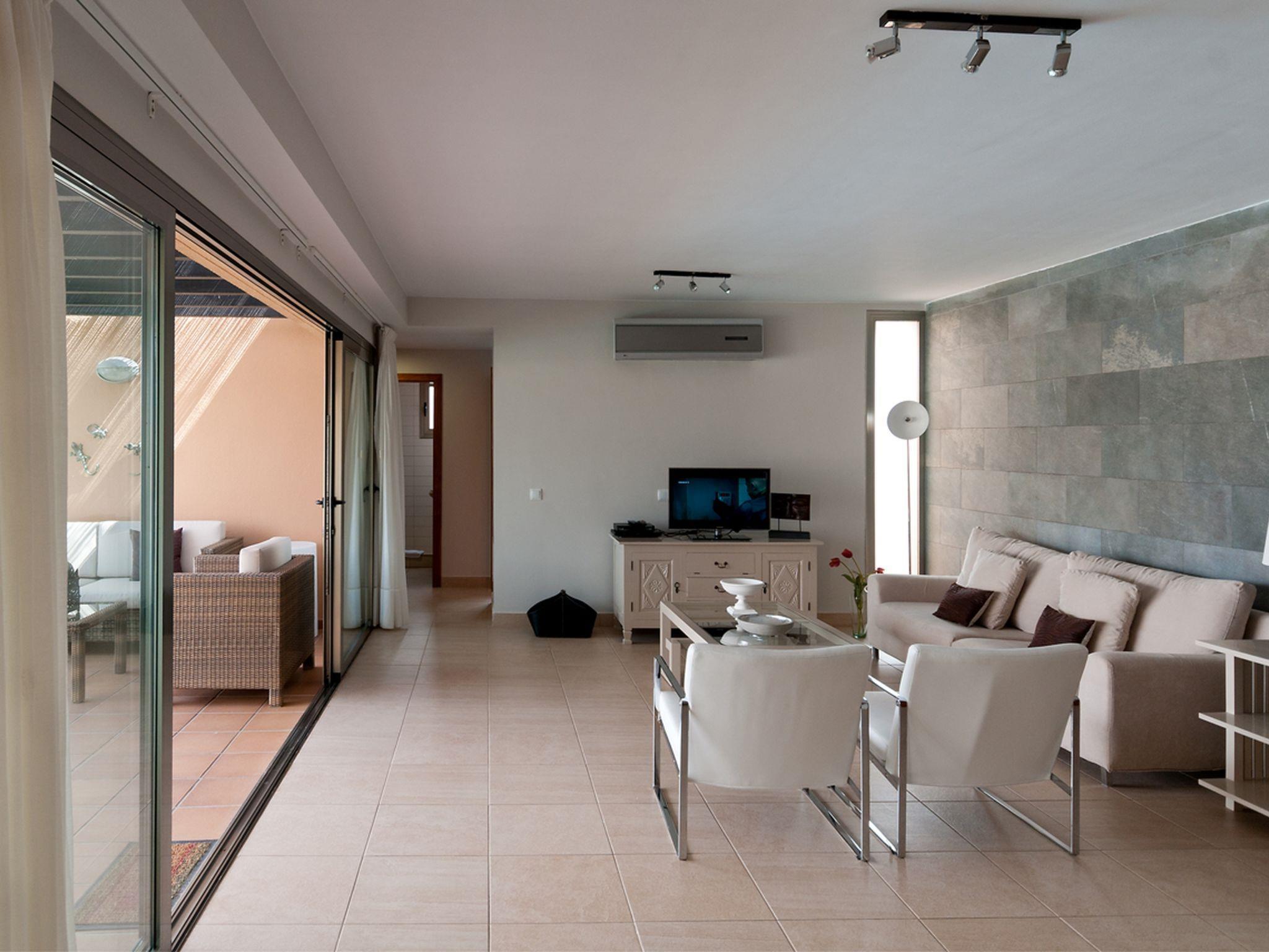 "Tipo 3 dormitorios", 4-room house 115 m2. Comfortable and modern furnishings: living/dining room with satellite TV and digital TV. 1 double bedroom with 1 french bed, shower/WC and air conditioning. 2 rooms, each room with 2 beds (80 cm, length 190 cm) with shower/WC. Open kitchen (oven, 4 ceramic glass hob hotplates, microwave, freezer) with dining table and air conditioning. Parquet floors. Beautiful view of the mountains, the swimming pool, the garden and the countryside. Facilities: washing machine, iron. Internet (WiFi, free). Suitable for families. Maximum 1 pet/ dog allowed. 2016/270 // Reg. Nr.: ESFCTU0000350120004734830000000000000VV-35-1-00014027