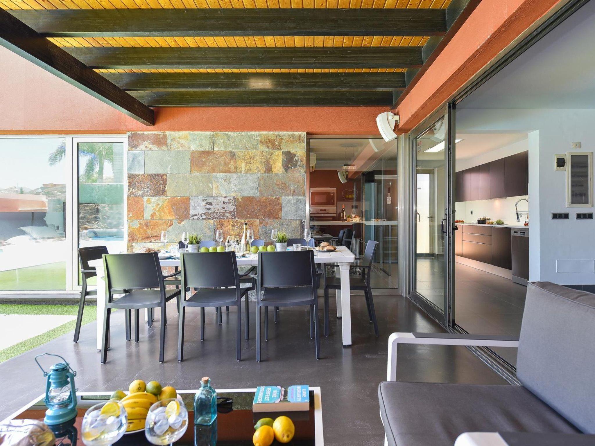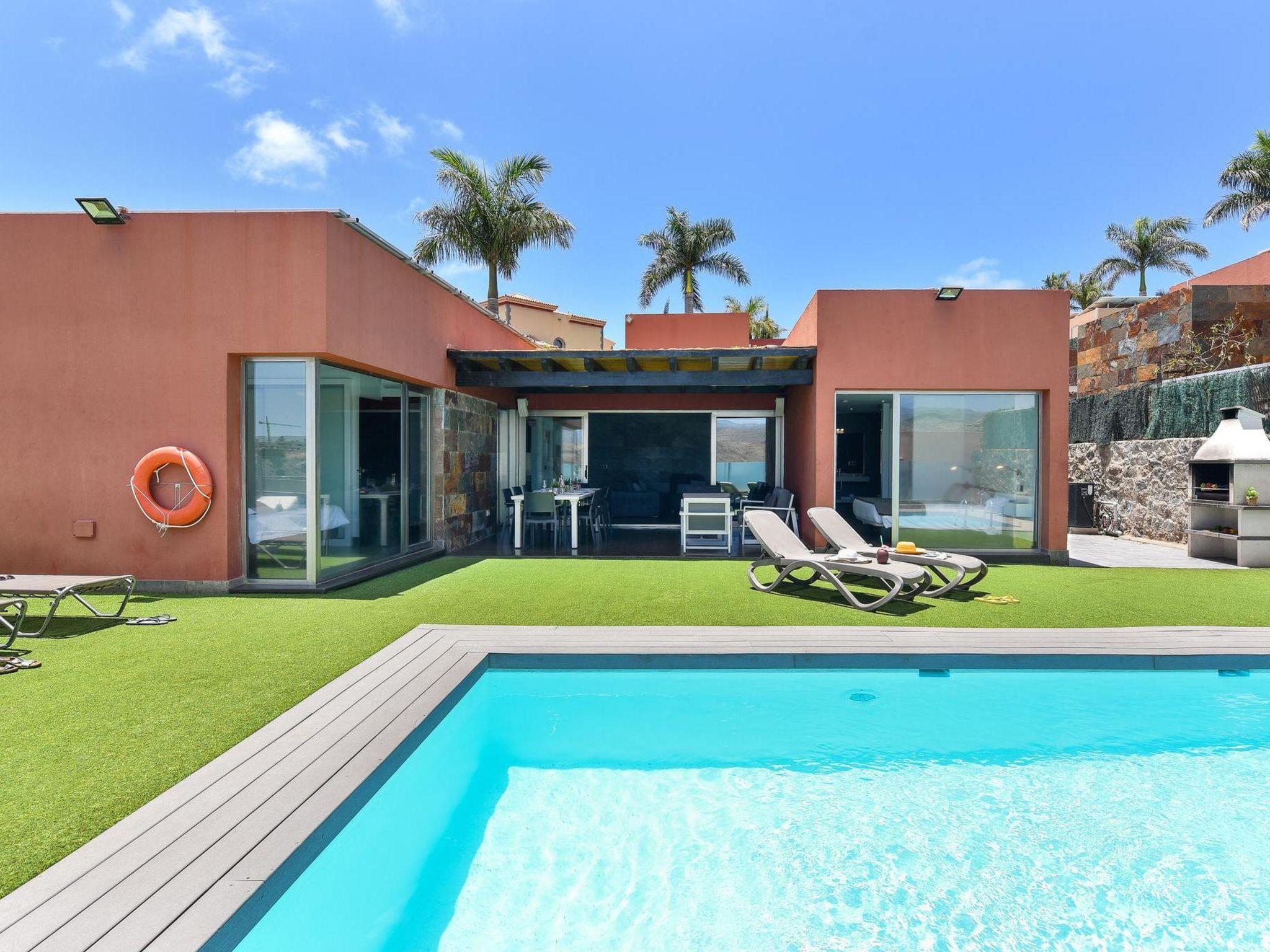 Modern, comfortable villa "Par4 Villa 20 con Piscina Privada", renovated in 2014. El Salobre, on the outskirts Maspalomas, in a quiet, sunny position, at the seaside. Private: garden, swimming pool (8 x 4 m, depth 140 cm, seasonal availability: 01.Jan. - 31.Dec.). Barbecue. In the house: WiFi, air conditioning, washing machine, tumble dryer. Shop 7 km, restaurant 4 km, bus stop "Las Crucitas" 19 km, sandy beach "7000". Golf course (18 hole) 100 m. Please note: car recommended. Suitable for families, suitable for seniors. Airfield 35 km from the property.