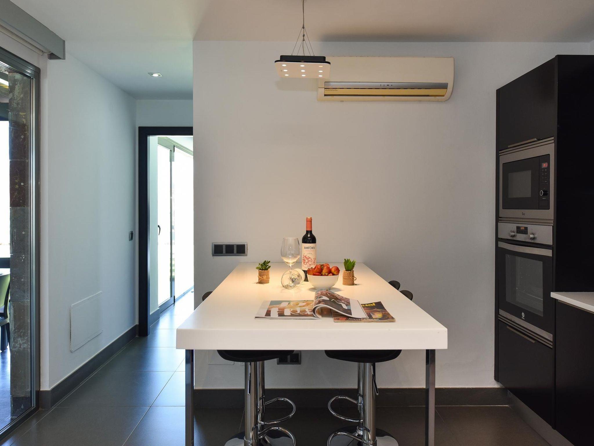 "Salobre Golf Resort", 4-room house 75 m2. Comfortable and cosy furnishings: living/dining room with satellite TV, digital TV and DVD. 1 room with 1 double bed, shower/WC, satellite TV, digital TV and air conditioning. 1 double bedroom with 2 beds, shower/WC and air conditioning. Open kitchen (oven, dishwasher, 4 ceramic glass hob hotplates, microwave, electric coffee machine). Carpet. View of the valley. Facilities: washing machine, dryer, safe, iron, children's high chair, baby cot for up to 2 year olds, hair dryer. Internet (WiFi). Please note: suitable for families. Non-smokers only. Maximum 1 pet/ dog allowed. 2016/2763