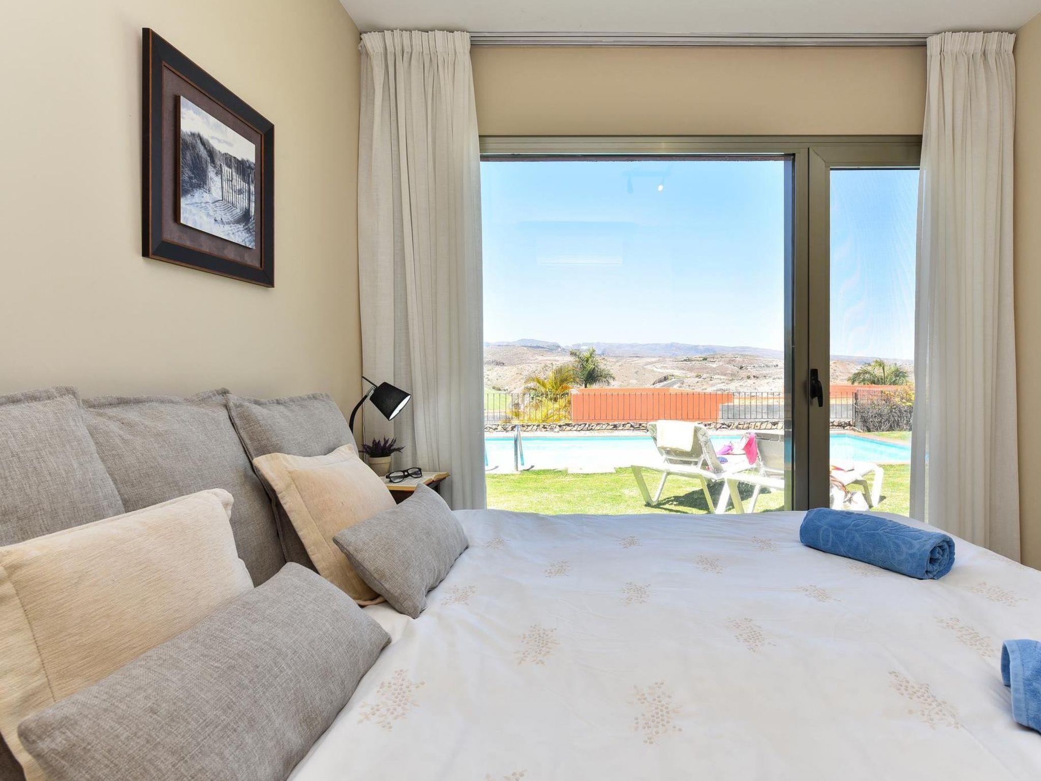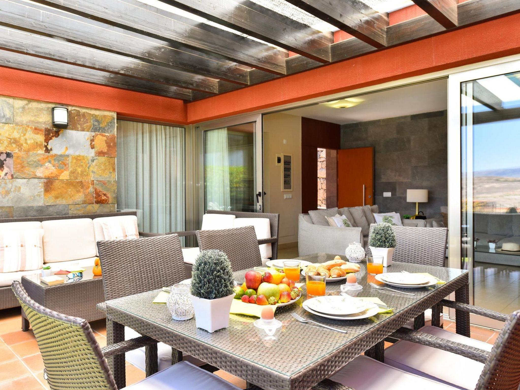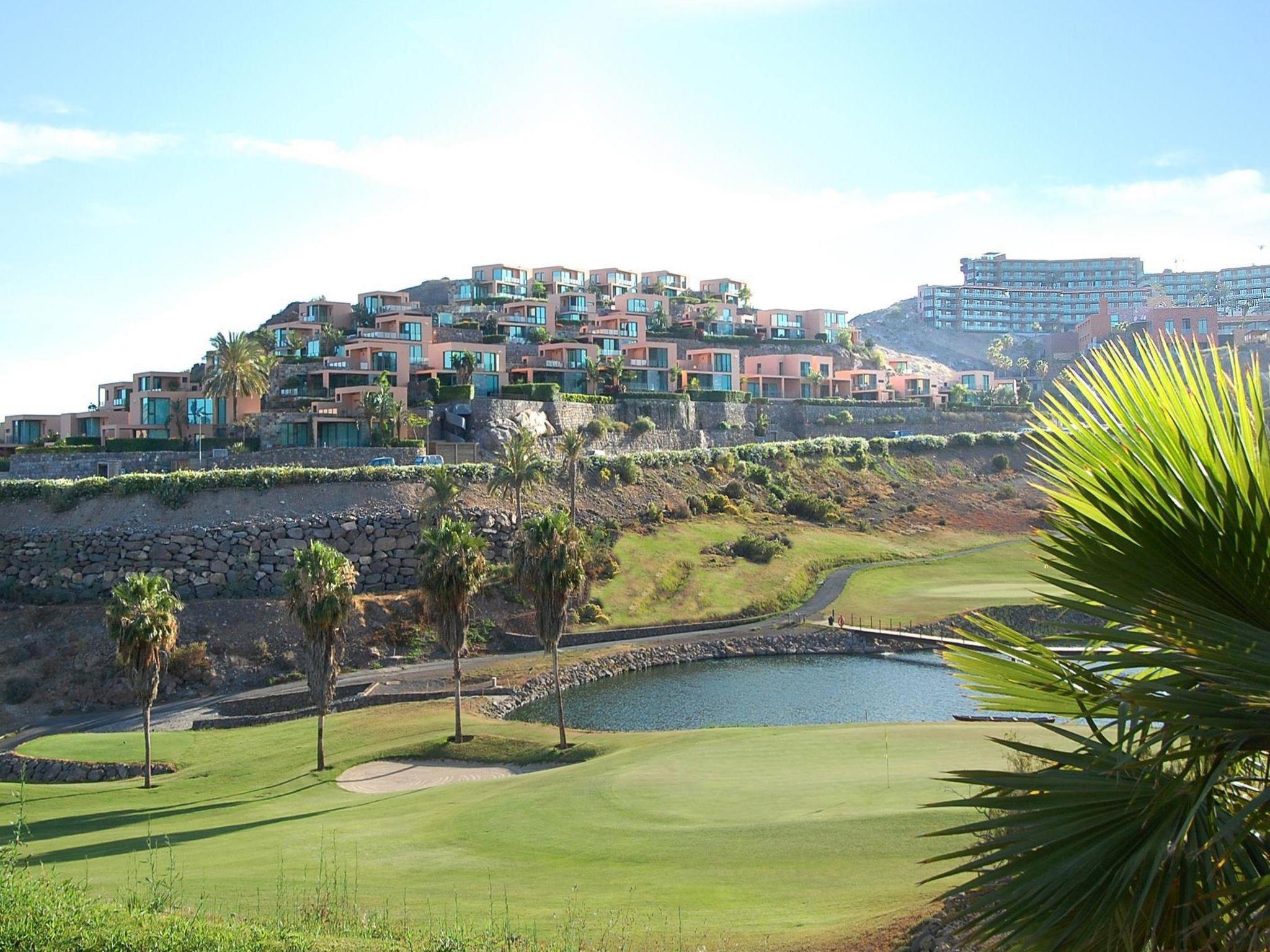 Modern, beautiful, comfortable villa "Par4 Villa 12". Salobre Golf Resort, in the centre Maspalomas 5 km Meloneras 7 km, in a sunny, elevated position, excellent location: right in the centre but still quiet. Private: property 380 m2 (fenced), garden 80 ha, lawn for sunbathing, swimming pool (8 x 4 m, seasonal availability: 01.Jan. - 31.Dec.). Patio, arbour, garden furniture, barbecue. In the house: WiFi, air conditioning, washing machine, tumble dryer. Shop 4 km, supermarket 3 km, restaurant 200 m, bus stop "Las Crucitas" 19 km, sandy beach "3000". Golf course (18 hole) 50 m. Please note: car recommended. Suitable for families, suitable for seniors baby equipment on request. The owner does not accept any youth groups. Airfield 25 km from the property.