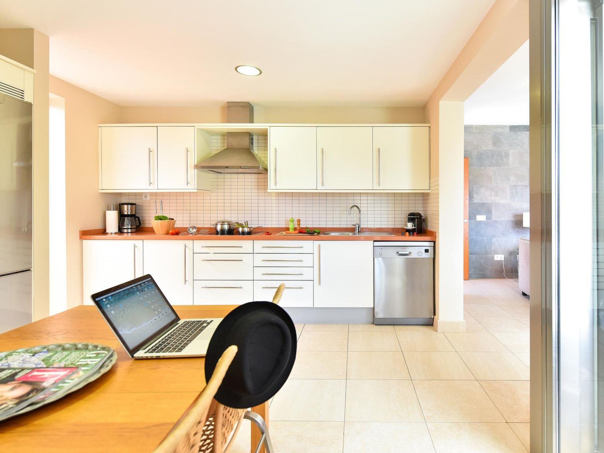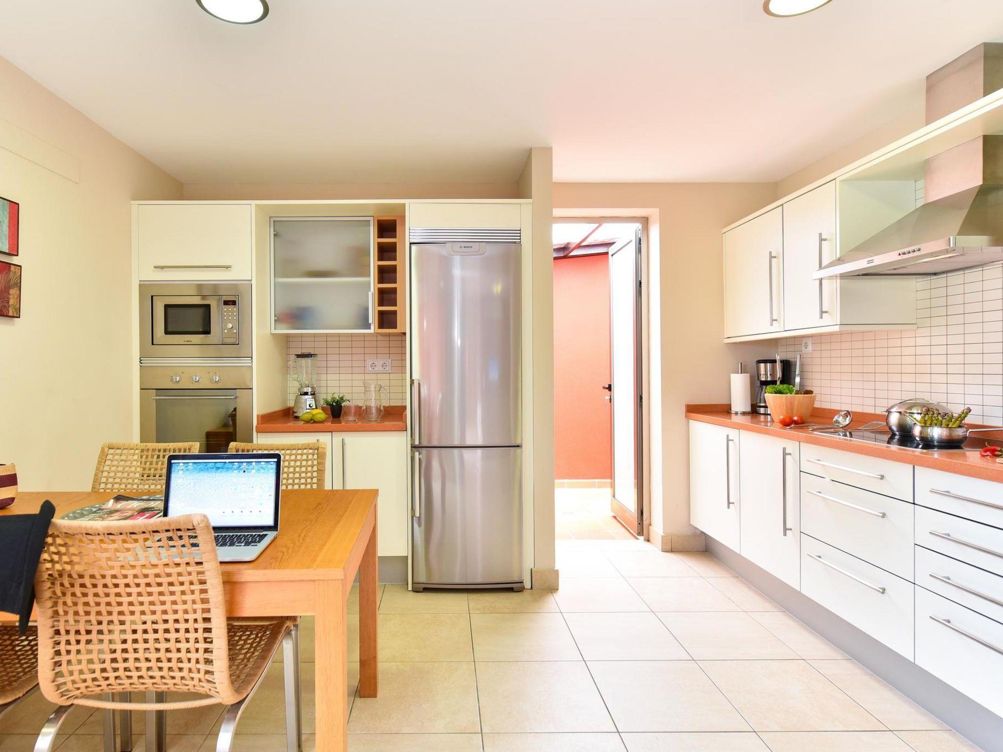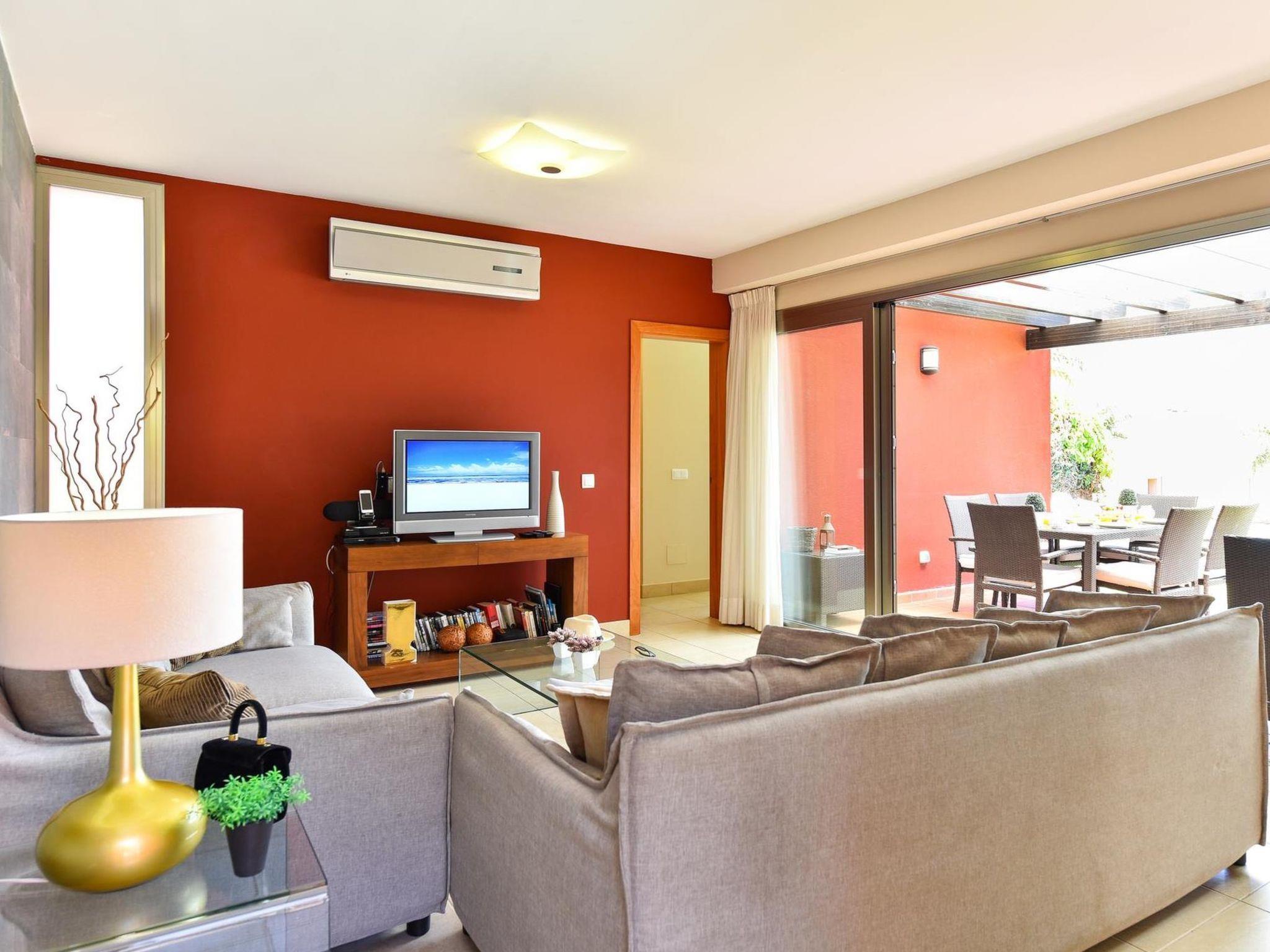 "Tipo 2 dormitorios", 3-room house 115 m2. Spacious and bright, comfortable and modern furnishings: living/dining room with 1 french bed, digital TV, DVD and air conditioning. 1 room with 1 french bed, shower/WC and air conditioning. 1 double bedroom with 2 beds and bath/WC. Kitchen (oven, dishwasher, toaster, microwave, freezer, electric coffee machine). Parquet floors. Beautiful view of the valley. Facilities: washing machine, dryer, safe, iron, baby cot for up to 2 year olds, hair dryer. Internet (WiFi). Please note: suitable for families. Non-smokers only. 2016/825 // Reg. Nr.: ESFCTU0000350120004735370000000000000VV-35-1-00015819