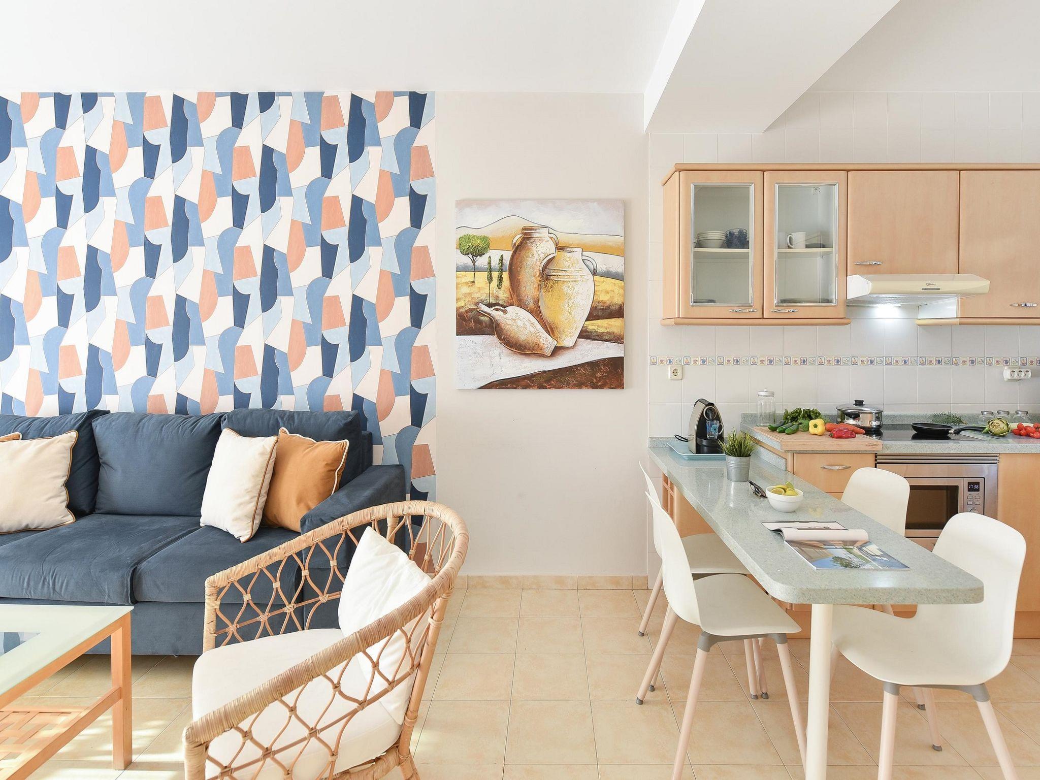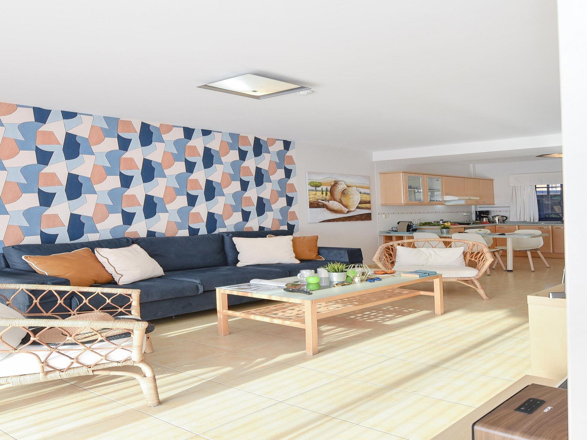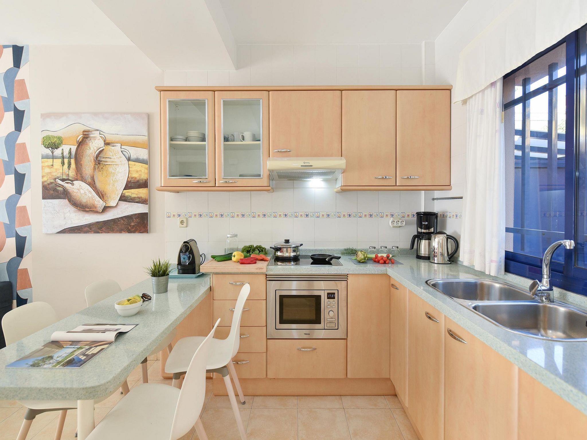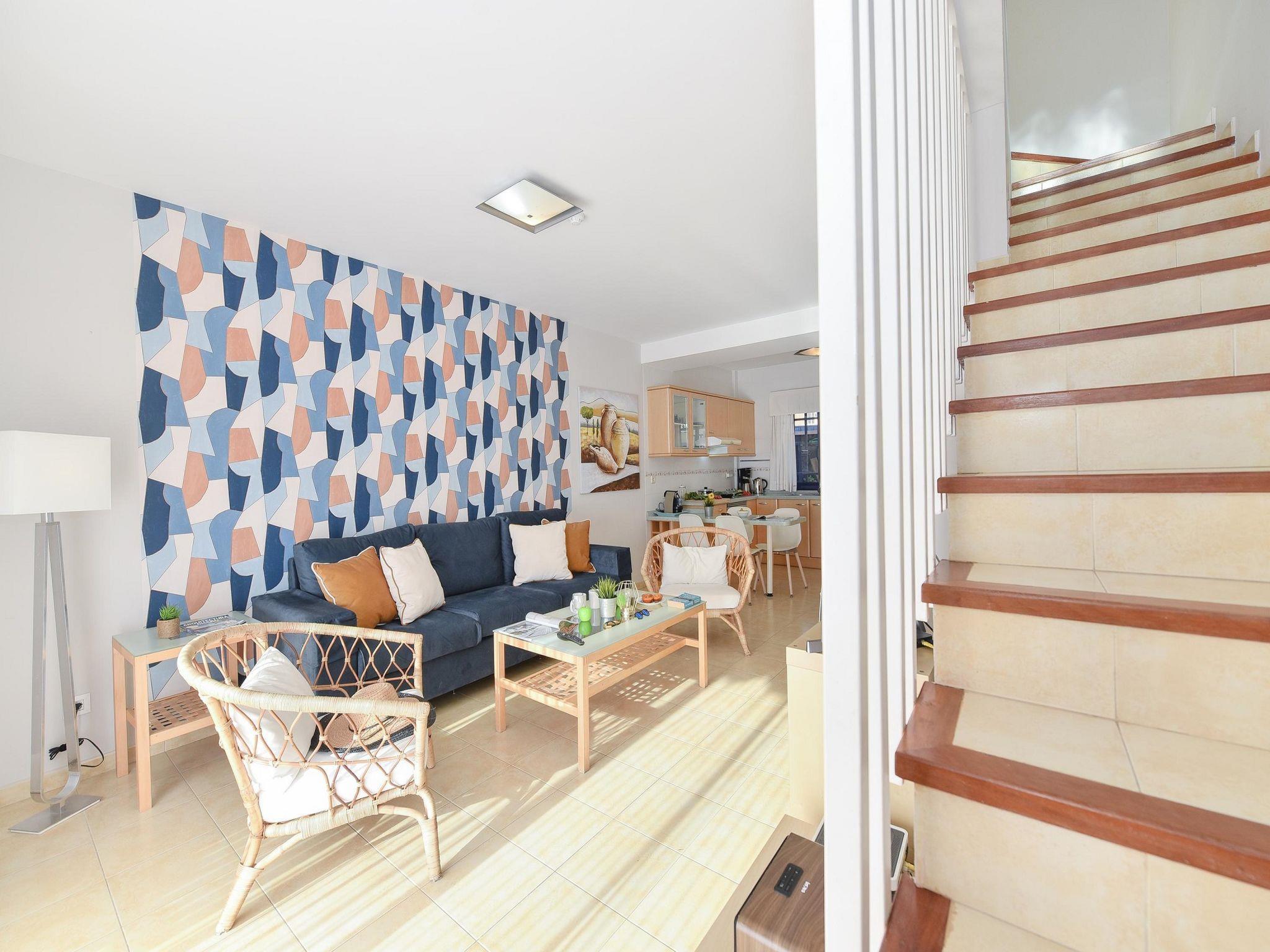 "Meloneras 47", 4-room apartment 90 m2 on 2 levels. Cosy furnishings: living/dining room with dining nook, TV, satellite TV, digital TV and air conditioning. 1 room with 1 double bed. 1 double bedroom with 2 beds. Open kitchen (oven, 3 ceramic glass hob hotplates, microwave, freezer) with dining table and air conditioning. 2 showers/WC. Natural stone floors, carpet. Facilities: washing machine, dryer, safe, children's high chair, baby cot for up to 2 year olds, hair dryer. Internet (WiFi). Please note: suitable for families. Non-smokers only. ,Wi-Fi (extra: 6 euros/day) to be paid on spot. 2021-T1115 // Reg. Nr.: ESFCTU0000350120003601580000000000000VV-35-1-00154857