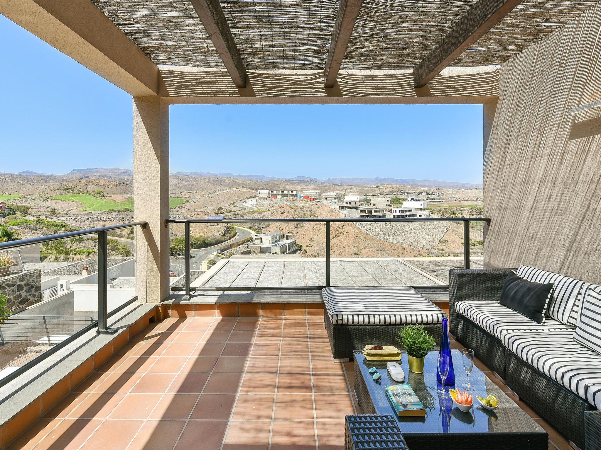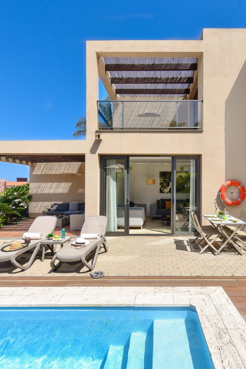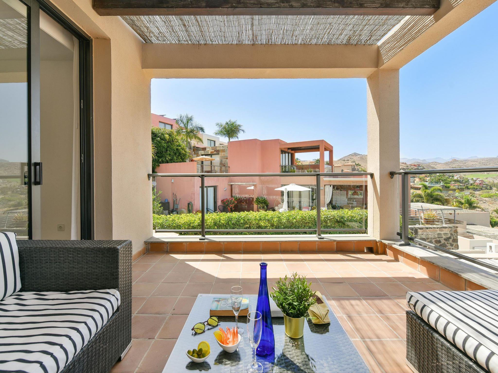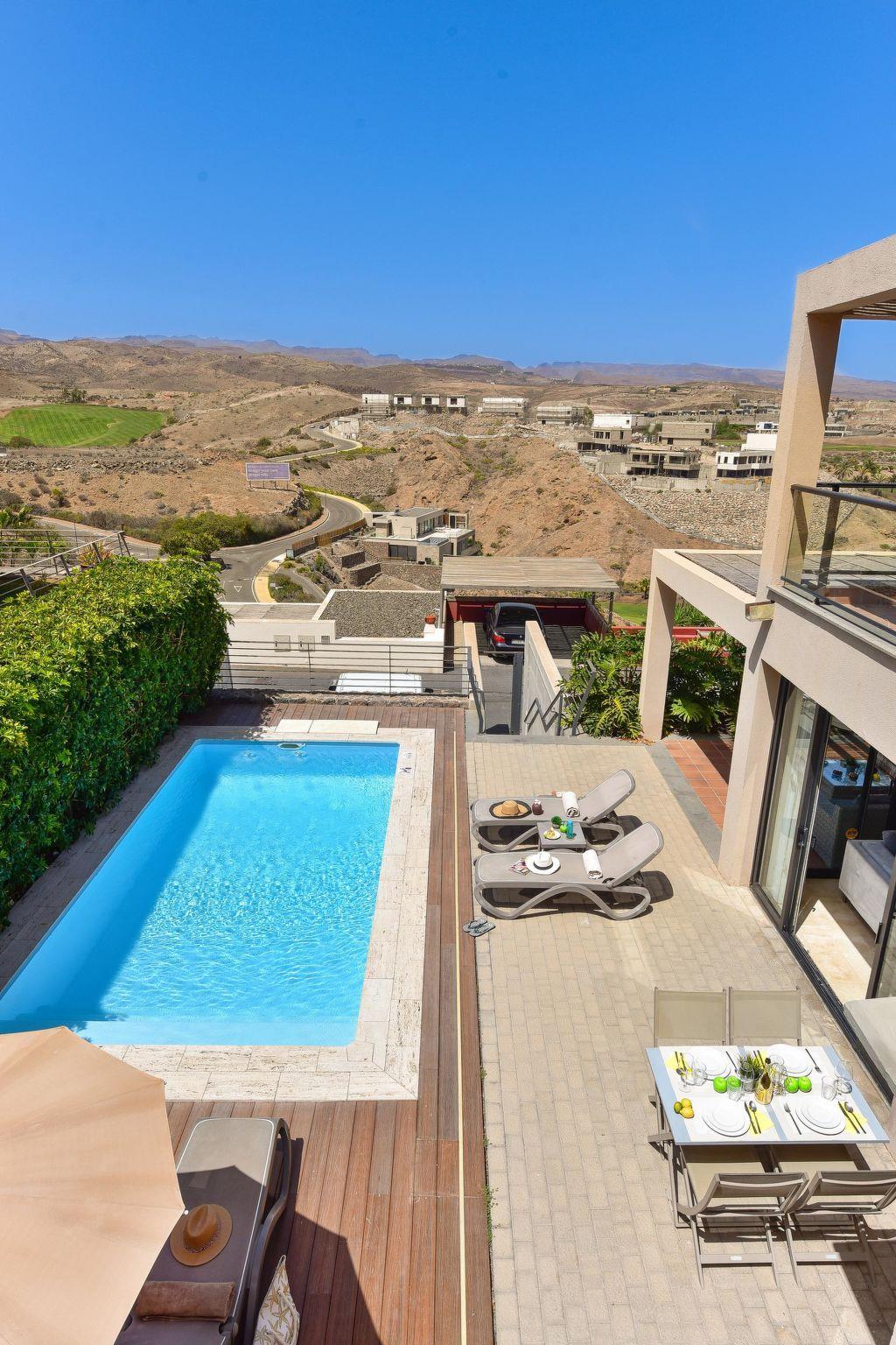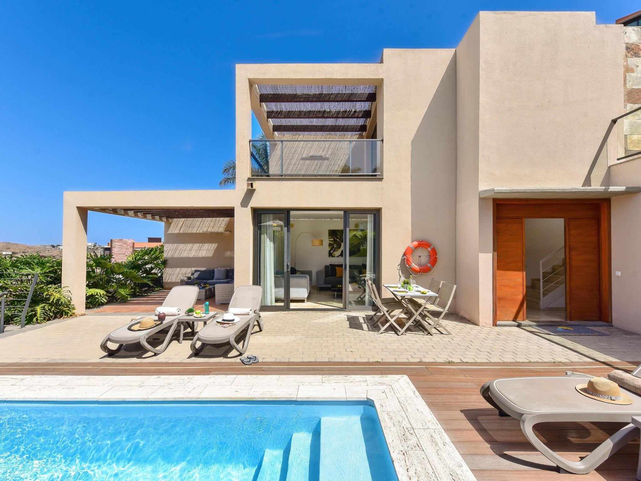 Cosy, luxurious villa "Las Terrazas 14". In the centre of Salobre Golf Resort, 1 km from the beach. Private: beautiful garden to relax, swimming pool angular (6 x 2 m, depth 140 cm, seasonal availability: 01.Jan. - 31.Dec.). Patio, arbour, pergola, garden furniture, barbecue. In the house: air conditioning. Parking at the house. Bus stop "Las Crucitas" 19 km. Please note: car recommended. On request. Object suitable for 4 adults. The owner does not accept any youth groups. Neighbourhood highly sensitive to noise. Quietness and good behaviour expected.