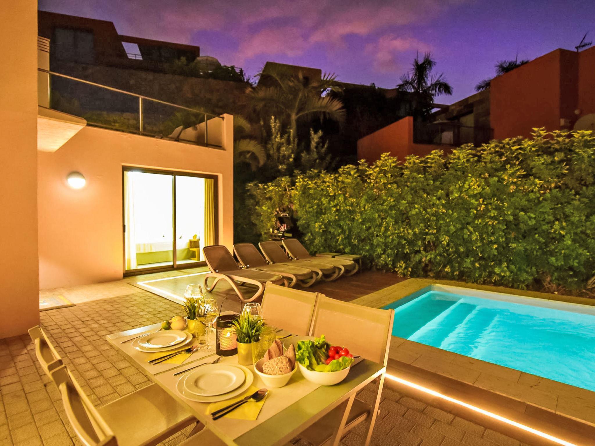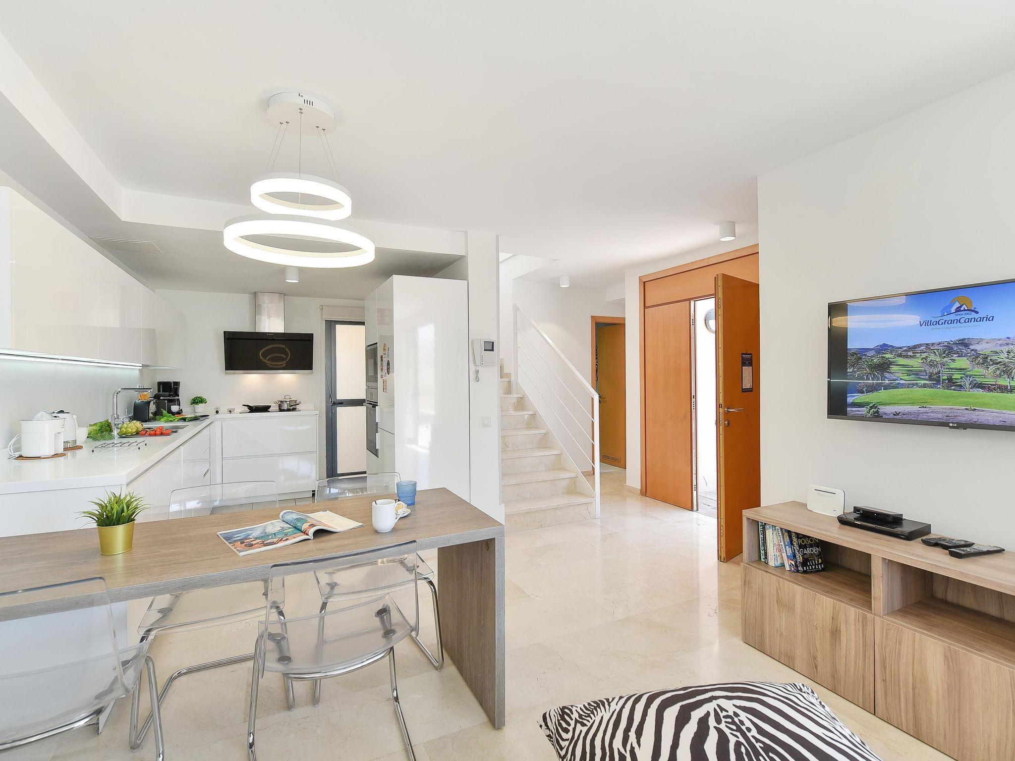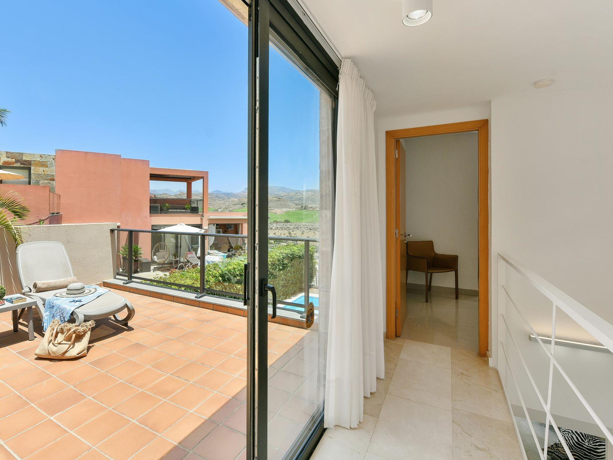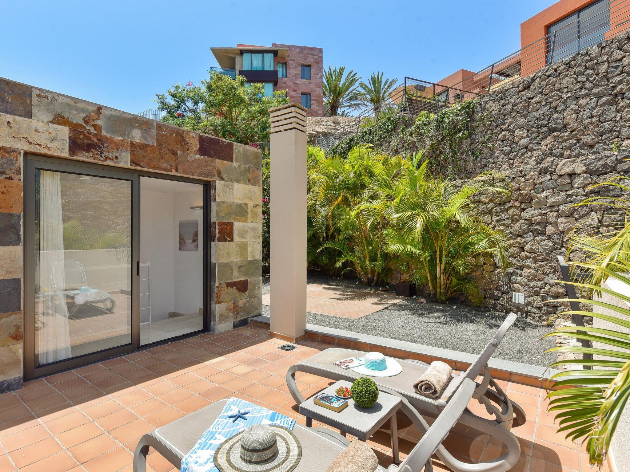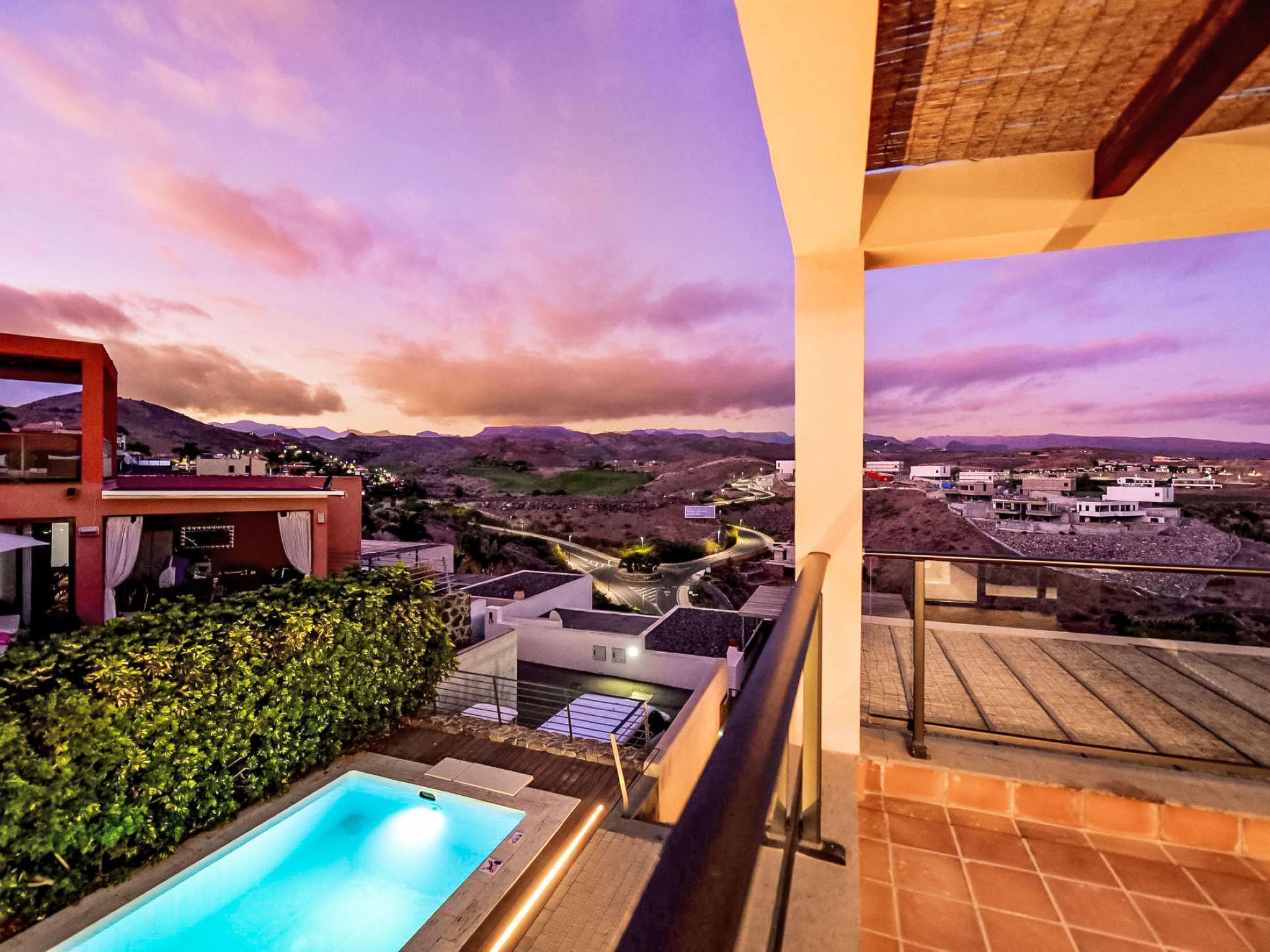Cosy, luxurious villa "Las Terrazas 14". In the centre of Salobre Golf Resort, 1 km from the beach. Private: beautiful garden to relax, swimming pool angular (6 x 2 m, depth 140 cm, seasonal availability: 01.Jan. - 31.Dec.). Patio, arbour, pergola, garden furniture, barbecue. In the house: air conditioning. Parking at the house. Bus stop "Las Crucitas" 19 km. Please note: car recommended. On request. Object suitable for 4 adults. The owner does not accept any youth groups. Neighbourhood highly sensitive to noise. Quietness and good behaviour expected.