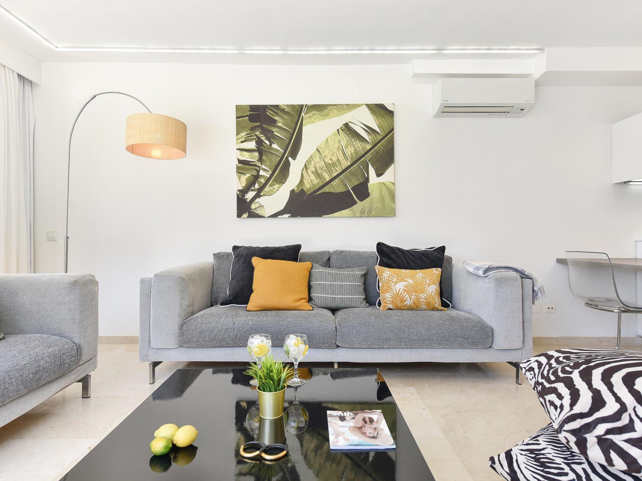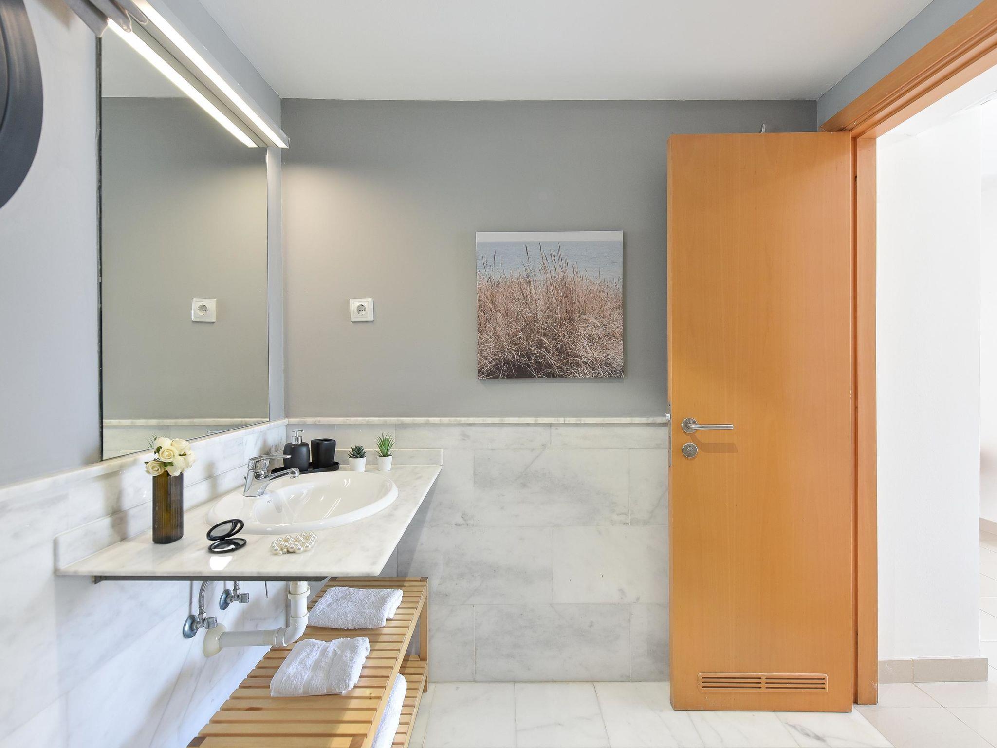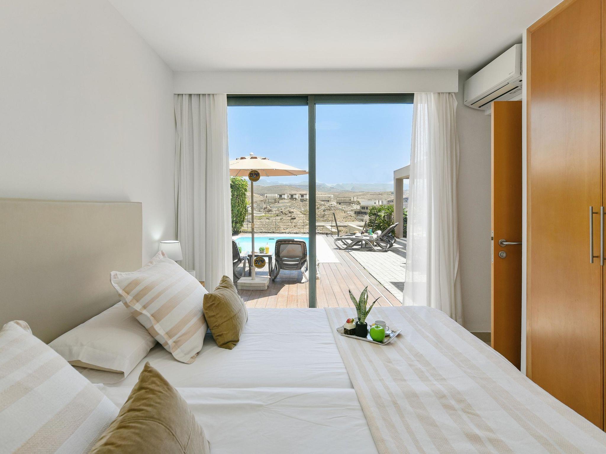 "Las Terrazas 14", 3-room villa 80 m2. Object suitable for 4 adults. Simple and luxurious furnishings: living/dining room with dining table, TV, flat screen and air conditioning. Exit to the patio. 1 room with 2 beds (90 cm, length 190 cm). 1 room with 1 double bed (135 cm, length 190 cm), air conditioning. Exit to the terrace. Open kitchen (oven, dishwasher, 4 ceramic glass hob hotplates, toaster, kettle, microwave, freezer, electric coffee machine) with dining table. 2 Baths/showers. Parquet floors. Porch. Terrace furniture, barbecue, deck chairs (4), covered balcony, sitting area. Beautiful view of the mountains. Facilities: washing machine, dryer, iron, children's high chair, baby cot for up to 2 year olds, hair dryer. Internet (WiFi, free). Parking at the house. Please note: suitable for families. Non-smokers only. Maximum 1 pet/ dog allowed. 2017/4185 // Reg. Nr.: ESFCTU00003501200031820300000000000000VV-35-1-0008972