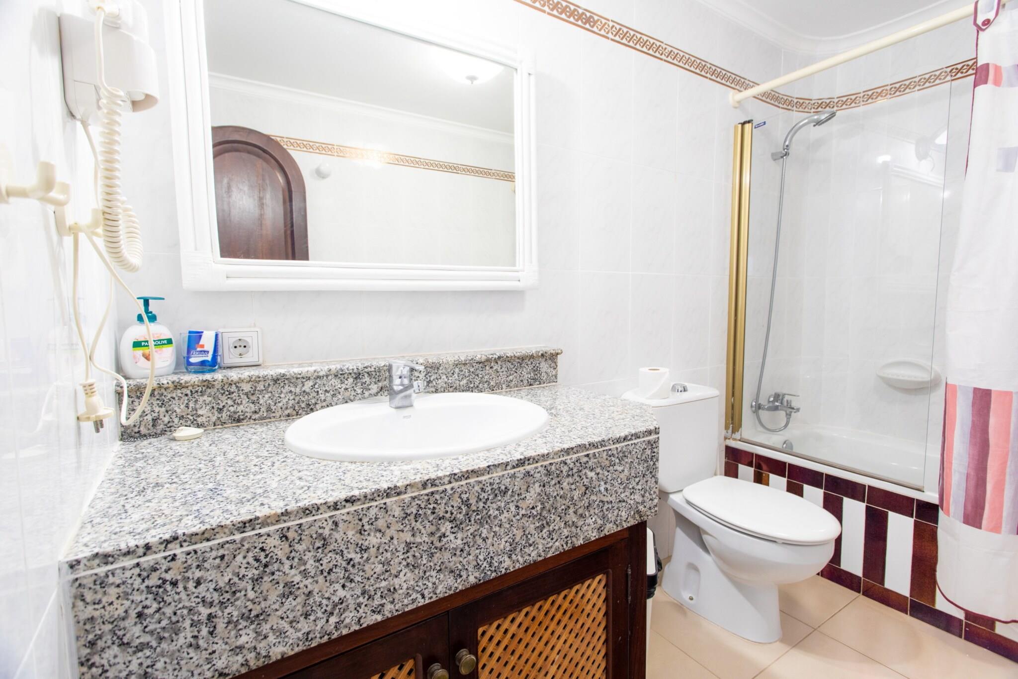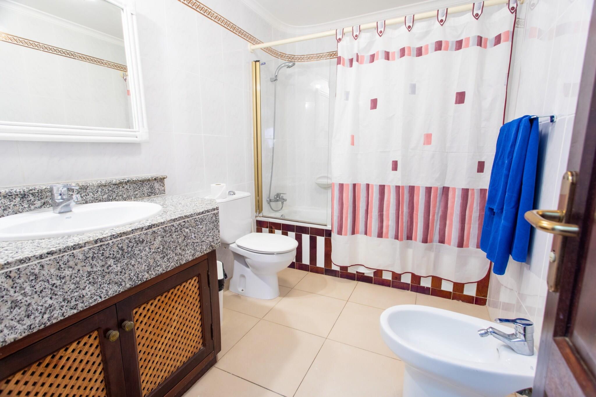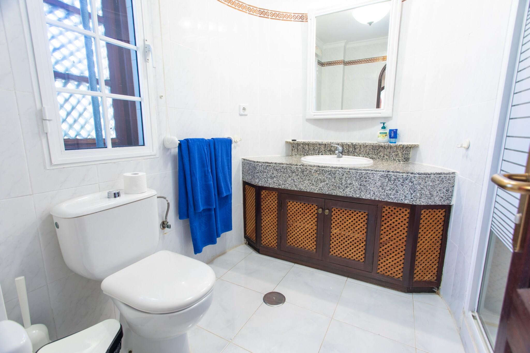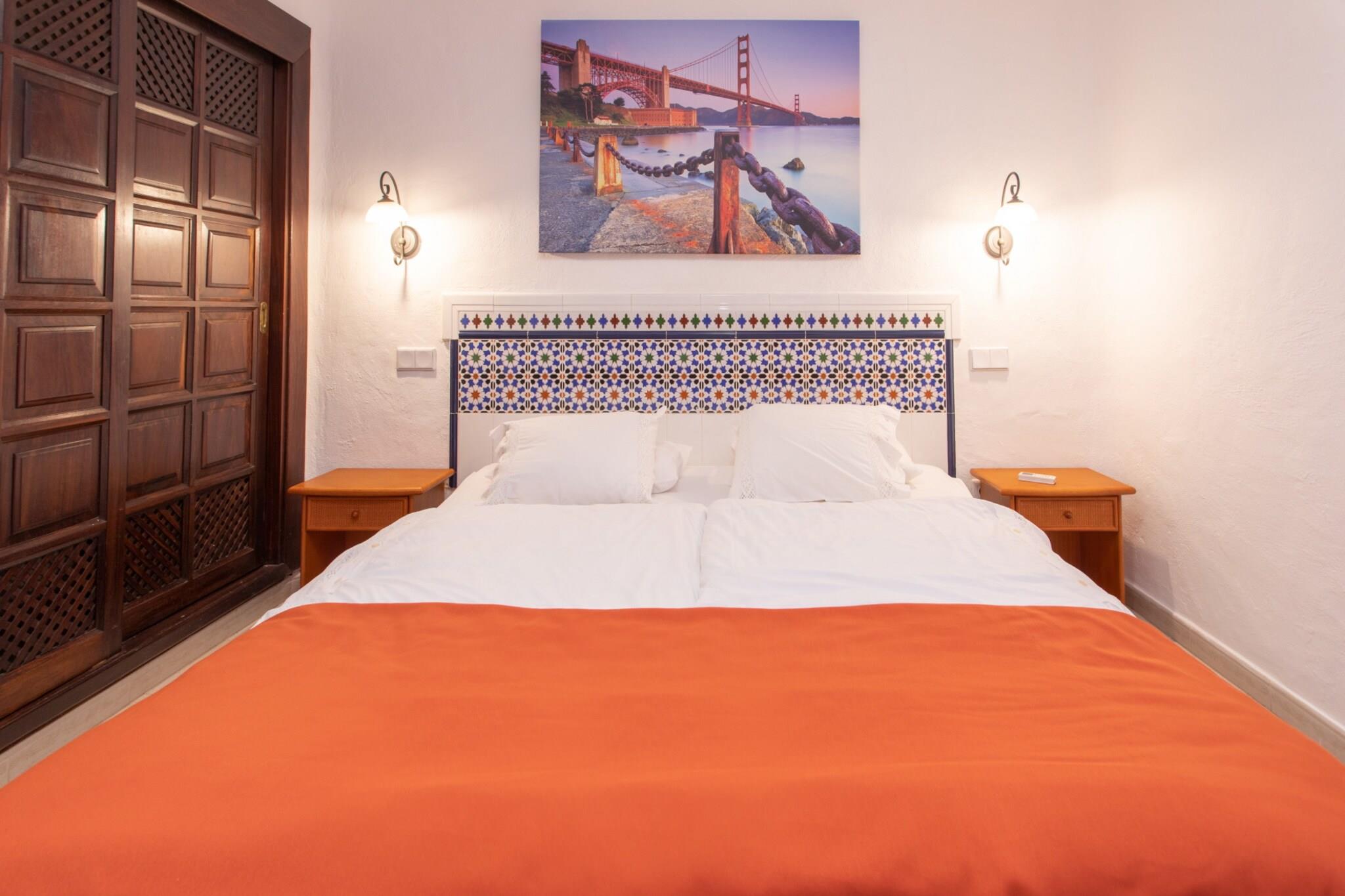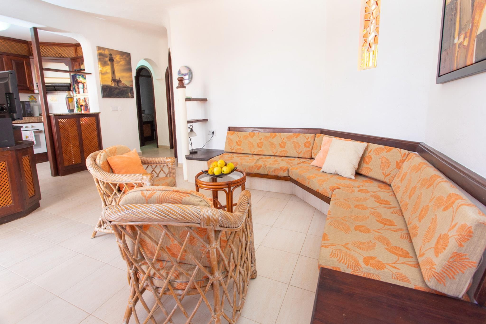 Velkommen til dette dejlige feriehus i Bahía Feliz, perfekt til en ferie ved havet på Gran Canaria. Med 2 soveværelser med dobbeltsenge og en lys planløsning på 80 m², kan huset komfortabelt rumme op til 4 gæster. Træd udenfor på en 12 m² møbleret terrasse med udsigt over både havet og den opvarmede fælles pool - ideel til morgenkaffe eller afslapning i solnedgangen. Hjemmet har et fuldt udstyret køkken i amerikansk stil, aircondition, satellit-tv, ubegrænset Wi-Fi, en vaskemaskine og en udendørs parkeringsplads. Det er smagfuldt indrettet med fokus på både komfort og praktisk. Familier eller par vil sætte pris på den fredelige stemning og den fantastiske havudsigt lige fra ejendommen. Beliggende kun få skridt fra Playa del Águila, tilbyder huset også nem adgang til supermarkeder, lokale restauranter og sjove attraktioner som Holidayworld og Aqualand Maspalomas. Uanset om du solbader på terrassen, svømmer i den opvarmede pool eller udforsker den sydlige del af Gran Canaria, er dette din perfekte base for et afslappende ø-ophold.