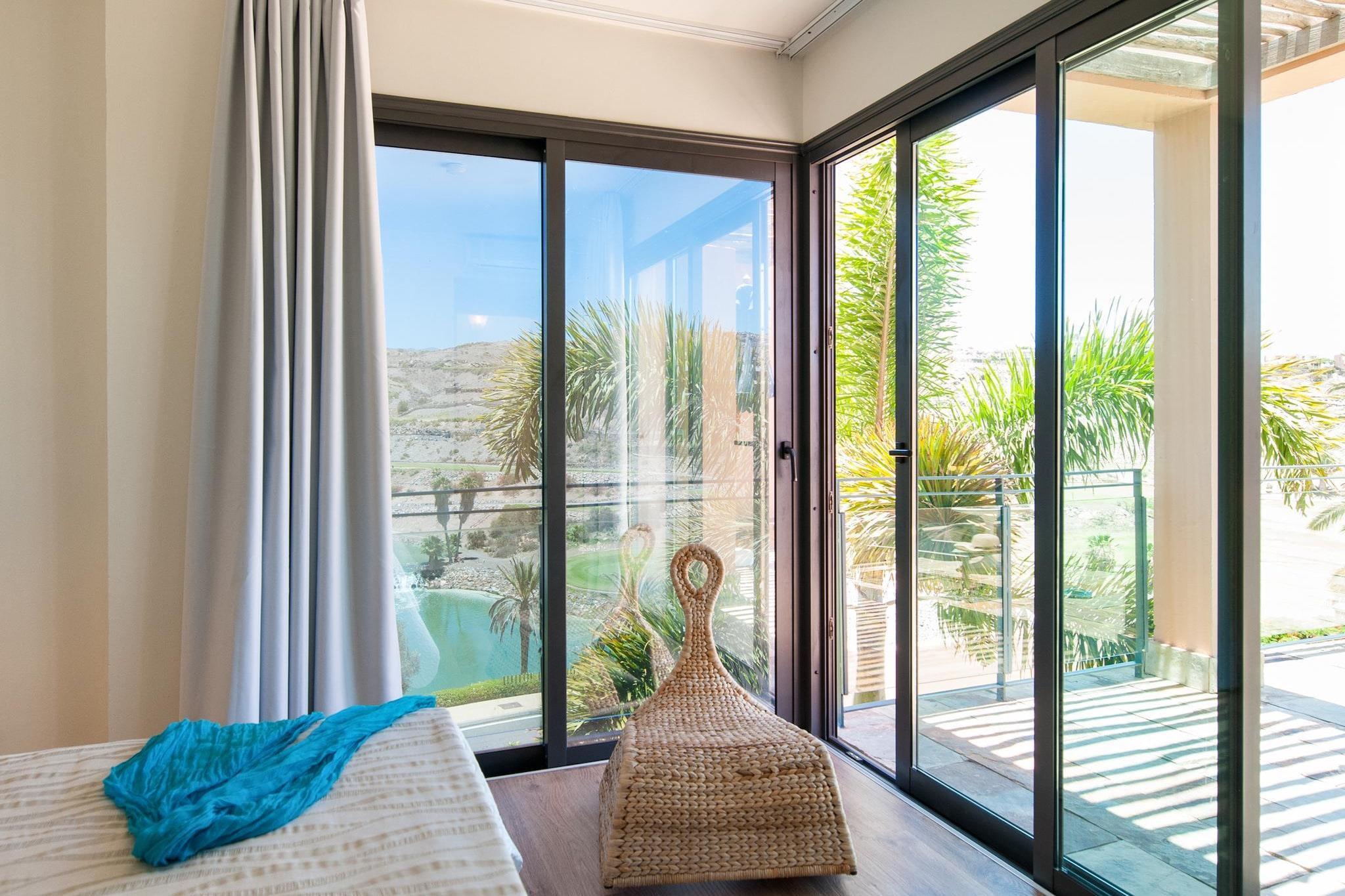 Dette er en intim ferieresidens i to etager i det eksklusive Salobre Golf Resort. Det har en lille privat pool over jorden, 2 soveværelser og en smuk privat have. Denne private villa har sin egen stil og meget komfortabelt udstyr. Den har to soveværelser, et på øverste etage med dobbeltseng, et badeværelse med badekar og store vinduespartier med udgang til en terrasse med udsigt. Det andet værelse i stueetagen har to enkeltsenge og et badeværelse med bruser. Indretningen afsluttes med en moderne og lys stue, spisestue i tilknytning til køkkenet, som er fuldt udstyret. Denne feriebolig har fladskærms-tv med satellitkanaler, aircondition og grill. Alt for at vores gæster skal føle sig hjemme! Udendørsområdet har en privat overjordisk swimmingpool, mål: 2,40m x 1,80m (kan opvarmes mod tillæg) og en smuk terrasse med spisestue og solarium med liggestole. Denne villa har også adgang til en dejlig fælles swimmingpool. Denne villa er et meget hyggeligt sted at nyde en velfortjent ferie med din familie. El Salobre Golf Resort, er et afsondret område for fred og ro, men ligger samtidig kun 10 minutters kørsel fra Maspalomas eller Meloneras, eller 40 minutter fra hovedstaden. På Gran Canaria er alt inden for rækkevidde på en kort køretur!
