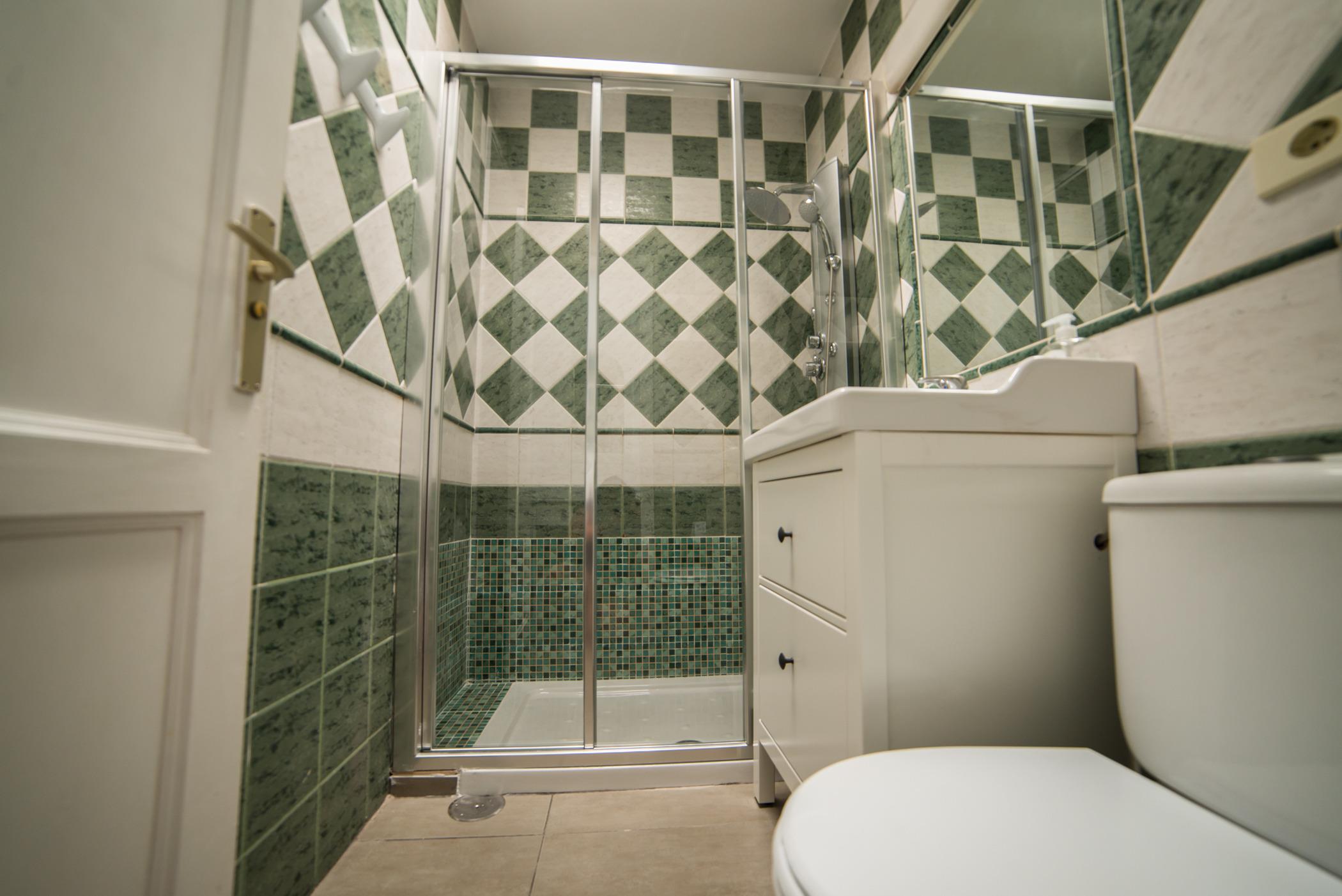 1 komplettes Badezimmer mit Dusche und WC