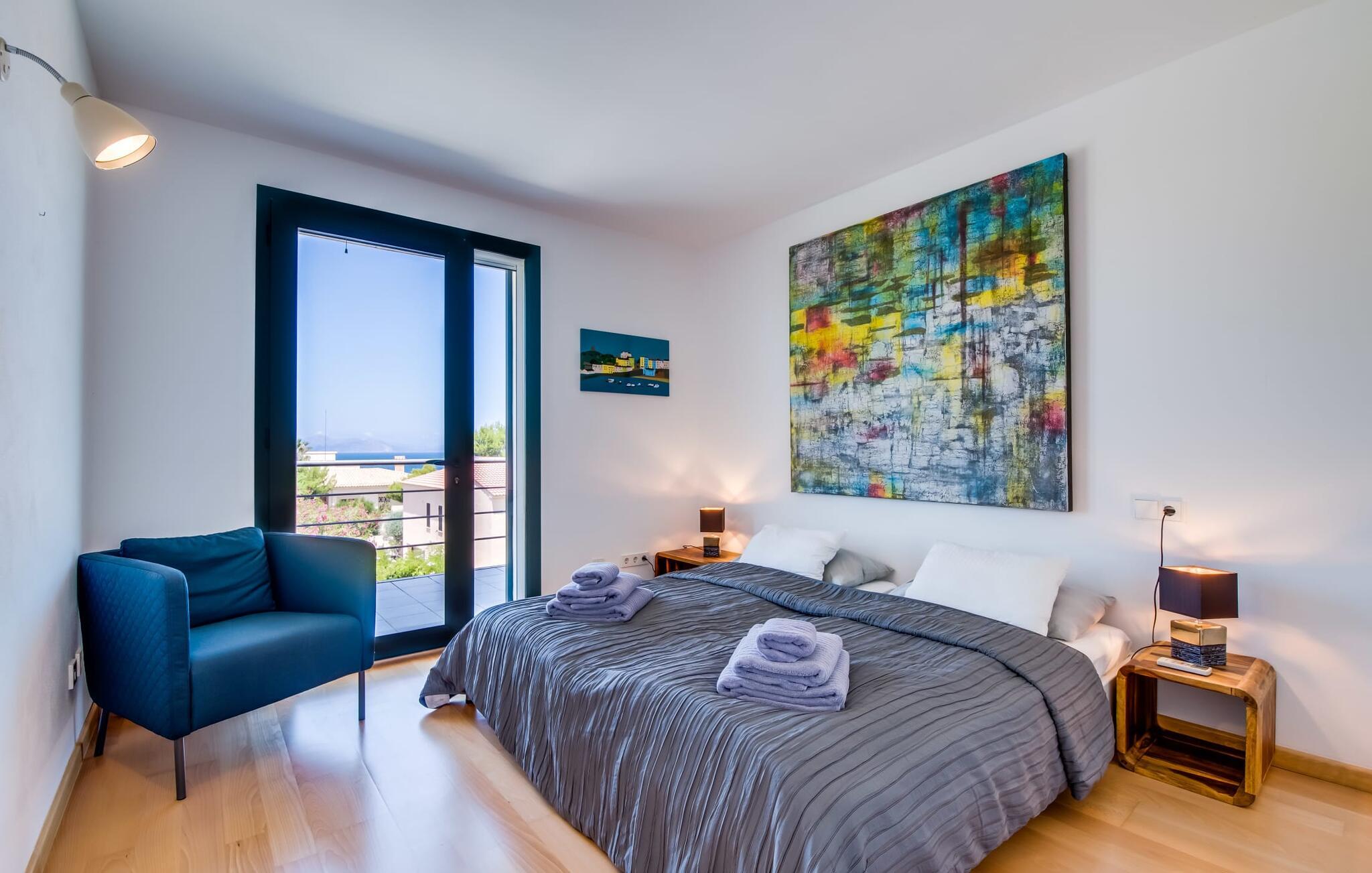 Villa "Mediterra" inviterer jer til at slappe af og nyde middelhavslivsstilen. Fra balkonen kan I nyde udsigten over det turkise hav, mærke den blide brise og indånde den friske kystluft. For dem, der ønsker at slappe af, fører kun få skridt fra huset til den bageste terrasse med pool, perfekt til en forfriskende svømmetur. Komfortable liggestole og en moderne gasgrill venter på jer, ideel til en eftermiddag med afslapning og udendørs spisning. Nyd jeres måltider ved træbordet med rattanstole og nyd de rolige omgivelser. Villaen har også en tagterrasse med en fantastisk udsigt over Alcudia-bugten og bjergene. Indenfor forbinder en stor terrassedør poolområdet med opholds- og spiseområdet i åbent plan. Den lyse, sommerlige indretning har hvide vægge, varme træaccenter og farverige kunstværker. Et moderne fjernsyn, en åben pejs og en behagelig sofa skaber en indbydende atmosfære til køligere aftener. Det veludstyrede køkken byder på alt hvad I behøver til en afslappende ferie, lige fra en mikrobølgeovn til en kaffemaskine. Med fire dobbeltværelser og tre badeværelser (to en suite) sikrer Villa "Mediterra" et behageligt ophold for alle. Den smukke, moderne finca "Mediterra" ligger i Alcúdia-bugten, i det mangfoldige østlige Mallorca. Beliggende midt i den velholdte urbanisering af Montferrutx, er supermarkeder, små butikker og gode restauranter inden for nem gåafstand. Den charmerende middelalderby Artà ligger kun 13 km væk. Stranden i Colònia de Sant Pere ligger kun 10 minutters gang væk, mens hvis I tager mod vest, vil I snart nå stranden i Son Serra de Marina.