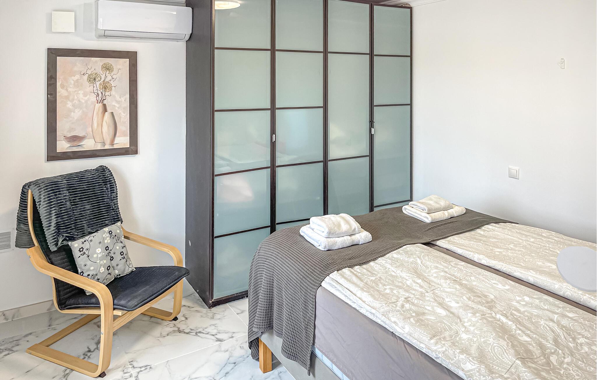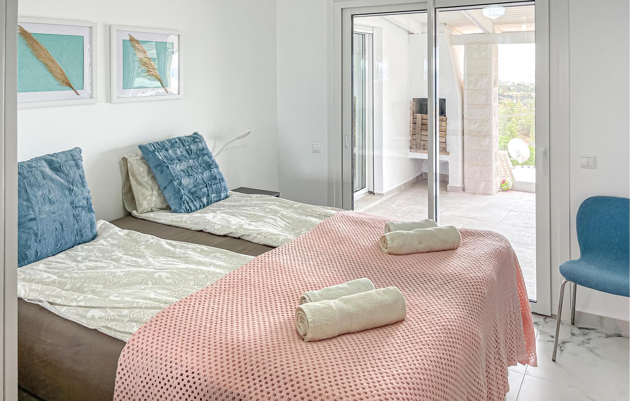 Kom med familie eller venner og jeres elskede firbenede ven til dette fantastisk smukke feriehus og oplev et skønt og afslappende ophold. I huset finder I alt hvad I behøver til en ubekymret tid. Nyd en forfriskende morgenmad på terrassen, hvorfra I har en vidunderlig udsigt over landskabet til havet. I poolen kan I køle ned på et hvilket som helst tidspunkt af dagen eller svømme et par omgange om morgenen. Efter en begivenhedsrig dag, kan I lade jeres ben dingle i vandet, mens I ser solnedgangen.
