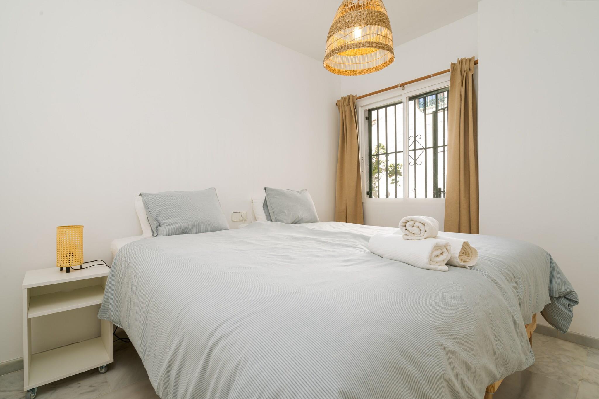 Ejendommen tilbyder sammen med sin hyggelige og moderne charme en velindrettet lejlighed på 83 m² med to soveværelser, der giver plads til op til fire gæster. Det har et rummeligt opholdsområde med pejs og aircondition i stuen og udvalgte soveværelser, hvilket sikrer en behagelig atmosfære året rundt. Lejligheden har en 5 m² stor terrasse med havemøbler, perfekt til at slappe af og nyde udendørslivet. En fælles swimmingpool er tilgængelig for gæsterne, sammen med praktiske faciliteter såsom Wi-Fi, en vaskemaskine, et strygejern og en hårtørrer. Denne lejlighed ligger i det naturskønne område Mijas Costa og tilbyder nem adgang til nærliggende attraktioner, herunder fantastiske strande, golfbaner og maleriske vandreture langs kysten. Den charmerende by Mijas ligger kun en kort køretur væk, hvor gæsterne kan udforske traditionelle andalusiske gader, caféer og butikker. Det uafhængige køkken er fuldt udstyret med moderne elektriske apparater, herunder køleskab, ovn, fryser og opvaskemaskine, samt alt det nødvendige køkkenudstyr, herunder tallerkener, bestik og redskaber. Der er også kaffemaskine, brødrister, kedel og juicer, som giver gæsterne fleksibilitet til at tilberede måltider eller nyde en forfriskende drink når som helst. Dette veldesignede køkken forbedrer lejlighedens muligheder for selvforplejning, hvilket gør det til et godt valg for dem, der foretrækker at tilberede deres egne måltider. Uanset om du nyder en stille aften ved pejsen eller tilbereder måltider i det fuldt udstyrede køkken, tilbyder denne lejlighed alt det nødvendige for et afslappende og behageligt ophold.