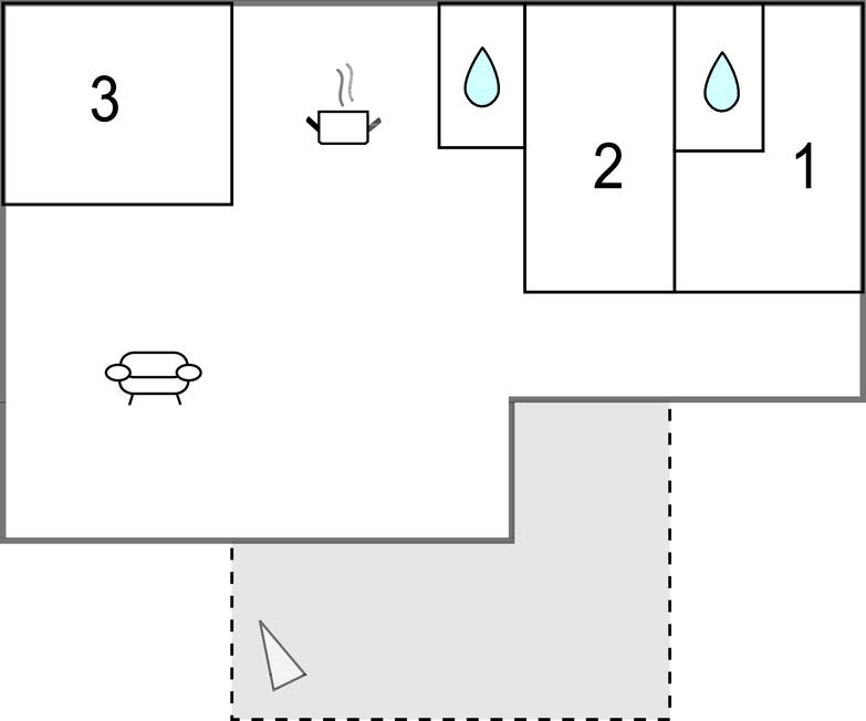 Soveværelse (nr. 1) - 1 Soveplads. (Enkeltseng(e)). 2 Sovepladser. (Dobbeltseng(e)).