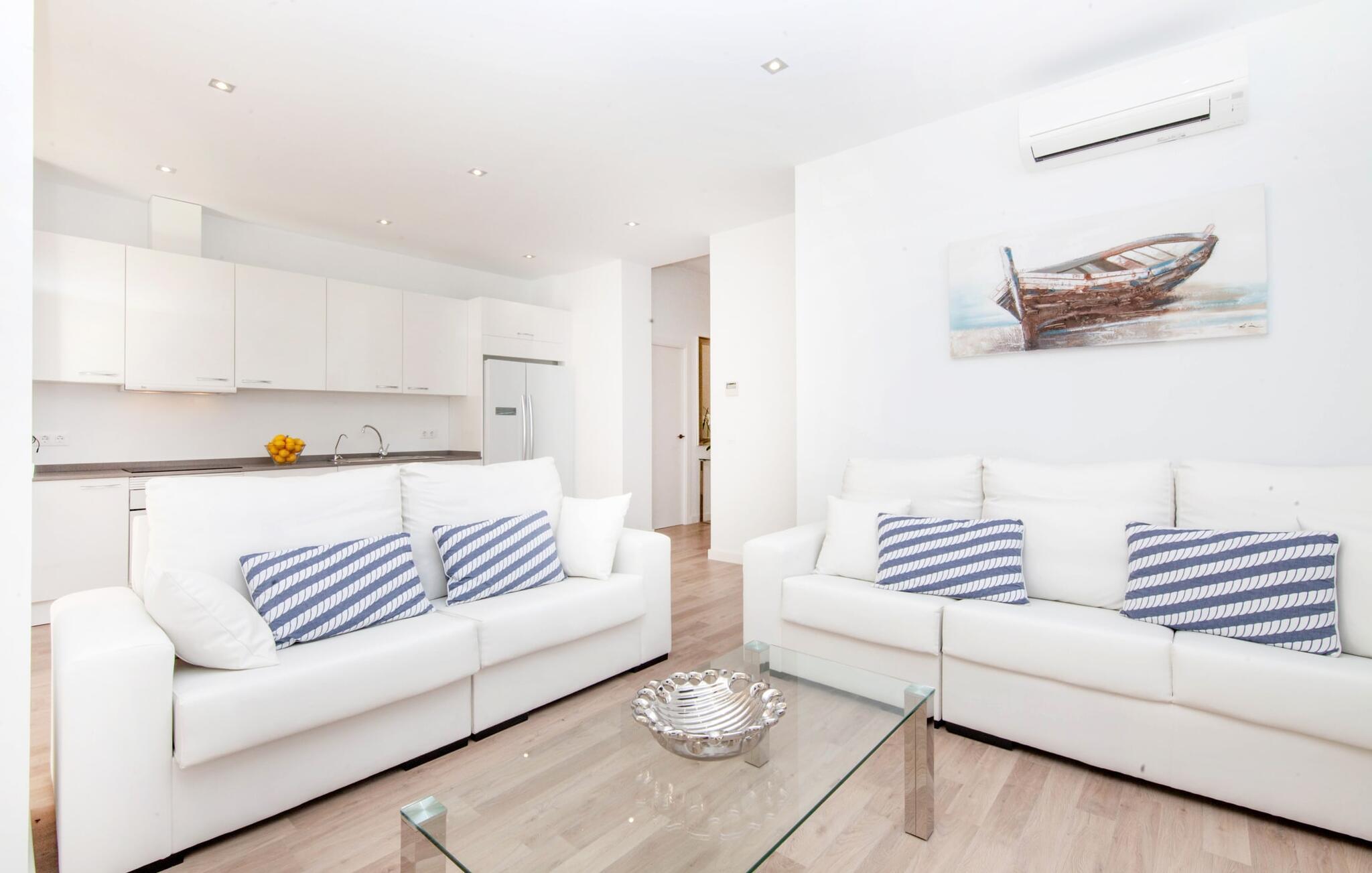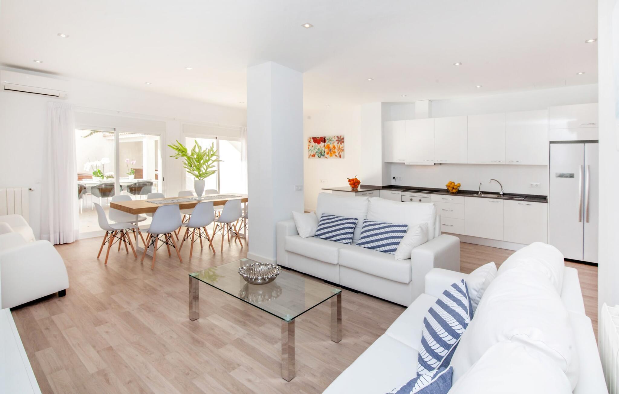 Kan du indimellem godt lide at danse til din egen rytme? Er den klassiske mallorcanske stil med sandsten lidt for gammeldags til dig? Så prøv at leve helt i hvidt. Enhver, der kan lide dette klare udseende af lethed, vil elske det smukke rækkehus "Miquel Santandreu 40" i Palma. Den glitrende turkisblå pool indrammet af træ er et absolut blikfang i din brolagte gårdhave. Her kan du slappe af i middagssolen og nyde en siesta, mens butikkerne er lukkede. Den mobile grill under den overdækkede terrasse og det lange spisebord venter bare på, at du skal prøve den ene delikatesse efter den anden. På tagterrassen kan du nyde udsigten til den solrige øs blå himmel. Men først ting først, inden du går til første sal: I stueetagen kan du forvente et åbent design med masser af plads til din personlige ferieglæde. Det hvide, moderne køkken harmonerer perfekt med sofaen og spisepladsen. Takket være det store køleskab kan du holde mange af dine hverdagsting friske. Hvis du får lyst til at lave mad, kan du gå i gang med det samme. Et soveværelse med dobbeltseng og toilet samt eget badeværelse fuldender indretningen af stueetagen. Med billeder af sejlbåde kan du endda mærke en let havbrise her i byen. En vindeltrappe og en trappe med moderne glasomgivelser tager dig til høje højder. Anden sal byder dig også velkommen med lyse hvide og subtile nuancer af blå. To soveværelser med dobbeltsenge og to værelser med enkeltsenge byder på masser af plads. Badeværelserne er ekstremt moderne takket være de få fliser på væggen. En stor fordel ved rækkehuset er, at du hurtigt kan nå dine drømmedestinationer takket være gaden direkte foran huset. Det nærmeste supermarked ligger kun 400 m væk. Lufthavnen ligger kun 10 km væk, så du kan tjekke ind i dit rækkehus praktisk talt, så snart du lander og ikke behøver at køre en lang køretur. Palma er hovedattraktionen på hele øen. Glem ikke at give nok tid til sightseeing og shopping, selvom du føler dig hjemme i dit rækkehus. Det ugentlige marked i s'Arenal ligger kun 13 km væk. Du kan også nyde den strålende green på den nærliggende golfbane, som ligger kun 6 km væk. Med dette rækkehus kan du være sikker på, at alle vil finde passende aktiviteter i umiddelbar nærhed: uanset om de er festdeltagere, dem, der søger fred og ro, byboere eller strandelskere. Turen langs Platja de Palma er omkring 10 km lang. Mallorcas hjerte ligger i Palma. Så meget desto bedre venter det smarte rækkehus "Miquel Santandreu 40", hvor du kan nyde afslappende stunder på trods af det livlige byliv. Leder du efter sightseeing i den gamle bydel, eller elsker du omfattende shoppingture i trendy butikker eller hele festlivet i s'Arenal? I øens hovedstad finder du alt, hvad du leder efter på din solrige ø. Og selvfølgelig kan havet hurtigt nås. Den berømte Platja de Palma ligger omkring 10 km væk. Dette er et Fincallorca feriehus.