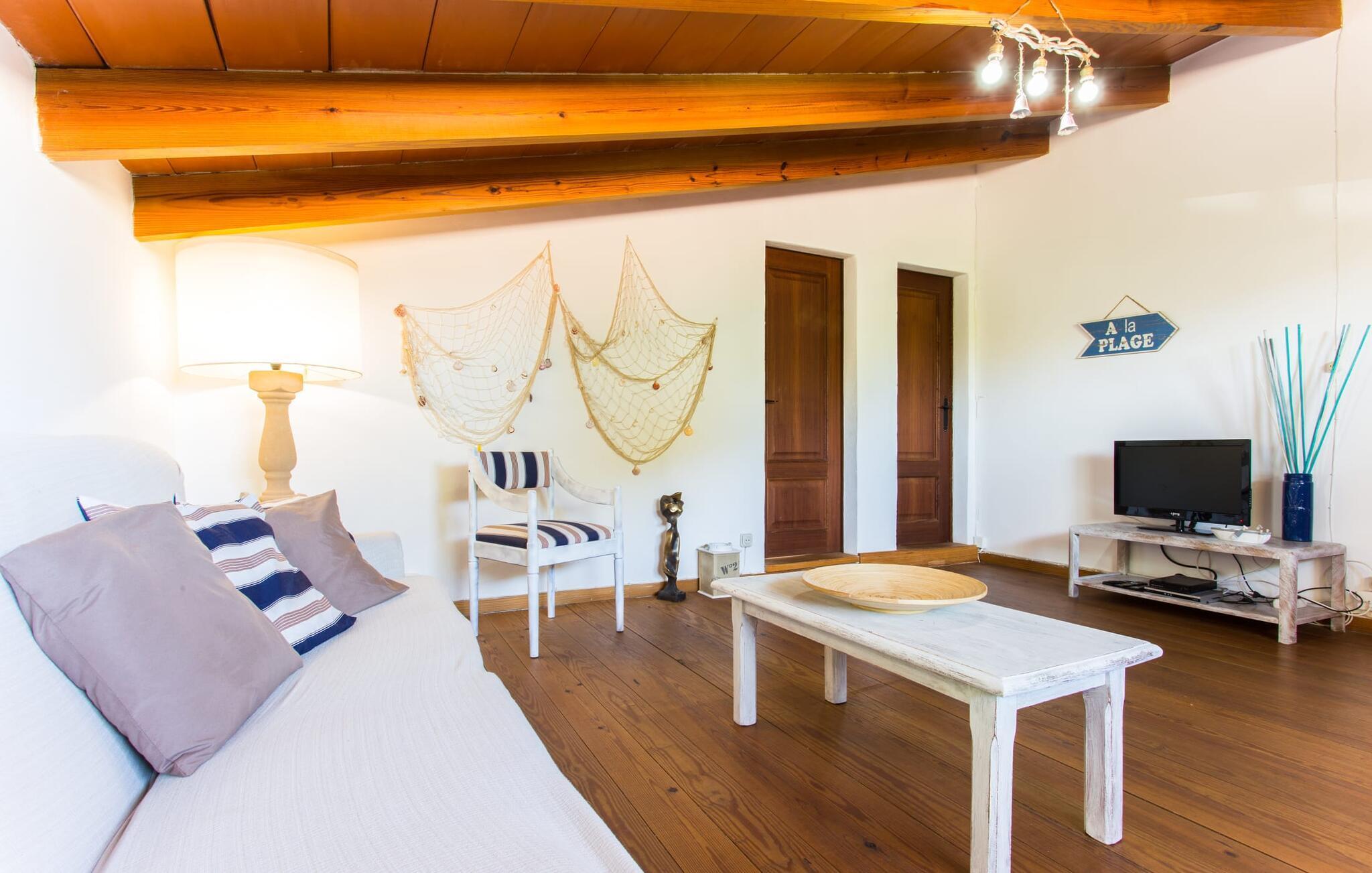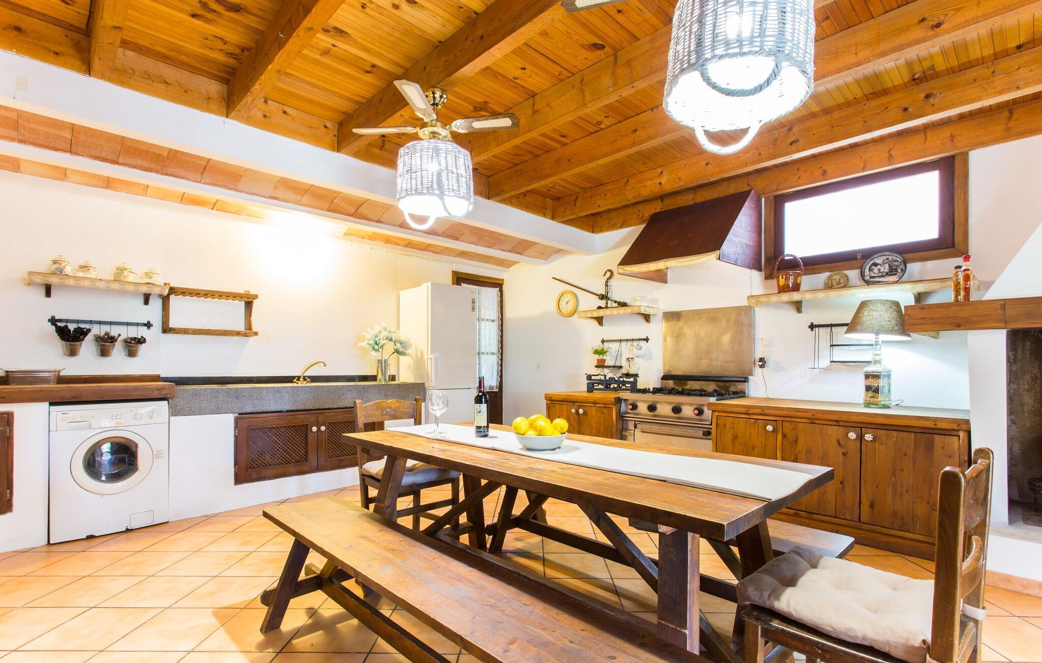Villaen "Mirabo Guixa" er en fantastisk indkvartering for familier. En stor have med græsplæne til at slippe dampen ud? Sikkert! En ekstra stue til de unge? Naturligt. Der er også en privat legeplads med gynger, trampolin og basketballkurv. Er det stadig ikke nok for børnene? Nå, hop i den kølige, våde, balancerende pool, indtil storesøster kommer tilbage med den næste snack. Et andet højdepunkt er bestemt den rustikke grillplads på den overdækkede terrasse. Spansk vin og frisk grillet fisk. muslinger. Eller måske lam? Sørg for at komme til det vidunderligt store, ovale træbord, for det bliver helt sikkert lækkert. Den landlige beliggenhed med få naboer og det rummelige, oprindeligt grønne udendørsområde sikrer absolut privatliv. Hvis du kravler tidligt ud af sengen, så tag en plads i hængekøjen i halvskygge til din første morgenkaffe. Forskellige andre siddepladser er tilgængelige til hyggeligt samvær. Det er simpelthen utroligt blandt de naturlige drueblade. Eller på verandagyngen med udsigt til poolen. Eller midt i den grønne oase lige ved siden af legepladsen. En asfalteret indkørsel fører dig nemt og direkte til carporten med masser af parkeringspladser. Dette er et Fincallorca feriehus. Og nu: kom ind. Med 240 m² boligareal er intet og ingen udeladt. Den enorme stue/spisestue byder på høje paneler til loftet og charmerende detaljer. Lidt shabby chic parret med maritime dekorative elementer og unikke skulpturer. En iøjnefaldende pejs til hyggelig varme om aftenen. Og et fladskærms-tv, der kan gemmes i skabet, når du vil fokusere på dine muntre venner og familie. Det rustikke, hyggelige køkken er i naborummet. Hvis man ville, kunne man endda danse på bænkene – de robuste sæder kan tåle meget. Men vær venlig ikke at blive for vild! Kogeudstyret lader intet tilbage at ønske, der er endda en vaskemaskine. Villaen har fem soveværelser med dobbeltsenge (to med dobbeltsenge, tre med enkeltsenge). Små tilbehør og det tilsvarende farvestænk gør hvert værelse til et blikfang. De små sommerfugle på væggen, der i hemmelighed kan snige sig ind i nogens drømme, er så smukke. Der er også en ekstra lille stue på øverste etage. Har de teenagere, du rejser med, ikke lyst til at holde en tapas-aften sammen? Intet problem! De smukke badeværelser – fem i alt – sikrer også tilstrækkelig privatliv. Den næststørste by på øen imponerer frem for alt med sin særlige charme. Udover sine perler er byen også kendt for sin dekorative keramik, lækre vin og meget mere. Du er sikker på at finde en passende souvenir til dine kære derhjemme. Der er et frugt- og grøntsagsmarked hver dag (undtagen søndage) på Placa Constitucio. Landsbyen Son Macia, som ligger lidt tættere på, er også et besøg værd. Derudover bør du gå en tur i den maleriske fiskerlandsby Porto Christo for at opleve havnestemningen og prøve de maritime forlystelser i Porto Colom. Til stranddage anbefaler vi Cala Varquez med sit fine sand og behageligt lavvandede adgang til havet. Den perfekte familievilla "Mirabo Guixa" ligger kun et stenkast fra Manacor. Landligt, men alligevel fremragende beliggende for nemt at udforske regionens smukke byer og strande. Der er ca. 14 km til Porto Cristo og ca. 18 km til Mallorca. Andre populære destinationer omfatter Manacors perle- og møbelbutikker og Rafa Nadal-museet.
