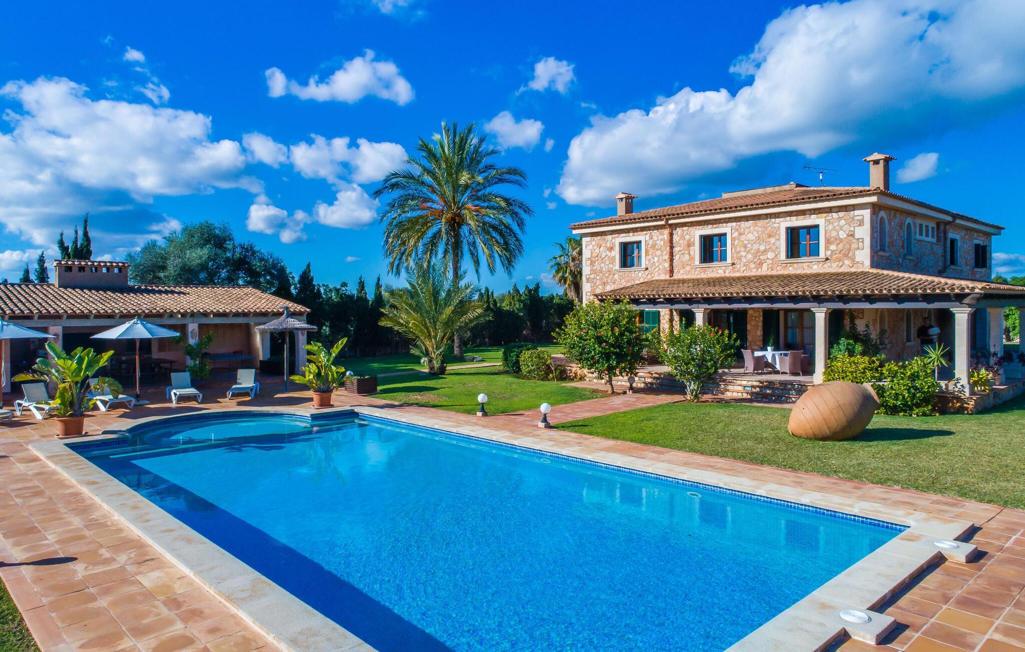 Når man ser på billederne af villaen “Mitjana” kan man ikke få nok: Stort land, palmer og cypresser mod en helårsgrøn baggrund, i det fjerne Middelhavet og midt i det hele ligger det smukke traditionelle stenbrudshus med hvide lister, trævinduer, grønne skodder og de lertagsten, der er typiske for regionen. "Mitjana" er et af de smukke, klassiske stykker af Mallora, som vi alle elsker så højt, og det er tæt på stranden. Proportionerne af komplekset er perfekt realiseret og lige ved siden af den storslåede hovedbygning med dens overdækkede terrasse og plads nok til en udendørs spiseplads er der en swimmingpool på næsten 80 m². Det meget praktiske udendørs badeværelse er integreret i udekøkkenets murstensstruktur lige ved siden af, som har to indbyggede BBQ-grill og en brændeovn. Der er en dejlig rustik atmosfære, hvor du kan afslutte dagen med at slappe af med venner og familie, mens du nyder en lækker BBQ. Du kan købe friske, sprøde produkter på markedet i Felanitx eller Santanyí. Hvis du ikke laver andet, kan du hoppe i swimmingpoolen eller teste dine færdigheder ved bordtennisbordet. Samlet set byder den omfattende have i maritim stil på mange muligheder for børn til at slippe damp og have det sjovt. Det er så enkelt som at lade dem gå. Indretningen af huset gør det ideelt for to familier af venner, der rejser sammen. I alt 350 m² boligareal er fordelt på to etager og er elegant designet og indrettet, som passer godt til husets traditionelle facade. I stueetagen, på den anden side af terrassen, er den udsøgte opholds- og spisestue med en behagelig sofa, hyggelig pejs, TV, bibliotek og klaver. Husets klassiske charme med stukafslutninger, moderne møbler af høj kvalitet, tæpper og lysekroner suppleres af integreret spotbelysning og særligt skinnende blankpolerede gulve. Det store, alsidige køkken i landlig stil med varme træskabe er meget moderne udstyret, herunder en opvaskemaskine og et amerikansk køleskab med ismaskine til kølige drikkevarer, men har også en gammeldags brændeovn. Det har også en ekstra spiseplads foran en gammel pejs. Der er også et toilet på denne etage, som er tilgængeligt for alle gæster. Det er meget rart, at alle soveværelser er på øverste etage. Dette omfatter to store soveværelser, der deler et separat opholdsområde og et tilstødende badeværelse. Yderligere tre badeværelser, hver med to enkeltsenge, deler et badeværelse med badekar - ideel til at bringe alle børn sammen, eller endda til venner eller bedsteforældre, der er med på turen. Alle værelser har aircondition og selvfølgelig opvarmet. Du har sikkert allerede fundet billederne af badeværelset bag det store soveværelse, hvor du finder et boblebad og en bruser med massagedyser. Her venter dig virkelig himmelske oplevelser - og selvfølgelig er der meget mere at udforske og opdage uden for villaen. Du kan opdage mangfoldigheden af de smukkeste Baleariske Øer, især langs den sydøstlige kyst. Udover hyggelige byer med let turisme, livlige promenader med gode restauranter og et par barer, er der også talrige strande, der er perfekte til en ferie ved vandet. Disse omfatter villaens navnebror, Cala Mitjana, men også Cala Sa Nau, Cala Petita, Cala Serena, Cala Ferrera og mange flere. Disse steder har alle imponerende fjordlignende bugter med klart vand. Den nærliggende landevej, som fører enten ind i landet eller til attraktive destinationer langs kysten, er delvist hørbar fra ejendommen, men kun når vinden er lige tilpas. Nærheden af denne motorvej betyder, at du kan nyde en landlig beliggenhed, der stadig giver nem adgang til en række ferieaktiviteter, som endda kan omfatte et besøg på den nærliggende Vall d'Or golfbane. Hvordan du slapper af og tager en pause fra hverdagens stress er op til dig - men vi hos Fincallorca gør vores bedste for at tilbyde dig det perfekte sted at gøre det, og i vores øjne er Villa “Mitjana” lige sagen. Den udsøgte naturstensvilla "Mitjana" med stor anlagt have, poolområde og rustikt udekøkken ligger kun få minutters gang fra badebugten af samme navn nær Cala D'Or. I denne charmerende lille by med sin enkle hvide arkitektur kan du shoppe eller gå en tur langs promenaden. For øens berømte markeder kan du tage til Santantyí eller længere inde i landet til Felanitx. Nyd et mangfoldigt udvalg af brede, fjordlignende badebugter, der nemt kan nås med din lejebil. Dette er et Fincallorca feriehus.