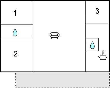 Badeværelse 4m2 (nr. 1) - WC. Varmt og koldt vand. Bruser