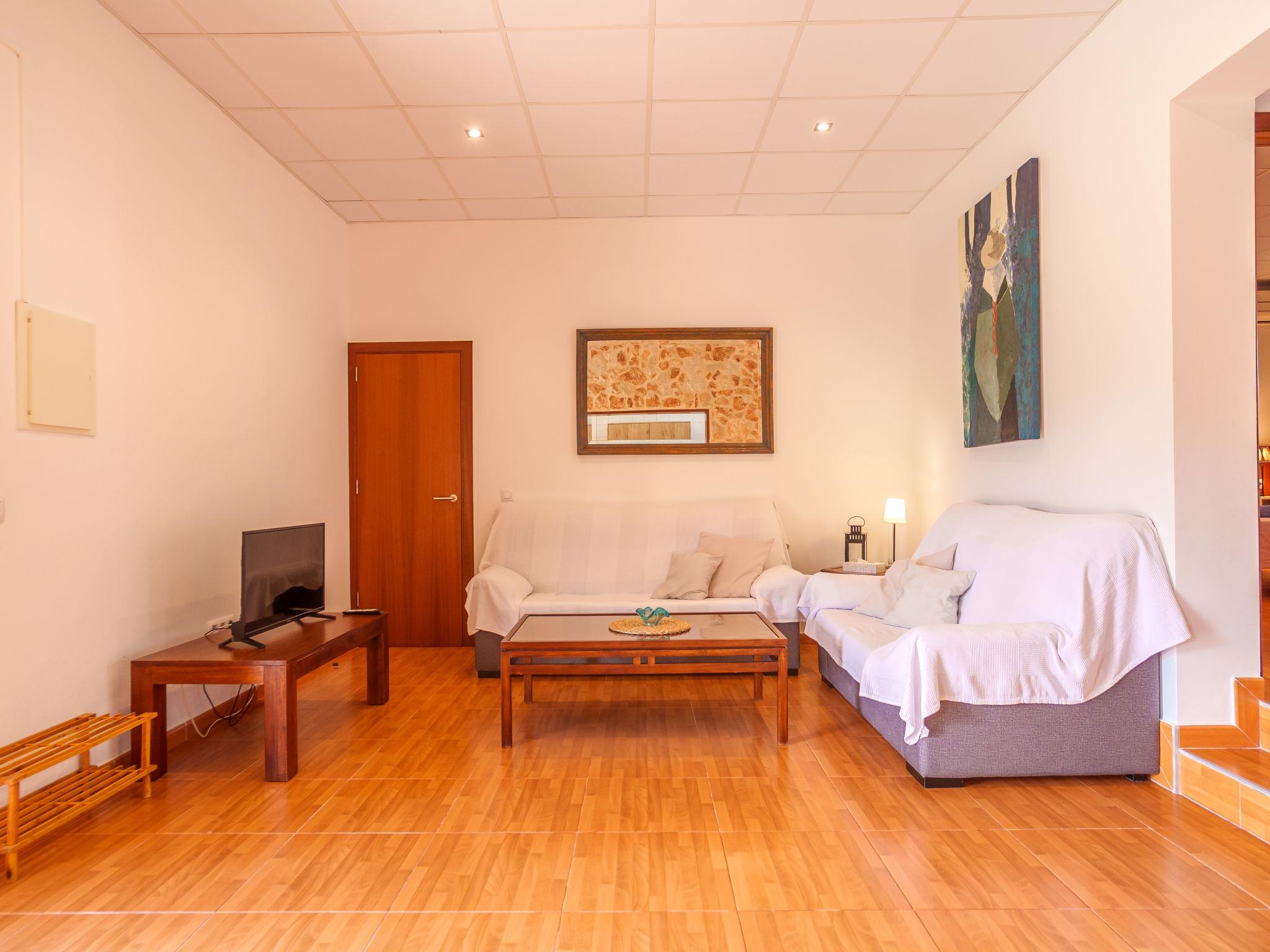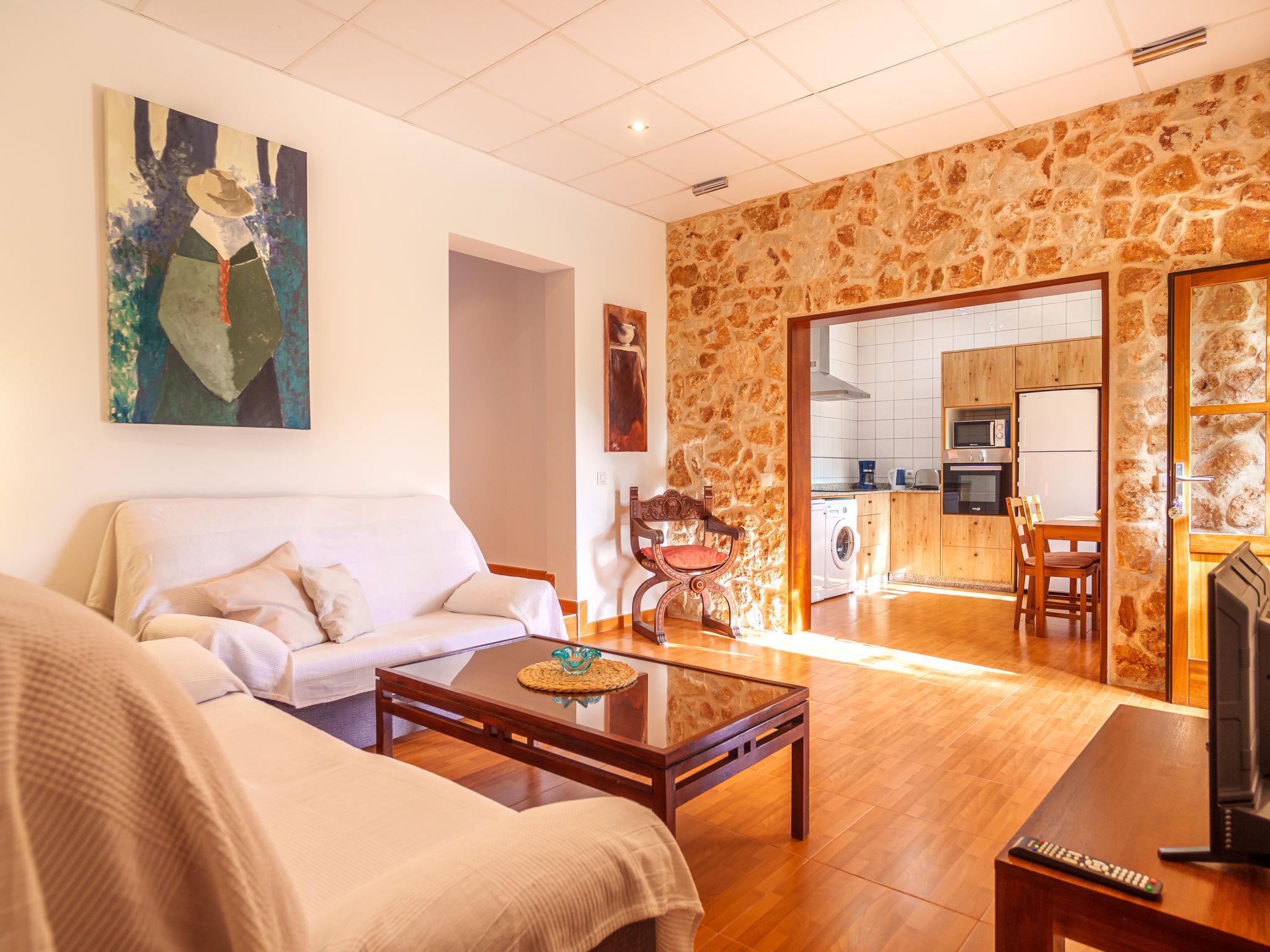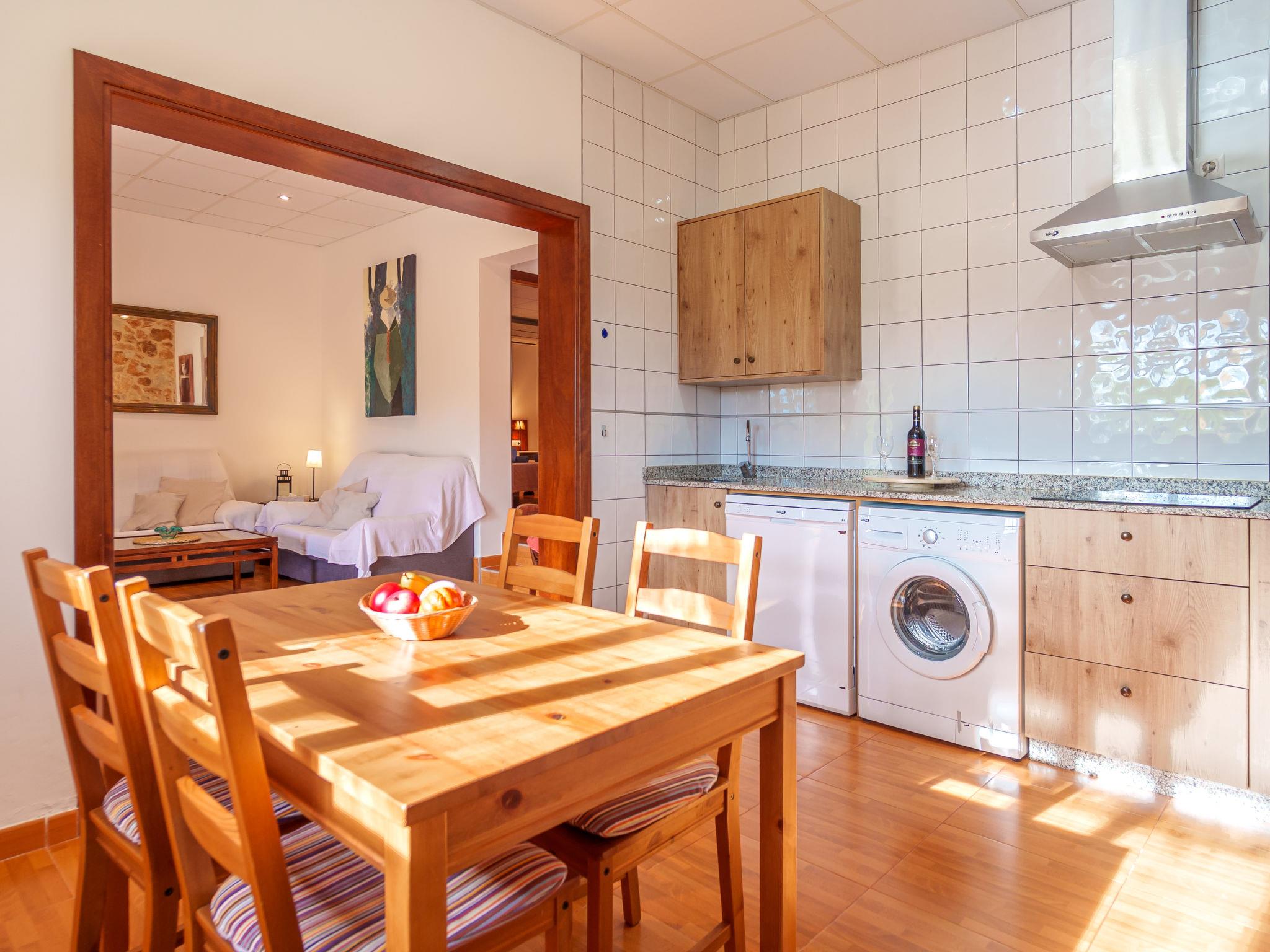 "Finca Can Corritx", 3-room apartment 100 m2. Comfortable furnishings: living room with satellite TV and digital TV. Exit to the terrace. 1 room with 2 beds and shower/WC. 1 room with 1 french bed (150 cm), shower/WC. Open kitchen (oven, dishwasher, 4 ceramic glass hob hotplates, toaster, kettle, microwave, freezer, electric coffee machine) with dining table. Electric heating, air-conditioning. Terrace 30 m2, roofed terrace 10 m2. Terrace furniture, barbecue (portable). Facilities: washing machine, iron, children's high chair, baby cot for up to 2 year olds, hair dryer. Internet (WiFi, free). Please note: non-smokers only. AG 344