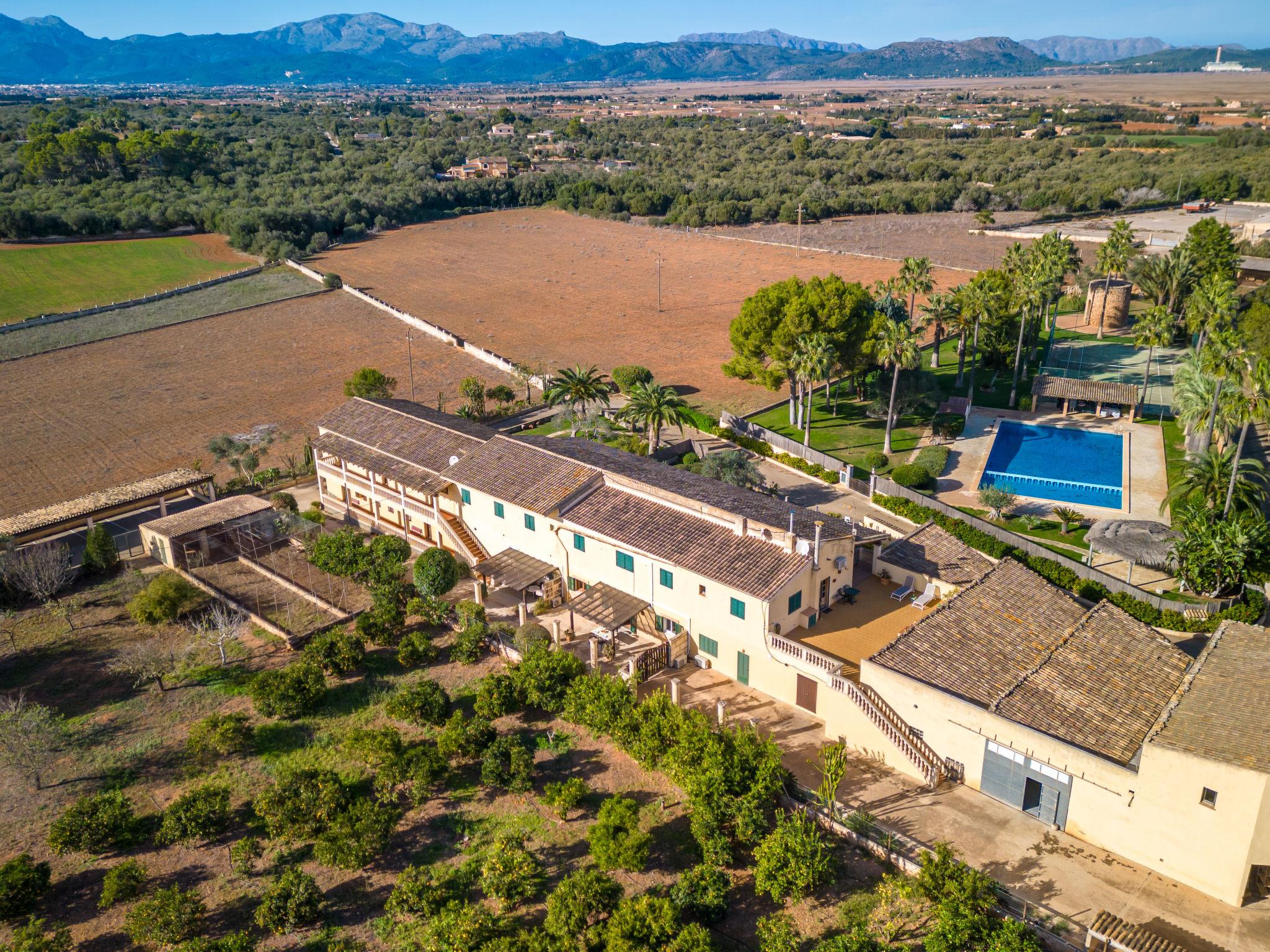 Son Sant Marti 3 km from Can Picafort: Large, child friendly country house "Finca Can Corritx", 2 storeys, surrounded by trees and fields. Property composed of main house and outbuilding 7 km from the centre of Muro, 3 km from the centre of Ca'n Picafort, 12 km from the centre of Alcudia, in a quiet, sunny position, 3 km from the sea, 3 km from the beach, in the countryside, south facing position. For shared use: property 10 ha with lawn and trees, orchard, swimming pool (20 x 12 m, seasonal availability: 01.Jan. - 31.Dec.). WC in the pool area, children's pool, outdoor shower, tennis, patio, terrace, garden furniture, pool maintenance by the owner/gardener. In the house: storage room for bicycles. Roofed, parking on the premises. Shop 3 km, grocery 2 km, supermarket 2 km, restaurant 3 km, bar 1 km, bakery 3 km, café 2 km, bus stop "Camping Can Picafort" 2 km, railway station "Sa Pobla" 10 km, ferry "Puerto de Alcudia" 16 km, sandy beach "Ca'n Picafort" 3 km. Sports harbour 5 km, marina 16 km, golf course (18 hole) 18 km, surf school 6 km, sailing school 6 km, tennis 4 km, riding stable 5 km, sports centre 4 km, walking paths from the house 8 km, cycle lane 6 km. Nearby attractions: Formentor 20 km, Albufera de Alcudia 10 km, Cuevas de Campanet 18 km. Hiking paths: Albufera de Alcudia 10 km. Please note: car recommended. On the estate animal husbandry. The owner lives in the same residence.