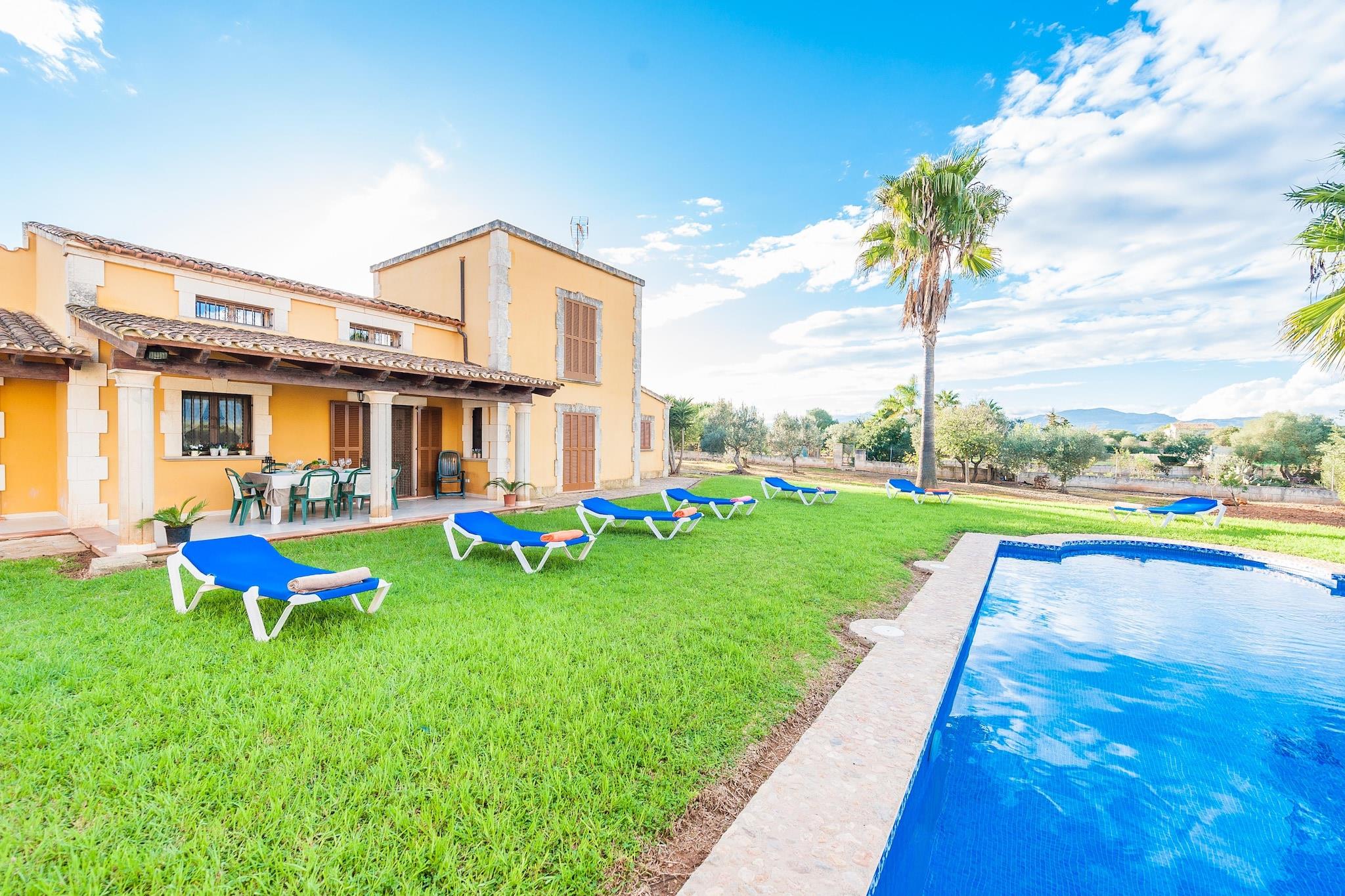 Villa sammen med charmerende funktioner giver et ideelt tilflugtssted for familier og venner, der kan rumme op til otte gæster fordelt på fire smukt indrettede soveværelser - tre med dobbeltsenge og et med to enkeltsenge. Den indbydende stue, der er udstyret med en behagelig sofa, er perfekt til afslapning, uanset om du læser en bog eller nyder satellit-tv. Gæsterne vil sætte pris på det veludstyrede køkken, komplet med vigtige apparater såsom en brødrister, blender, opvaskemaskine og gaskomfur. Ejendommen omfatter også parkeringsplads ved terrassen og en separat bygning med et ekstra køkken og grillplads ved poolen. Beliggende kun 4,7 km fra de fantastiske strande i Can Picafort og Capellans, er villaen ideelt beliggende for strandelskere. Det finkornede sand er perfekt til familieudflugter eller romantiske gåture, med masser af lokale barer og restauranter, der serverer lækker middelhavskøkken. Nærliggende attraktioner omfatter Playa de Muro, kendt for sin rolige atmosfære og krystalklare vand, og de charmerende gamle byer Alcúdia (16 km væk) og Pollença (ca. 20 km væk), hvor du kan udforske ugentlige markeder og brostensbelagte gader. Offentlige transportmuligheder såsom bus- og togstationer er bekvemt placeret for nem rejse rundt i området. Udendørsrummet er et af villaens højdepunkter, der byder på en rummelig terrasse med et stort spisebord til sommermåltider og en 10 x 5 meter pool til forfriskende svømmeture. Der er masser af muligheder for solbadning med otte liggestole, som gæsterne kan nyde. Mens du slapper af med en cocktail ved solnedgang, skaber den indbydende atmosfære de perfekte rammer for afslapning. Bemærk venligst, at kæledyr ikke er tilladt, og at afholdelse af arrangementer er forbudt. Denne villa lover en mindeværdig ferieoplevelse, der blander komfort med skønheden på Mallorca.