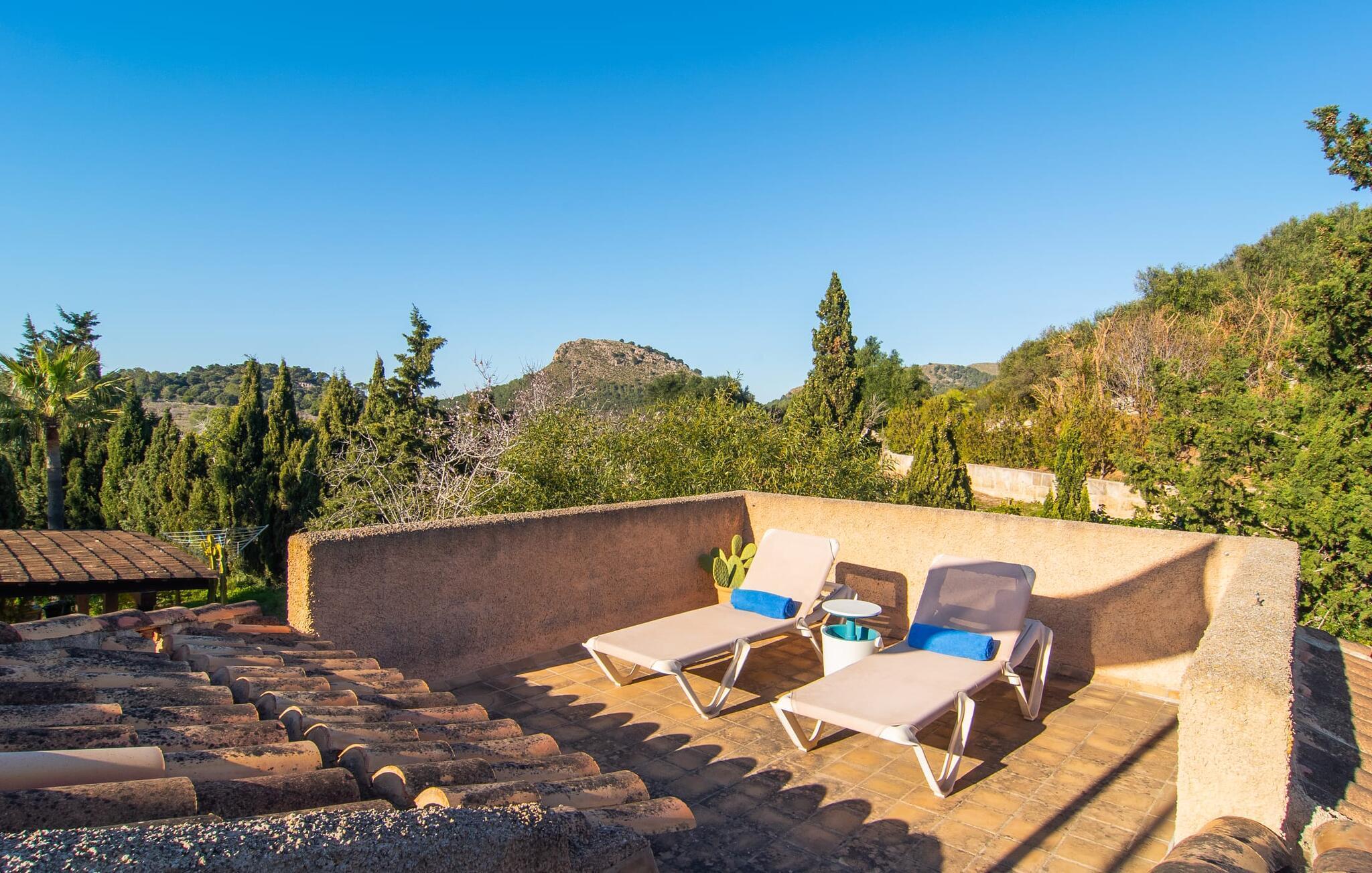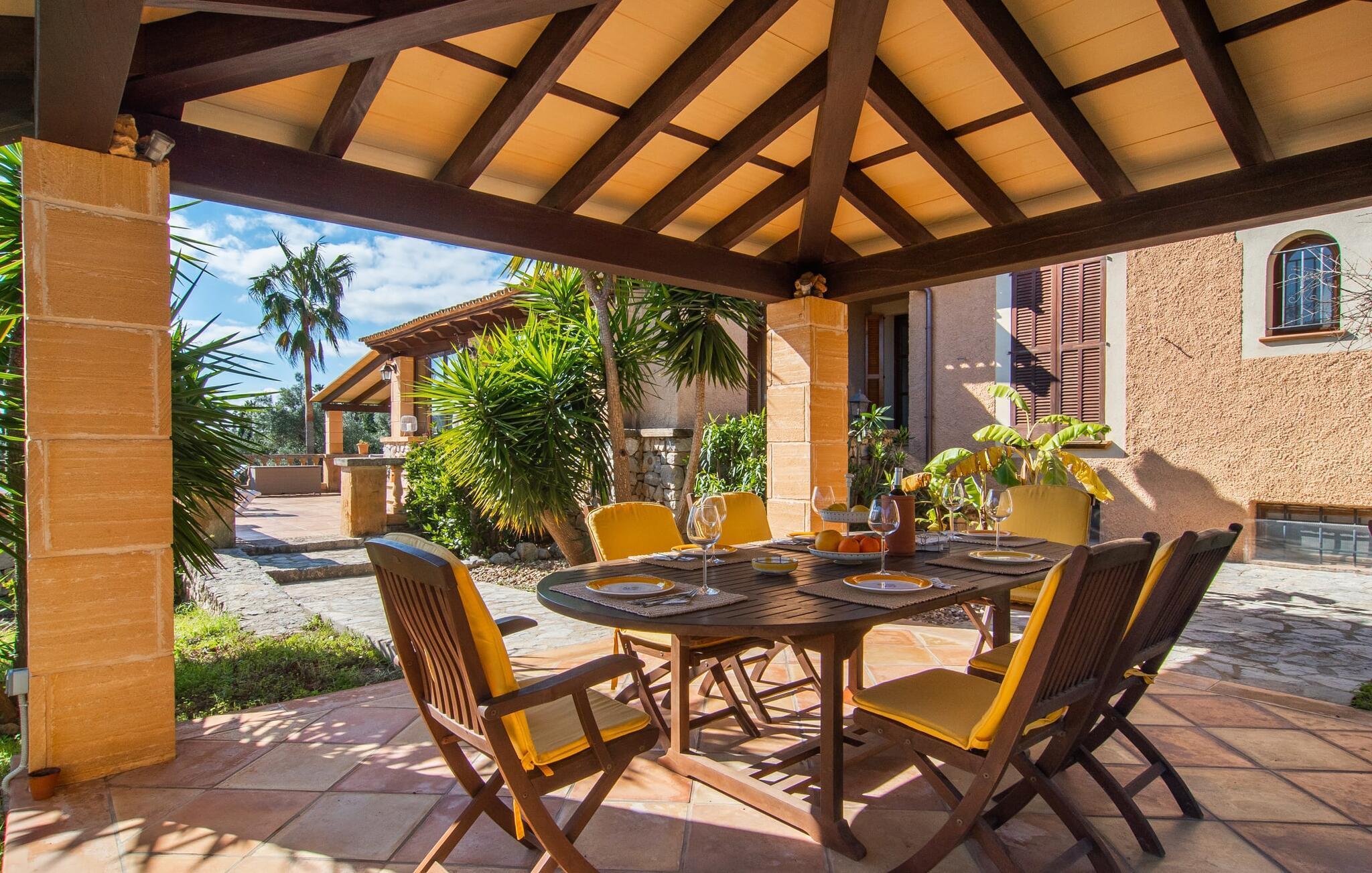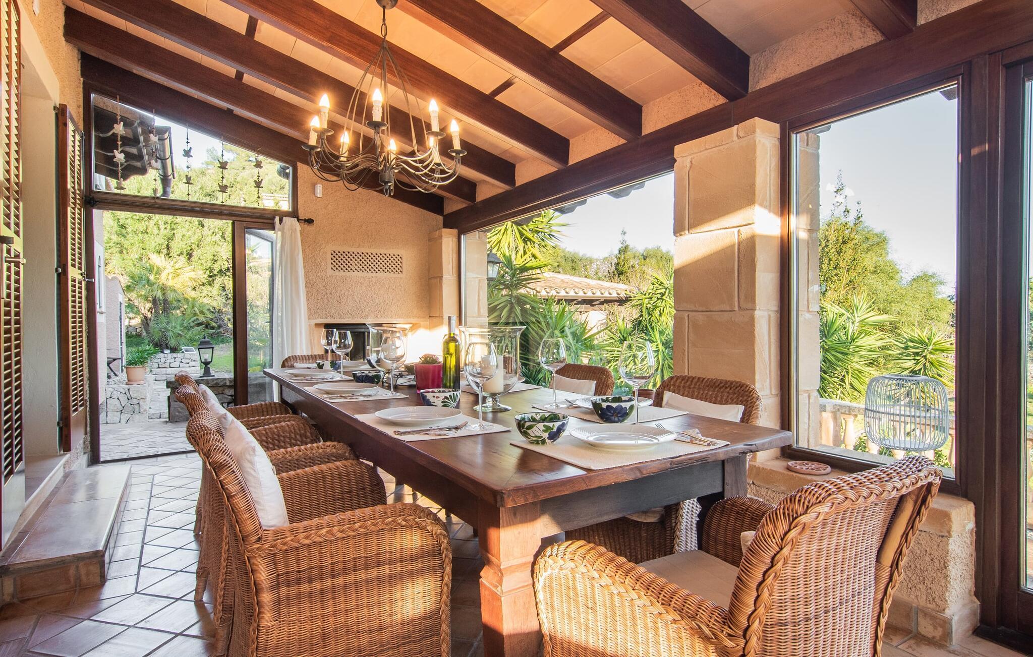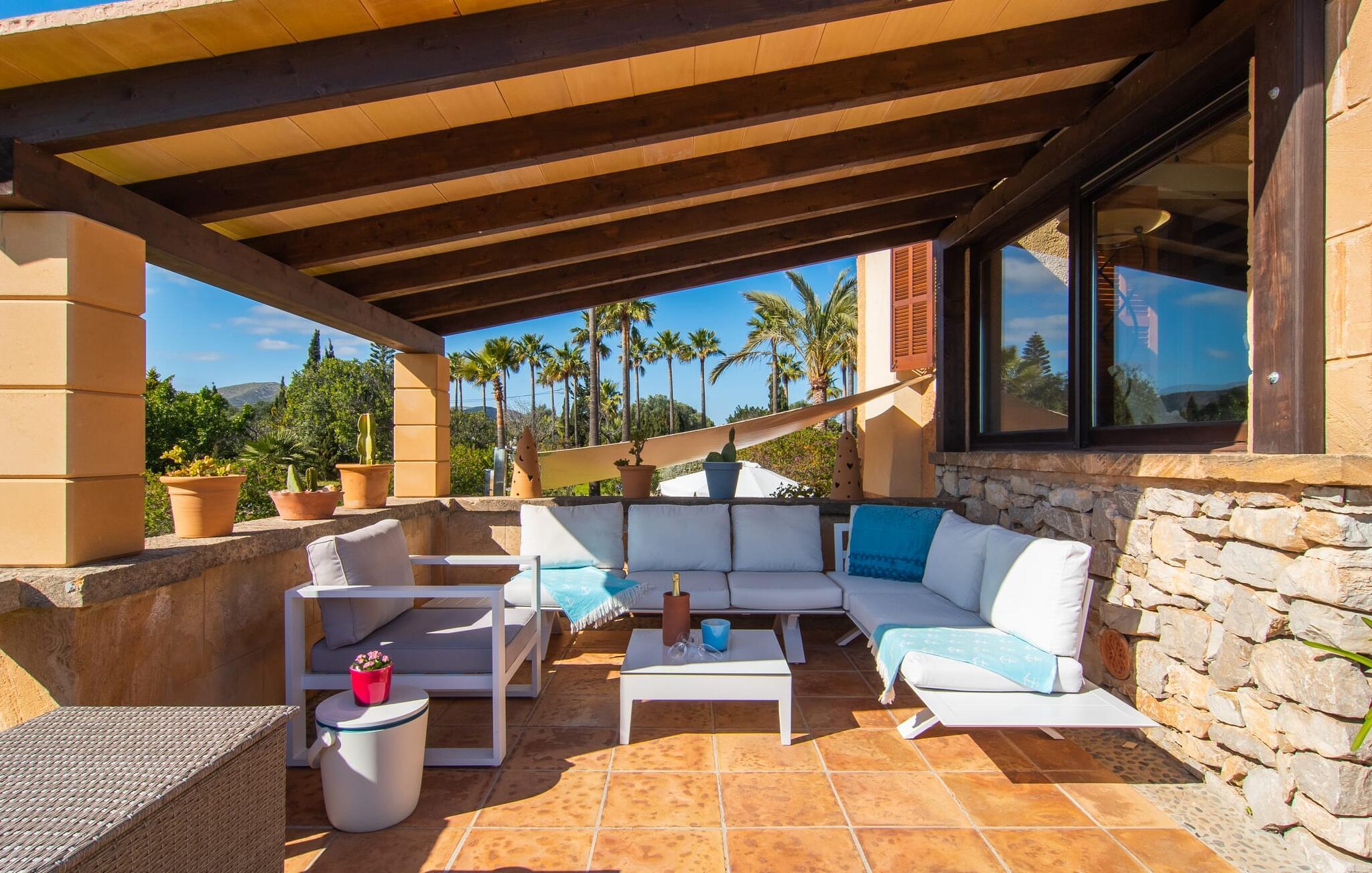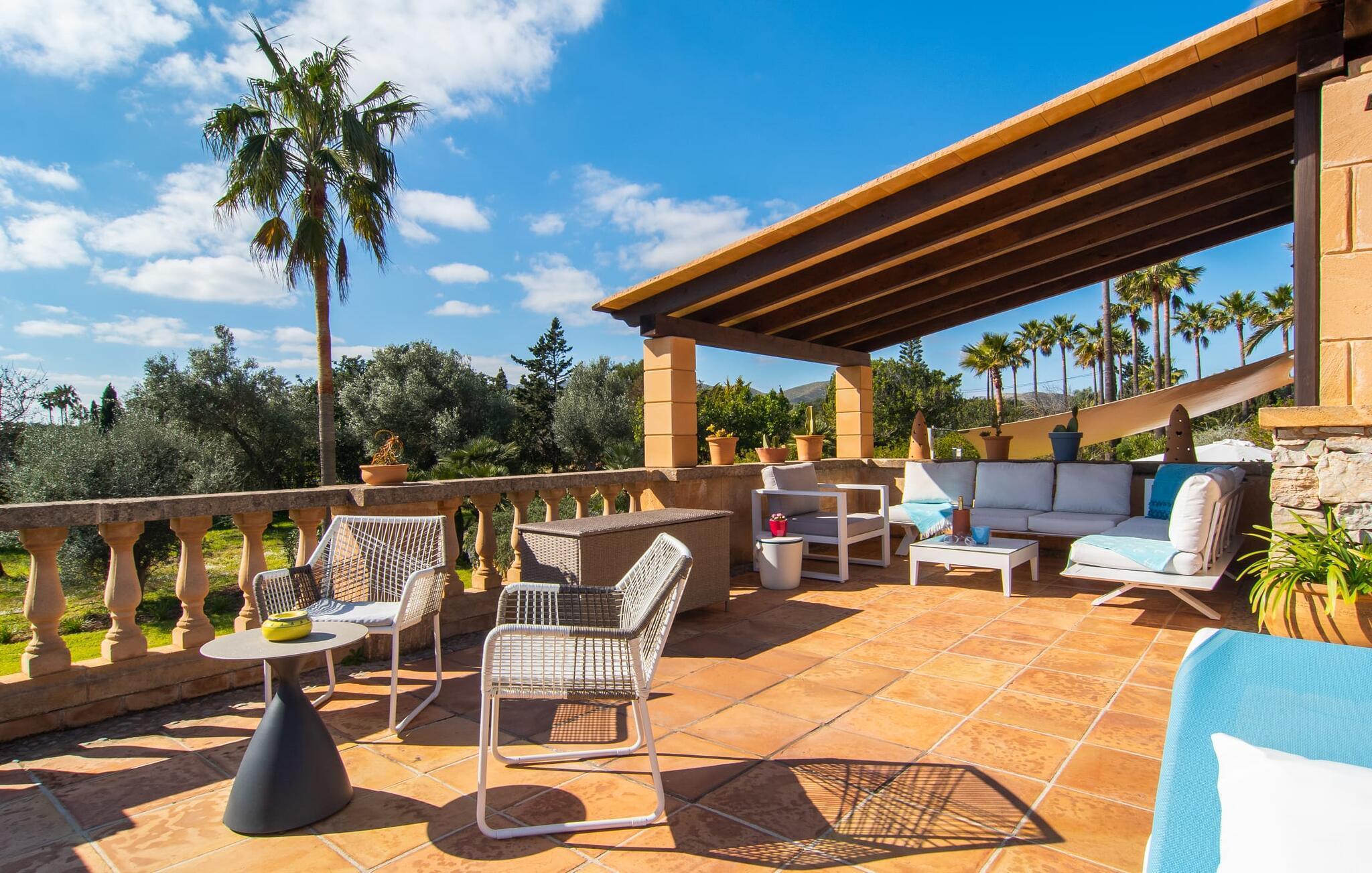 Det vidunderligt rolige feriehus "Na Nofre de Cala Ratjada" er omgivet af en rummelig have fuld af palmer, frugttræer og andre middelhavsplanter. I haveoasen vil du opdage den mosaikdækkede, klorfri pool. Den er opvarmet og kan derfor også bruges i lavsæsonen. Poolområdet har to udendørs brusere. Rundt om poolen er der liggestole i skyggen af markiser til en siesta eller den balinesiske dagseng til afslapning. Et andet højdepunkt er siddepladserne spredt ud over den spektakulære smukke have. På husets brolagte terrasser venter liggestole og et smart loungehjørne med markise. Efter en hyggelig grillaften på den overdækkede terrasse med spiseplads kan I slutte dagen af på tagterrassen med havudsigt. Der kan du nyde en uhindret panoramaudsigt over de bølgende bakker i Llevant-bjergene. Verandaen direkte ved huset byder på en anden spiseplads med en udendørs pejs. Hvis du værdsætter autentisk livsstil til din ferie på Mallorca, er dette charmerende og sofistikerede bondehus lige noget for dig. Det rustikke feriehus med moderne detaljer byder på masser af plads til op til 8 personer. Med sin opdeling i et hovedhus og en separat lejlighed kan dette store bondehus anbefales til at rejse med familien og især i flere generationer. I hovedhuset kan du nyde komforten i stuen med pejs og det separate køkken med spiseplads og smagfuld indretning. Der er fire soveværelser i alt (hvoraf det ene er et sammenhængende rum). Derudover er der to smarte badeværelser. Den separate lejlighed byder på kombineret opholds-, spise- og køkkenområde samt endnu et soveværelse og badeværelse. Der er adgang til en privat terrasse. “Na Nofre de Cala Ratjada” giver lyst til at tage på ferie til Mallorca. Vi kan ikke vente! Det idylliske bondehus "Na Nofre de Cala Ratjada" imponerer med sin opvarmede pool og tagterrasse med havudsigt med udsigt over den smukt anlagte have. Det roligt beliggende feriehus ligger på en skråning mellem Cala Ratjada og Capdepera, hvor du kan kombinere din shopping med at spise ude. Havet og de fantastiske strande er kun 8 minutter væk i bil. Dette er et Fincallorca feriehus.