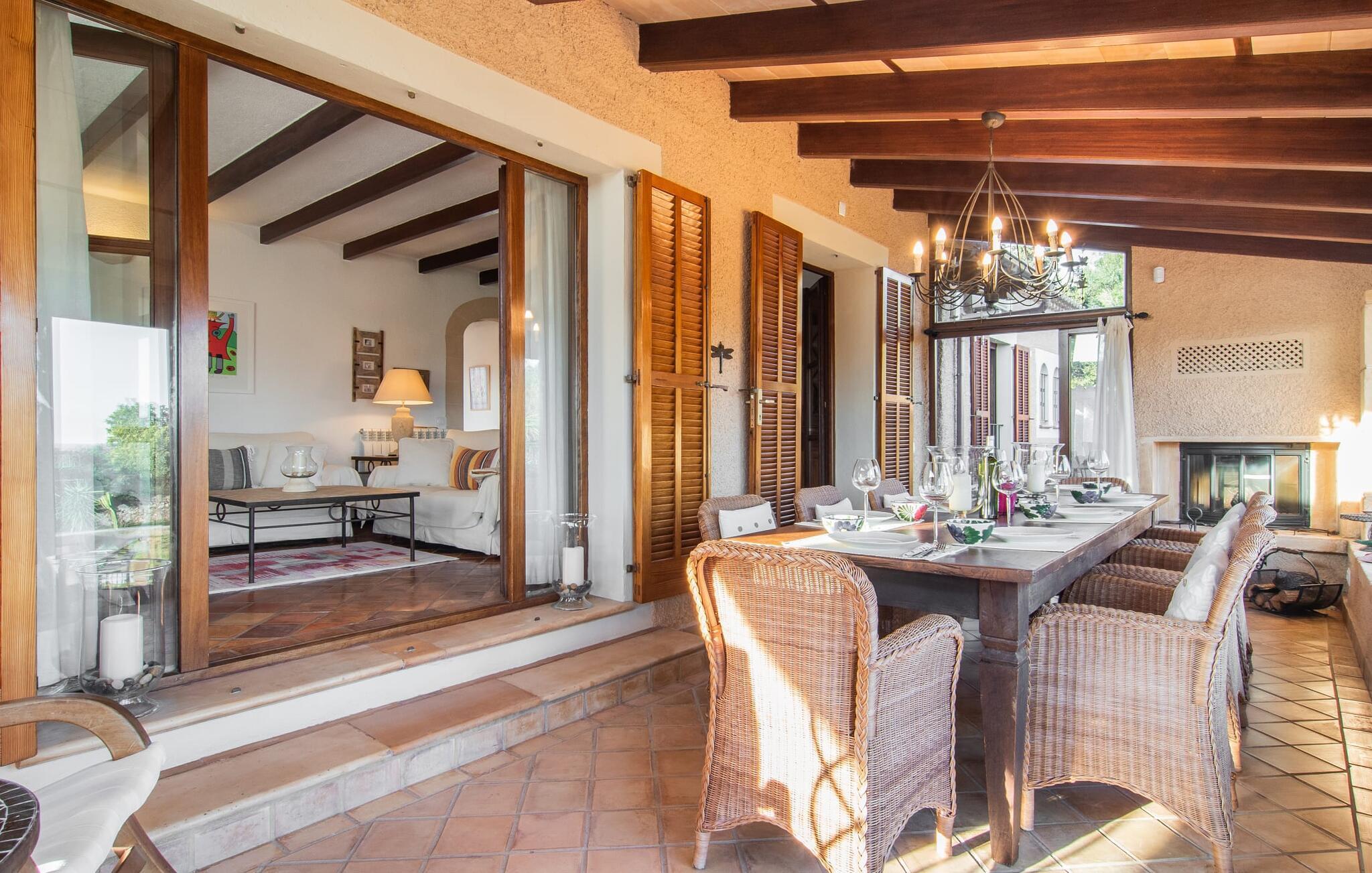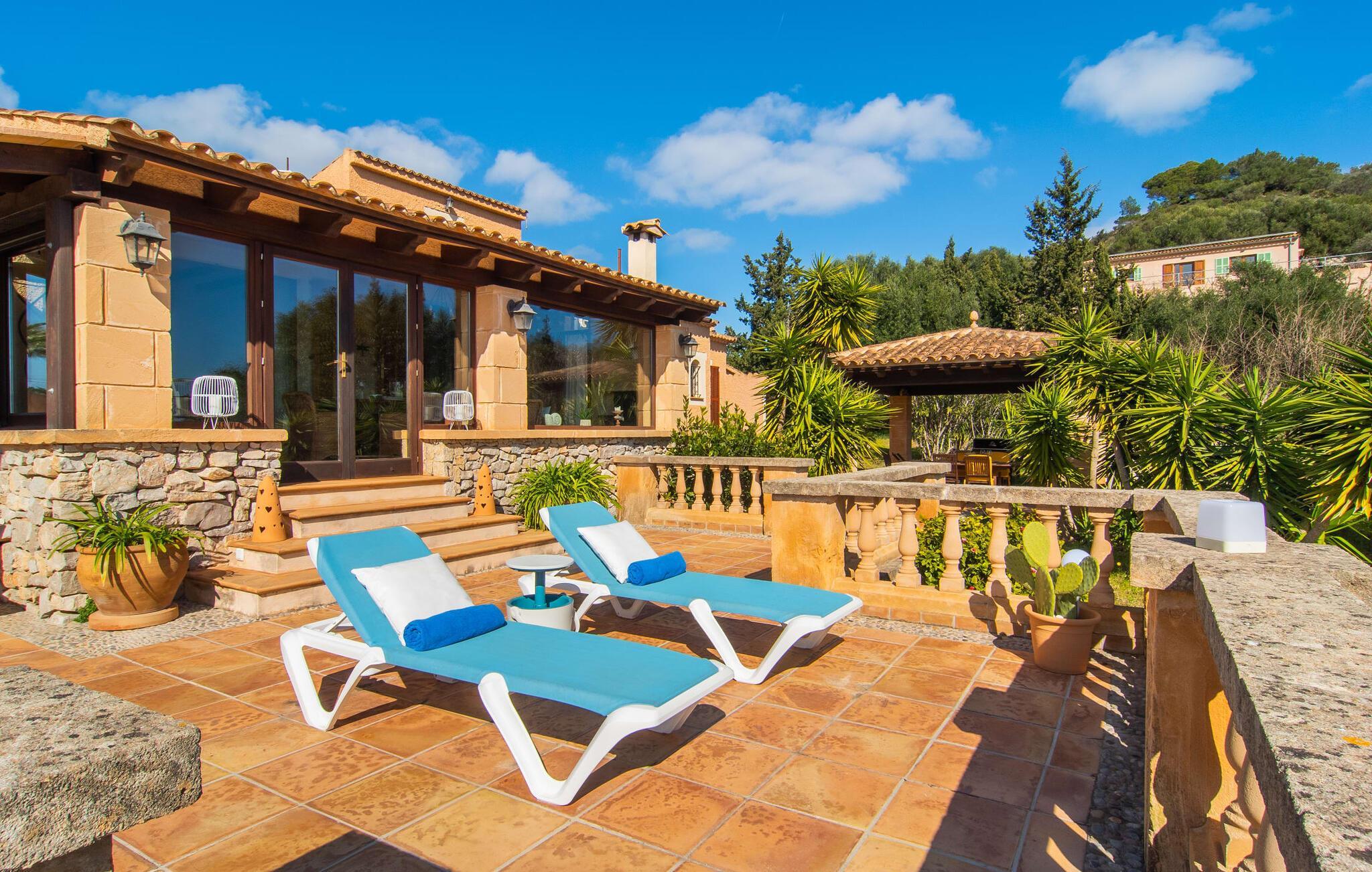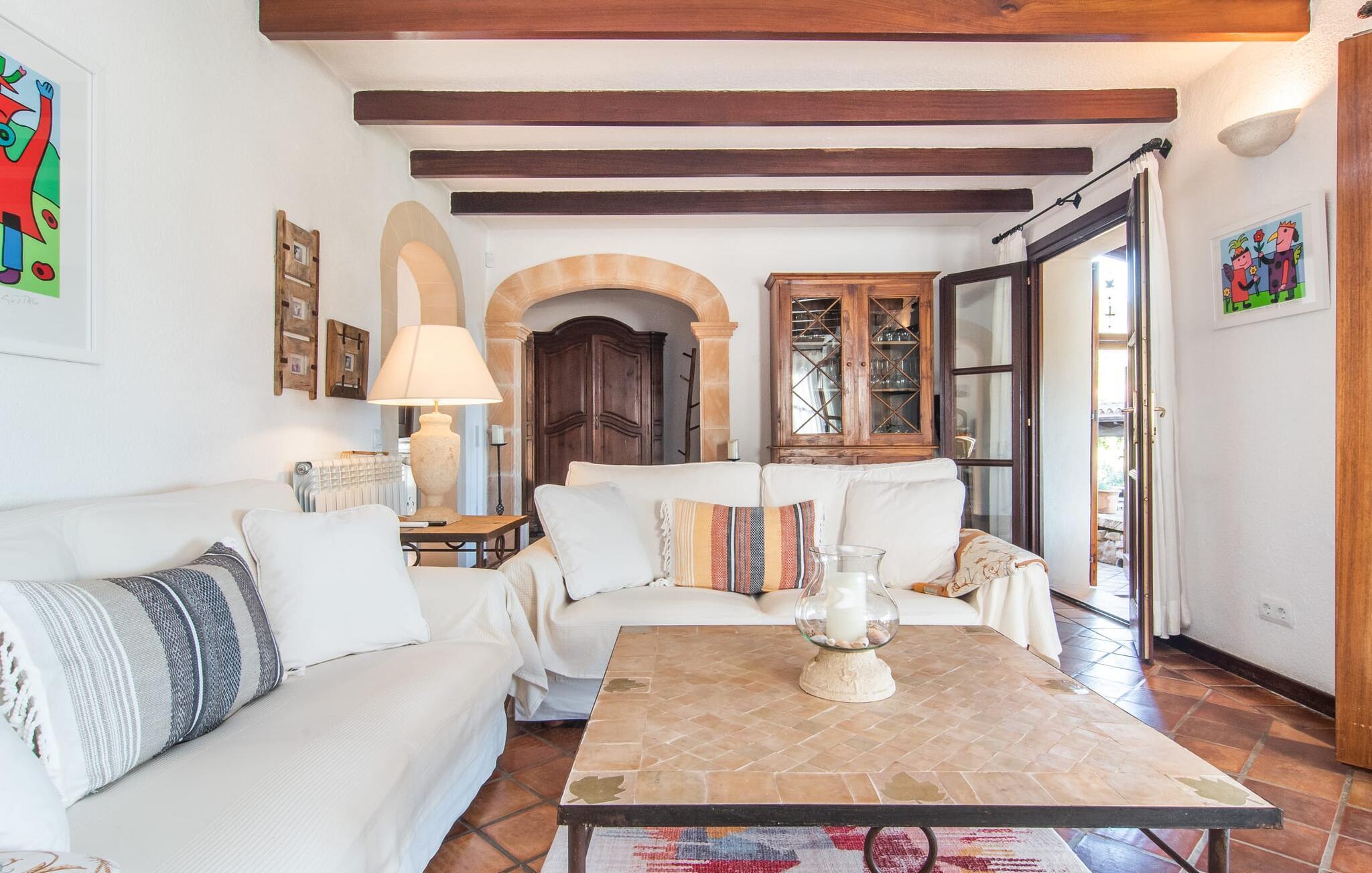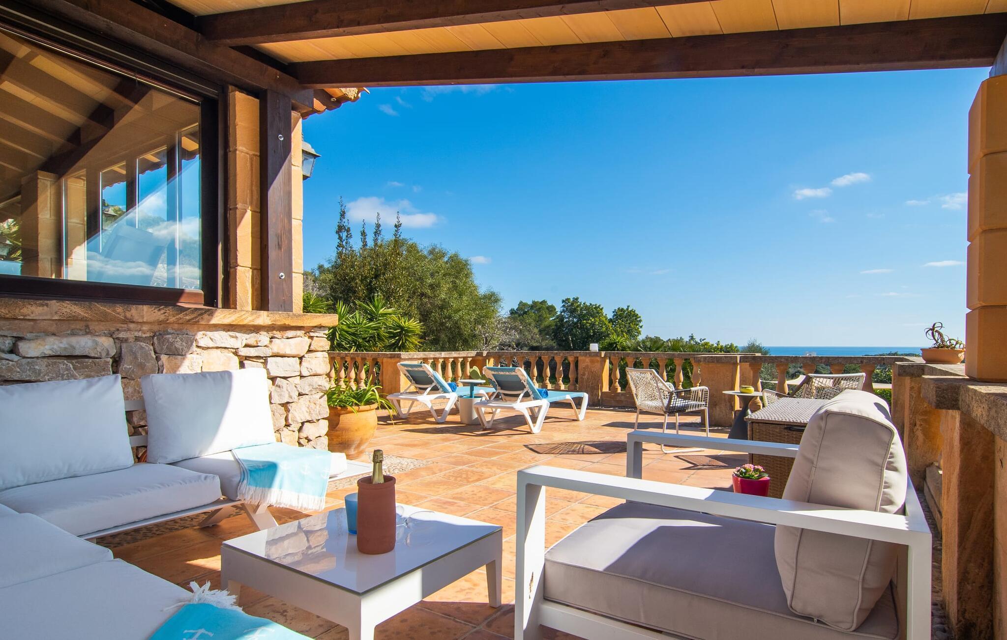 Det vidunderligt rolige feriehus "Na Nofre de Cala Ratjada" er omgivet af en rummelig have fuld af palmer, frugttræer og andre middelhavsplanter. I haveoasen vil du opdage den mosaikdækkede, klorfri pool. Den er opvarmet og kan derfor også bruges i lavsæsonen. Poolområdet har to udendørs brusere. Rundt om poolen er der liggestole i skyggen af markiser til en siesta eller den balinesiske dagseng til afslapning. Et andet højdepunkt er siddepladserne spredt ud over den spektakulære smukke have. På husets brolagte terrasser venter liggestole og et smart loungehjørne med markise. Efter en hyggelig grillaften på den overdækkede terrasse med spiseplads kan I slutte dagen af på tagterrassen med havudsigt. Der kan du nyde en uhindret panoramaudsigt over de bølgende bakker i Llevant-bjergene. Verandaen direkte ved huset byder på en anden spiseplads med en udendørs pejs. Hvis du værdsætter autentisk livsstil til din ferie på Mallorca, er dette charmerende og sofistikerede bondehus lige noget for dig. Det rustikke feriehus med moderne detaljer byder på masser af plads til op til 8 personer. Med sin opdeling i et hovedhus og en separat lejlighed kan dette store bondehus anbefales til at rejse med familien og især i flere generationer. I hovedhuset kan du nyde komforten i stuen med pejs og det separate køkken med spiseplads og smagfuld indretning. Der er fire soveværelser i alt (hvoraf det ene er et sammenhængende rum). Derudover er der to smarte badeværelser. Den separate lejlighed byder på kombineret opholds-, spise- og køkkenområde samt endnu et soveværelse og badeværelse. Der er adgang til en privat terrasse. “Na Nofre de Cala Ratjada” giver lyst til at tage på ferie til Mallorca. Vi kan ikke vente! Det idylliske bondehus "Na Nofre de Cala Ratjada" imponerer med sin opvarmede pool og tagterrasse med havudsigt med udsigt over den smukt anlagte have. Det roligt beliggende feriehus ligger på en skråning mellem Cala Ratjada og Capdepera, hvor du kan kombinere din shopping med at spise ude. Havet og de fantastiske strande er kun 8 minutter væk i bil. Dette er et Fincallorca feriehus.