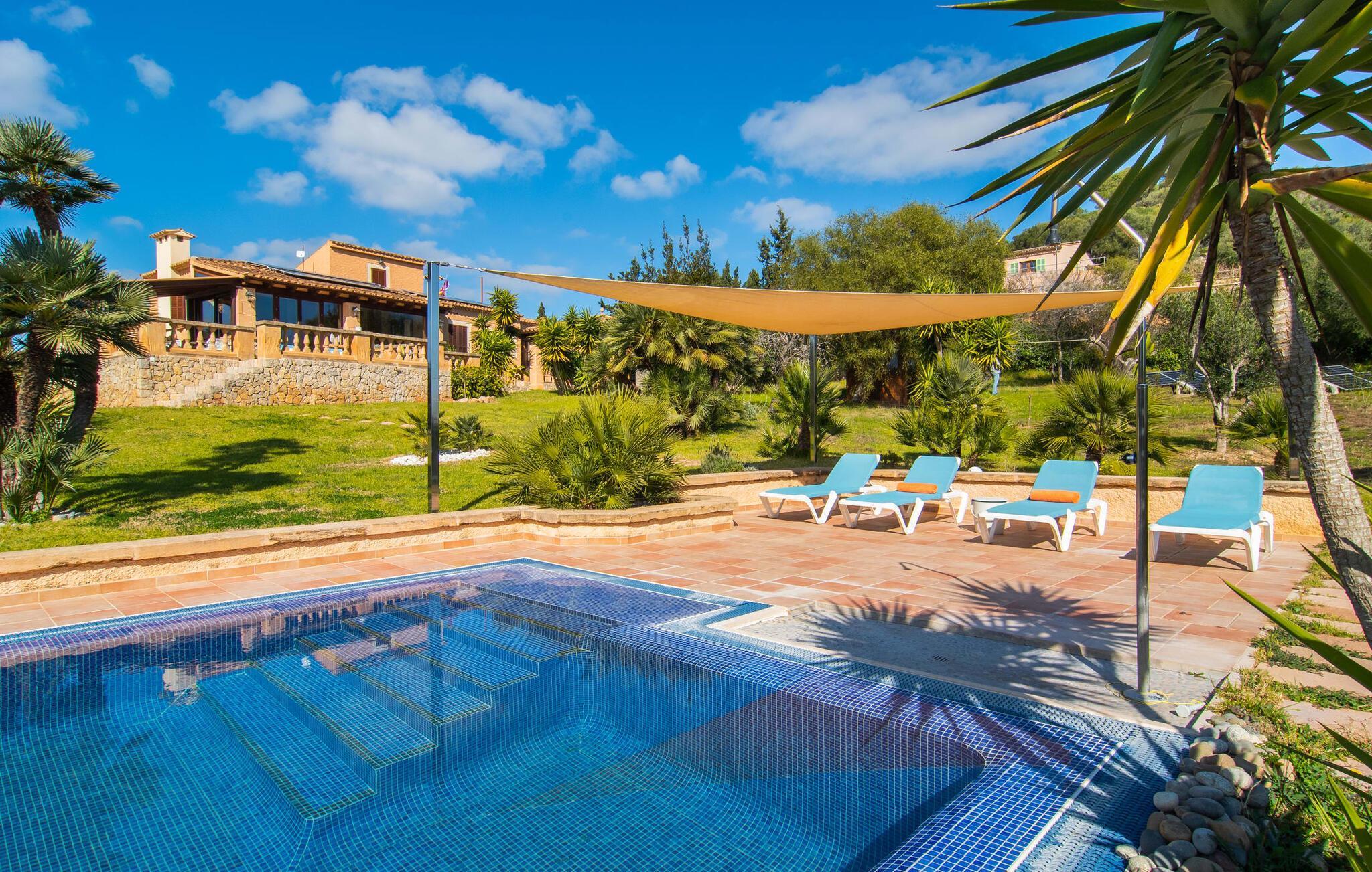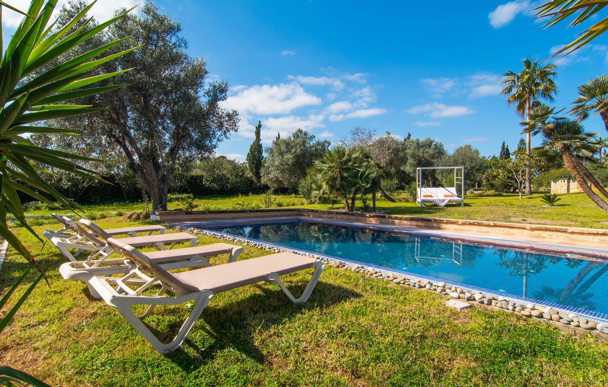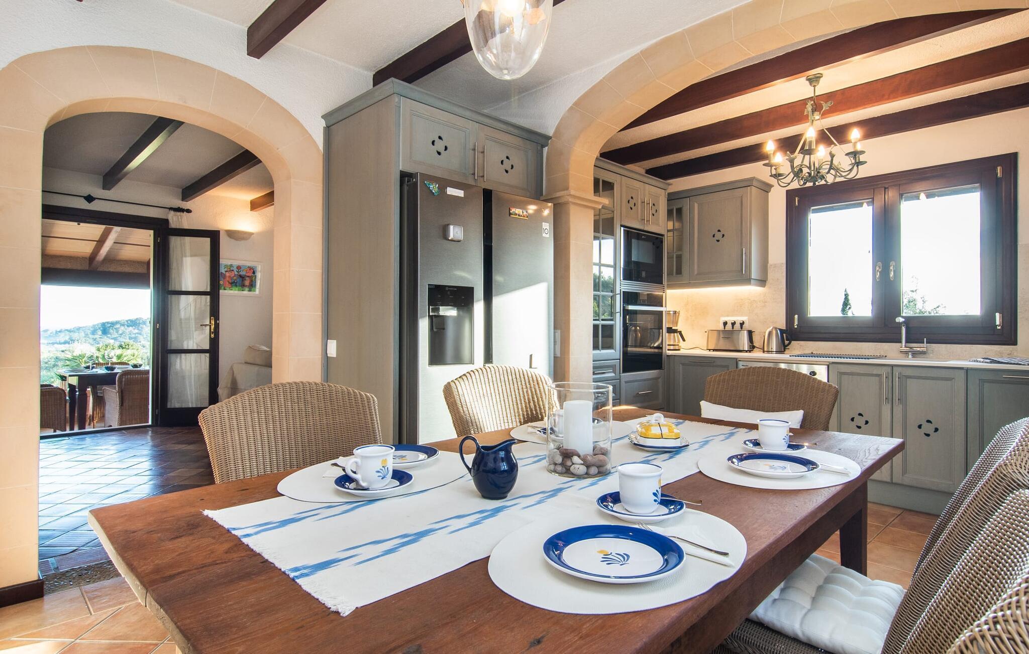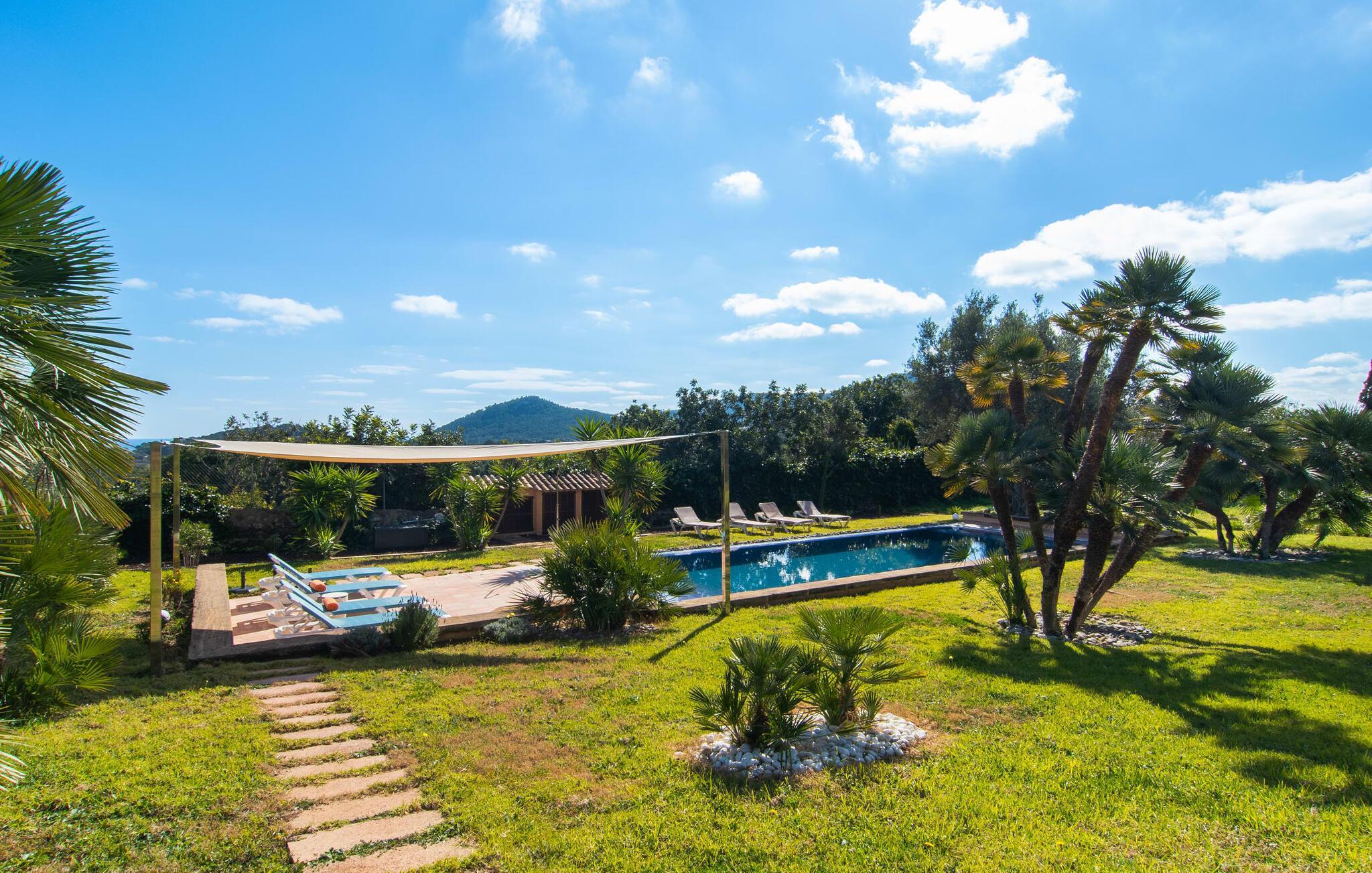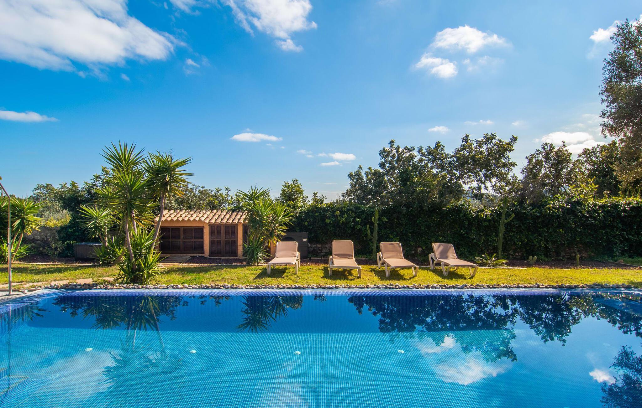 Det vidunderligt rolige feriehus "Na Nofre de Cala Ratjada" er omgivet af en rummelig have fuld af palmer, frugttræer og andre middelhavsplanter. I haveoasen vil du opdage den mosaikdækkede, klorfri pool. Den er opvarmet og kan derfor også bruges i lavsæsonen. Poolområdet har to udendørs brusere. Rundt om poolen er der liggestole i skyggen af markiser til en siesta eller den balinesiske dagseng til afslapning. Et andet højdepunkt er siddepladserne spredt ud over den spektakulære smukke have. På husets brolagte terrasser venter liggestole og et smart loungehjørne med markise. Efter en hyggelig grillaften på den overdækkede terrasse med spiseplads kan I slutte dagen af på tagterrassen med havudsigt. Der kan du nyde en uhindret panoramaudsigt over de bølgende bakker i Llevant-bjergene. Verandaen direkte ved huset byder på en anden spiseplads med en udendørs pejs. Hvis du værdsætter autentisk livsstil til din ferie på Mallorca, er dette charmerende og sofistikerede bondehus lige noget for dig. Det rustikke feriehus med moderne detaljer byder på masser af plads til op til 8 personer. Med sin opdeling i et hovedhus og en separat lejlighed kan dette store bondehus anbefales til at rejse med familien og især i flere generationer. I hovedhuset kan du nyde komforten i stuen med pejs og det separate køkken med spiseplads og smagfuld indretning. Der er fire soveværelser i alt (hvoraf det ene er et sammenhængende rum). Derudover er der to smarte badeværelser. Den separate lejlighed byder på kombineret opholds-, spise- og køkkenområde samt endnu et soveværelse og badeværelse. Der er adgang til en privat terrasse. “Na Nofre de Cala Ratjada” giver lyst til at tage på ferie til Mallorca. Vi kan ikke vente! Det idylliske bondehus "Na Nofre de Cala Ratjada" imponerer med sin opvarmede pool og tagterrasse med havudsigt med udsigt over den smukt anlagte have. Det roligt beliggende feriehus ligger på en skråning mellem Cala Ratjada og Capdepera, hvor du kan kombinere din shopping med at spise ude. Havet og de fantastiske strande er kun 8 minutter væk i bil. Dette er et Fincallorca feriehus.