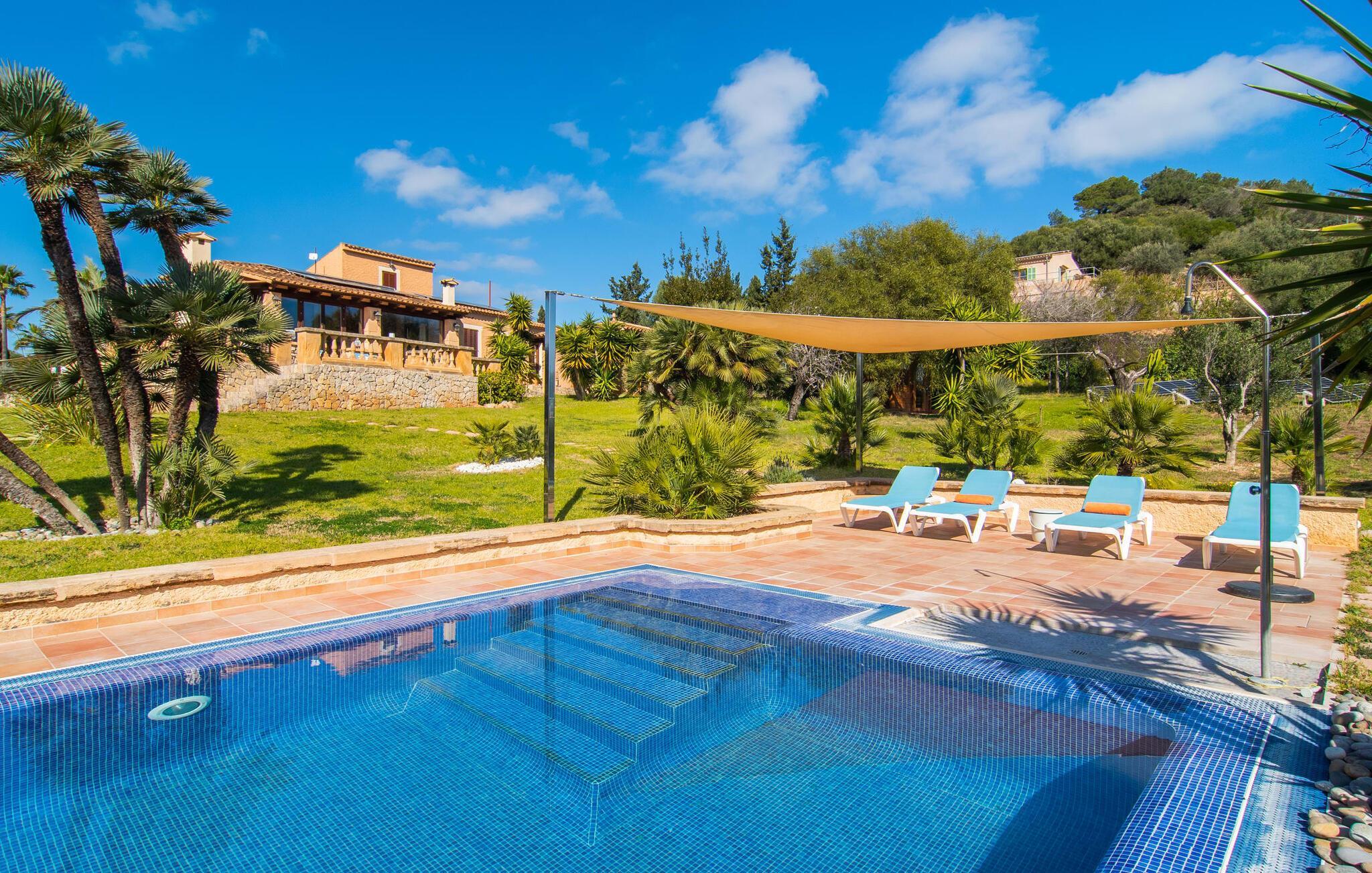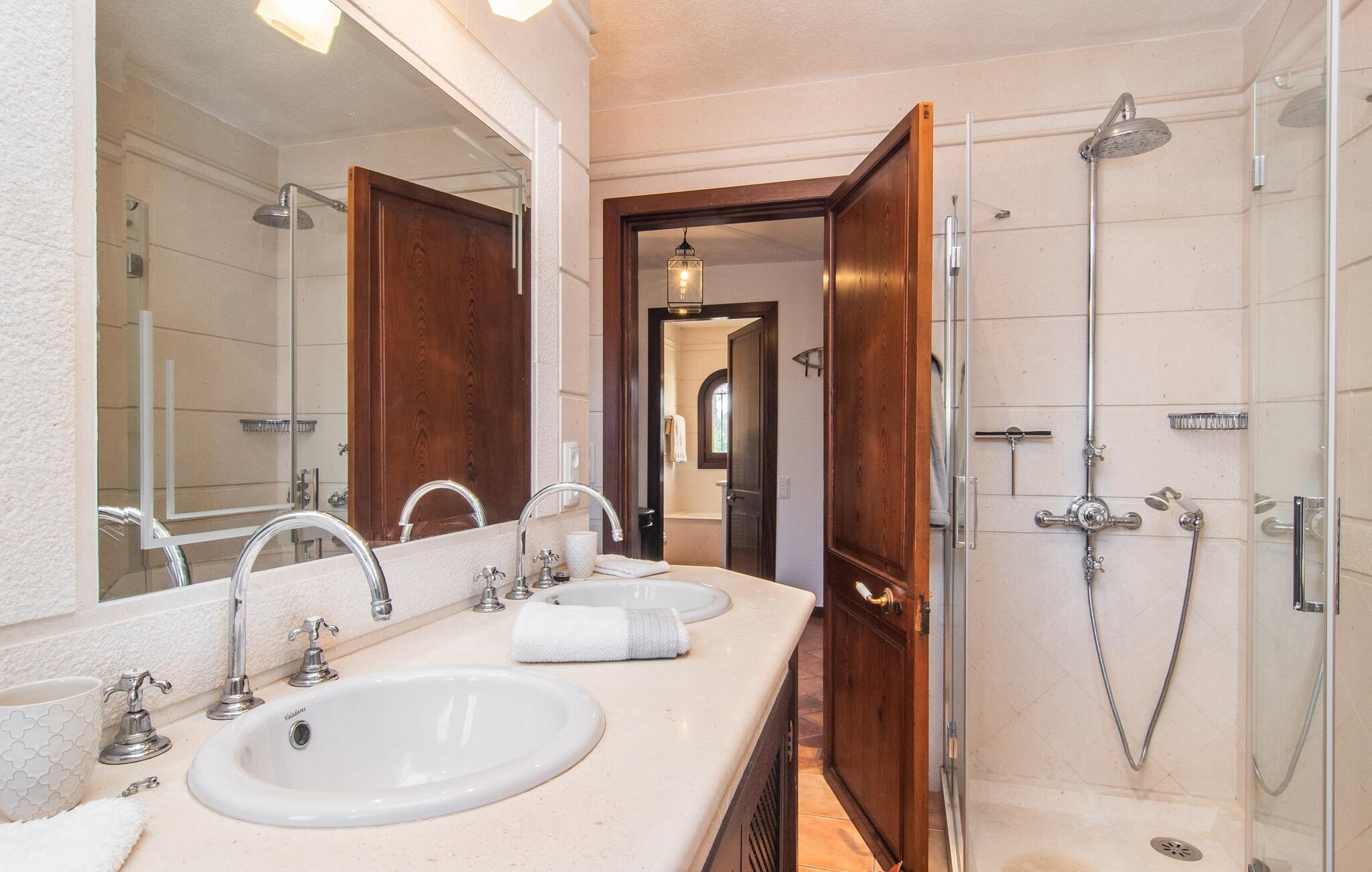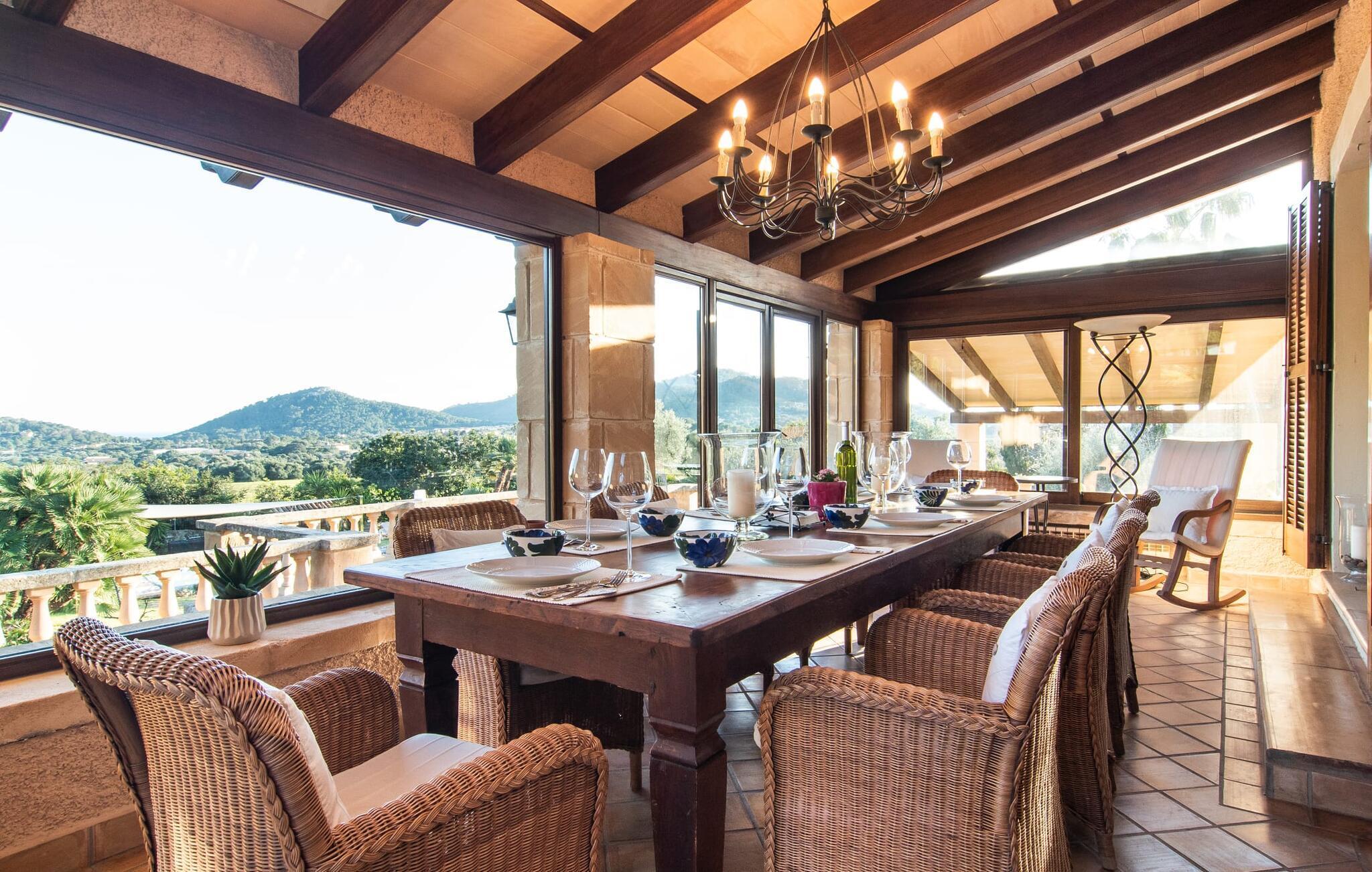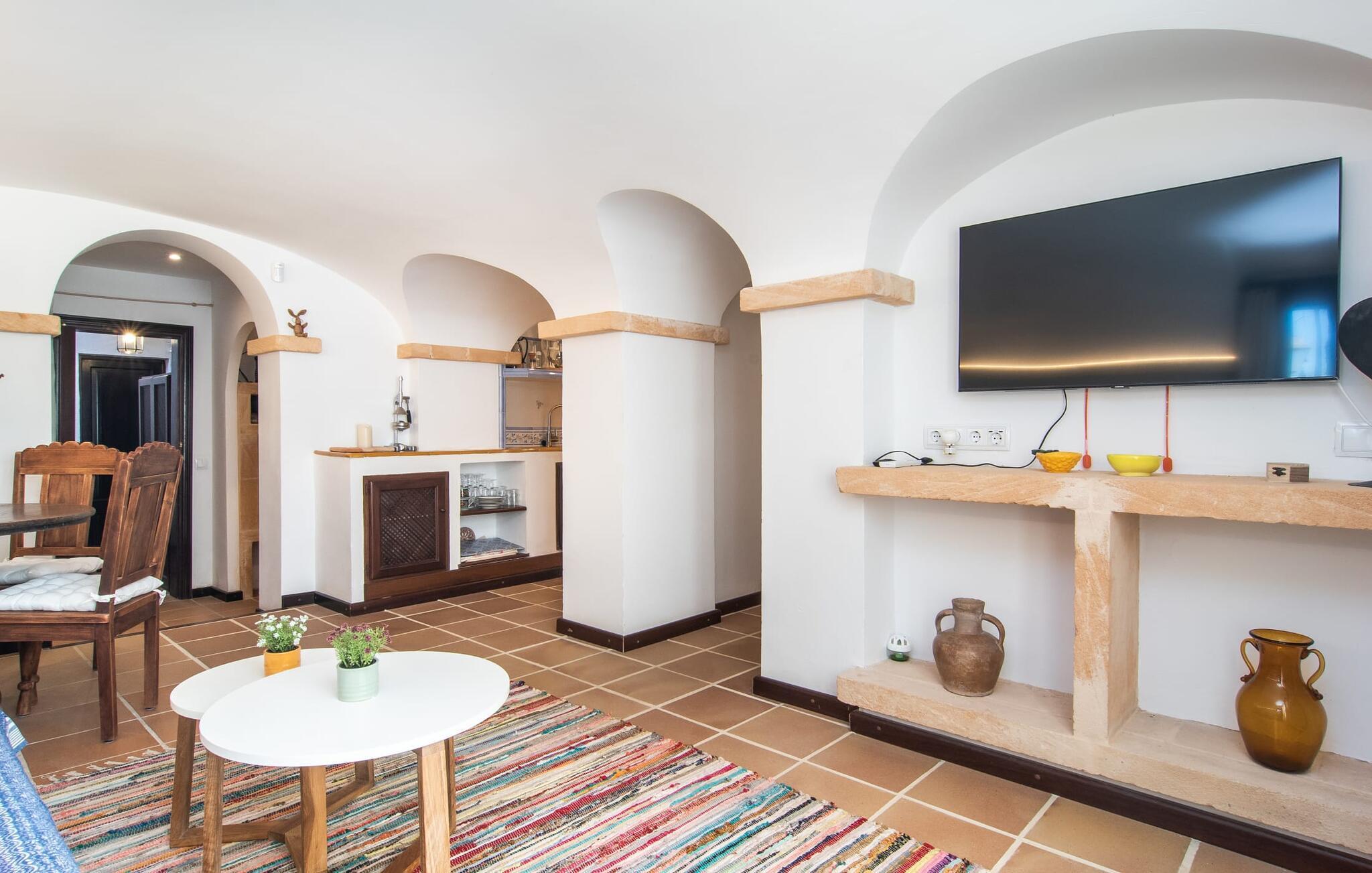 Det vidunderligt rolige feriehus "Na Nofre de Cala Ratjada" er omgivet af en rummelig have fuld af palmer, frugttræer og andre middelhavsplanter. I haveoasen vil du opdage den mosaikdækkede, klorfri pool. Den er opvarmet og kan derfor også bruges i lavsæsonen. Poolområdet har to udendørs brusere. Rundt om poolen er der liggestole i skyggen af markiser til en siesta eller den balinesiske dagseng til afslapning. Et andet højdepunkt er siddepladserne spredt ud over den spektakulære smukke have. På husets brolagte terrasser venter liggestole og et smart loungehjørne med markise. Efter en hyggelig grillaften på den overdækkede terrasse med spiseplads kan I slutte dagen af på tagterrassen med havudsigt. Der kan du nyde en uhindret panoramaudsigt over de bølgende bakker i Llevant-bjergene. Verandaen direkte ved huset byder på en anden spiseplads med en udendørs pejs. Hvis du værdsætter autentisk livsstil til din ferie på Mallorca, er dette charmerende og sofistikerede bondehus lige noget for dig. Det rustikke feriehus med moderne detaljer byder på masser af plads til op til 8 personer. Med sin opdeling i et hovedhus og en separat lejlighed kan dette store bondehus anbefales til at rejse med familien og især i flere generationer. I hovedhuset kan du nyde komforten i stuen med pejs og det separate køkken med spiseplads og smagfuld indretning. Der er fire soveværelser i alt (hvoraf det ene er et sammenhængende rum). Derudover er der to smarte badeværelser. Den separate lejlighed byder på kombineret opholds-, spise- og køkkenområde samt endnu et soveværelse og badeværelse. Der er adgang til en privat terrasse. “Na Nofre de Cala Ratjada” giver lyst til at tage på ferie til Mallorca. Vi kan ikke vente! Det idylliske bondehus "Na Nofre de Cala Ratjada" imponerer med sin opvarmede pool og tagterrasse med havudsigt med udsigt over den smukt anlagte have. Det roligt beliggende feriehus ligger på en skråning mellem Cala Ratjada og Capdepera, hvor du kan kombinere din shopping med at spise ude. Havet og de fantastiske strande er kun 8 minutter væk i bil. Dette er et Fincallorca feriehus.
