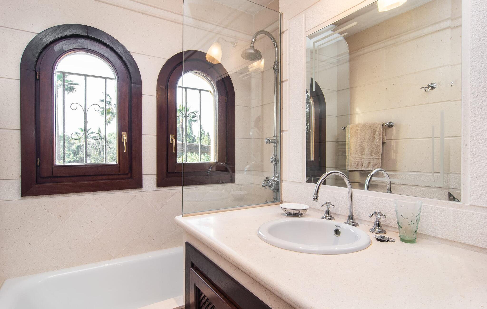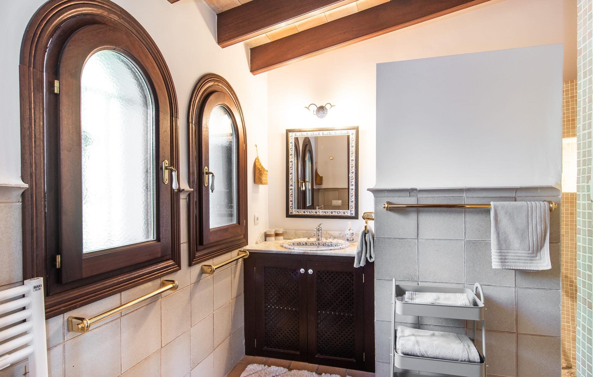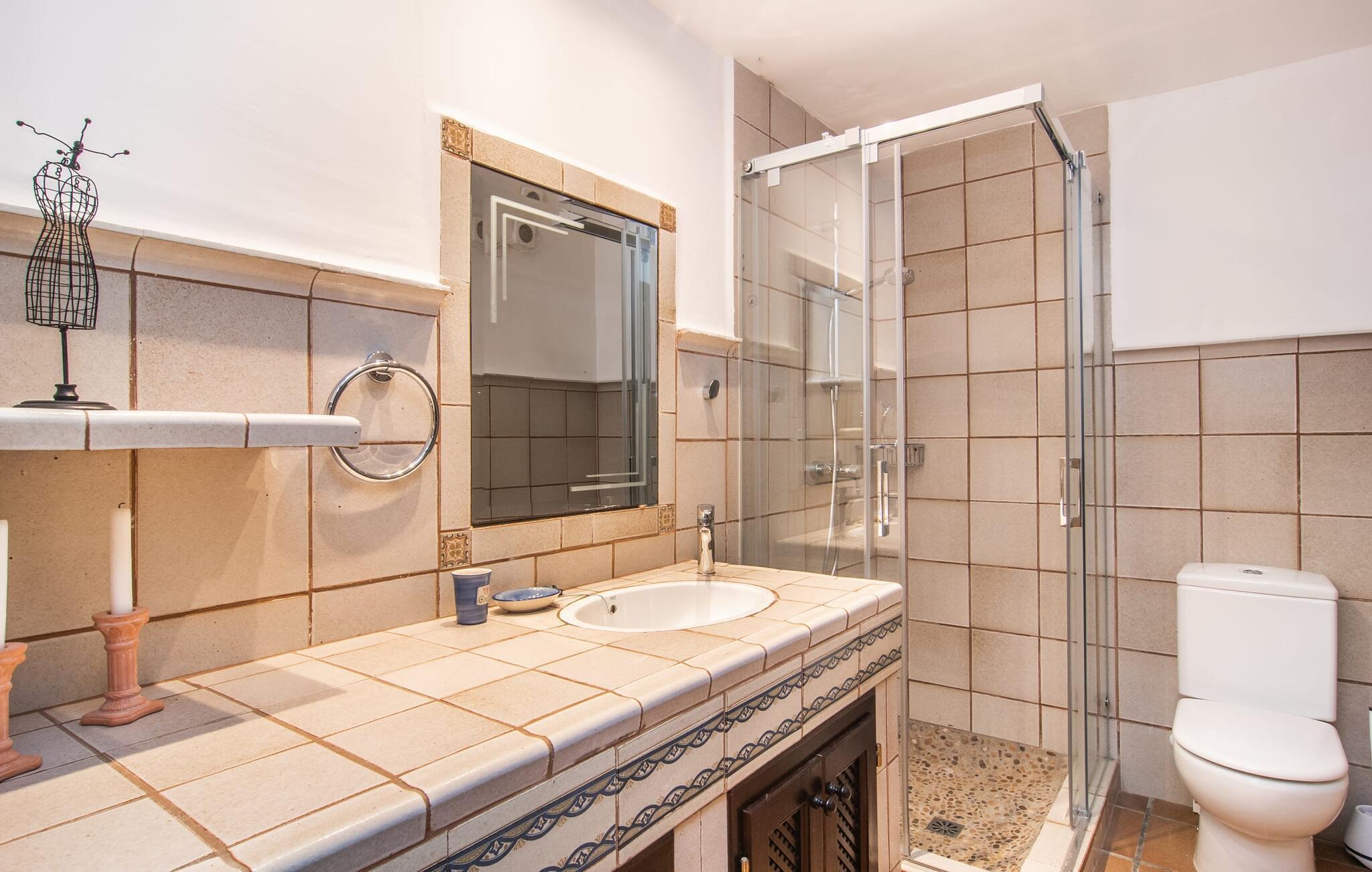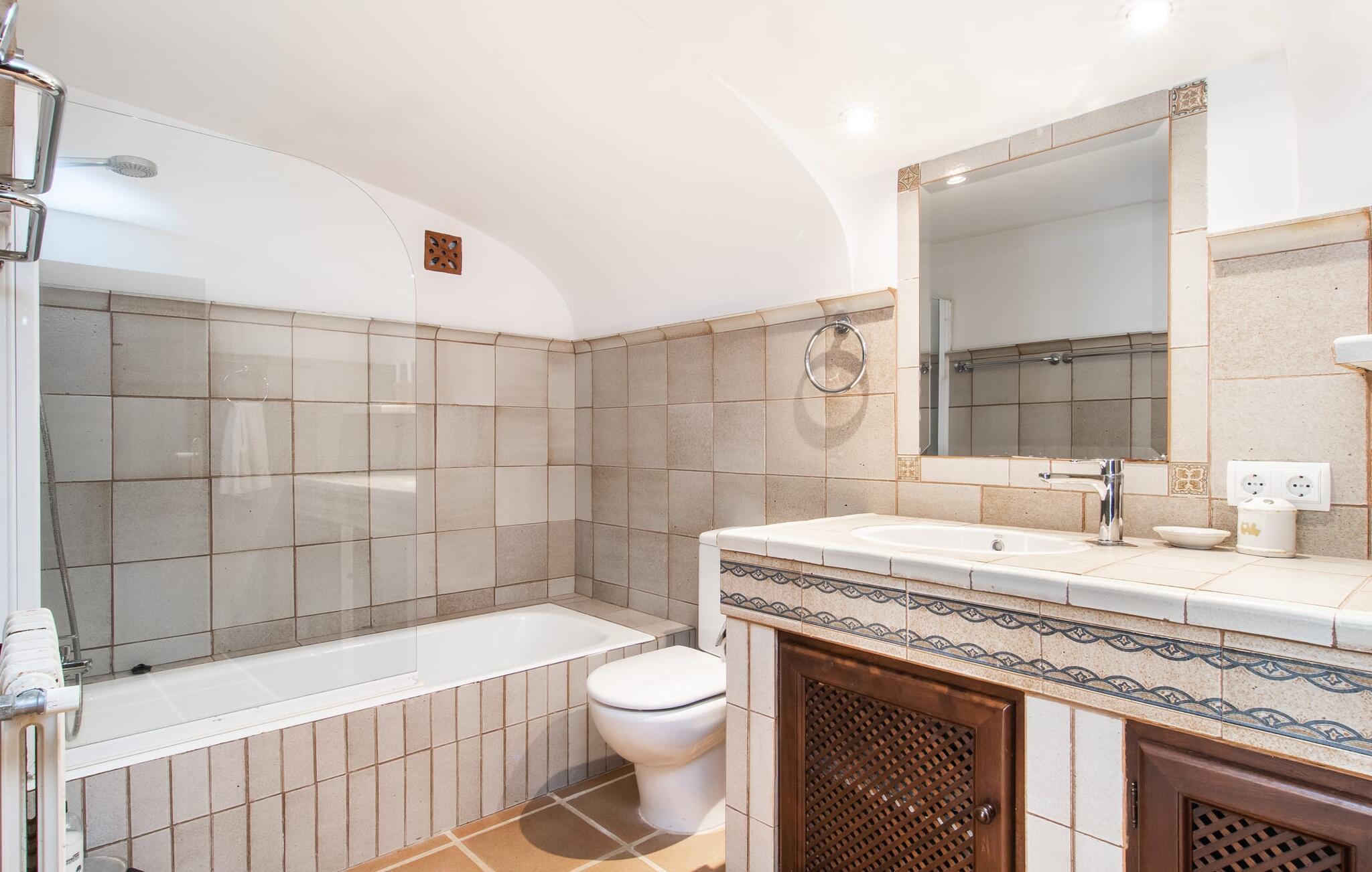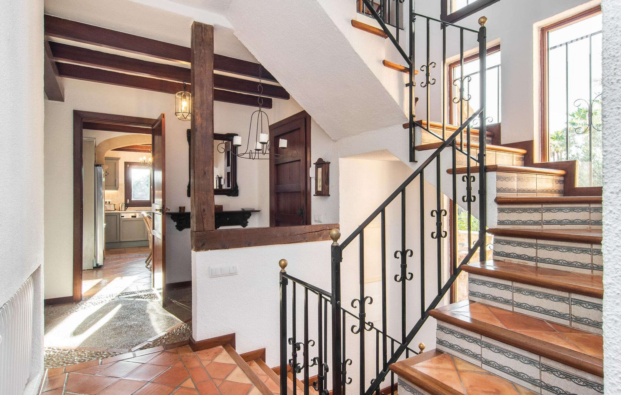 Det vidunderligt rolige feriehus "Na Nofre de Cala Ratjada" er omgivet af en rummelig have fuld af palmer, frugttræer og andre middelhavsplanter. I haveoasen vil du opdage den mosaikdækkede, klorfri pool. Den er opvarmet og kan derfor også bruges i lavsæsonen. Poolområdet har to udendørs brusere. Rundt om poolen er der liggestole i skyggen af markiser til en siesta eller den balinesiske dagseng til afslapning. Et andet højdepunkt er siddepladserne spredt ud over den spektakulære smukke have. På husets brolagte terrasser venter liggestole og et smart loungehjørne med markise. Efter en hyggelig grillaften på den overdækkede terrasse med spiseplads kan I slutte dagen af på tagterrassen med havudsigt. Der kan du nyde en uhindret panoramaudsigt over de bølgende bakker i Llevant-bjergene. Verandaen direkte ved huset byder på en anden spiseplads med en udendørs pejs. Hvis du værdsætter autentisk livsstil til din ferie på Mallorca, er dette charmerende og sofistikerede bondehus lige noget for dig. Det rustikke feriehus med moderne detaljer byder på masser af plads til op til 8 personer. Med sin opdeling i et hovedhus og en separat lejlighed kan dette store bondehus anbefales til at rejse med familien og især i flere generationer. I hovedhuset kan du nyde komforten i stuen med pejs og det separate køkken med spiseplads og smagfuld indretning. Der er fire soveværelser i alt (hvoraf det ene er et sammenhængende rum). Derudover er der to smarte badeværelser. Den separate lejlighed byder på kombineret opholds-, spise- og køkkenområde samt endnu et soveværelse og badeværelse. Der er adgang til en privat terrasse. “Na Nofre de Cala Ratjada” giver lyst til at tage på ferie til Mallorca. Vi kan ikke vente! Det idylliske bondehus "Na Nofre de Cala Ratjada" imponerer med sin opvarmede pool og tagterrasse med havudsigt med udsigt over den smukt anlagte have. Det roligt beliggende feriehus ligger på en skråning mellem Cala Ratjada og Capdepera, hvor du kan kombinere din shopping med at spise ude. Havet og de fantastiske strande er kun 8 minutter væk i bil. Dette er et Fincallorca feriehus.
