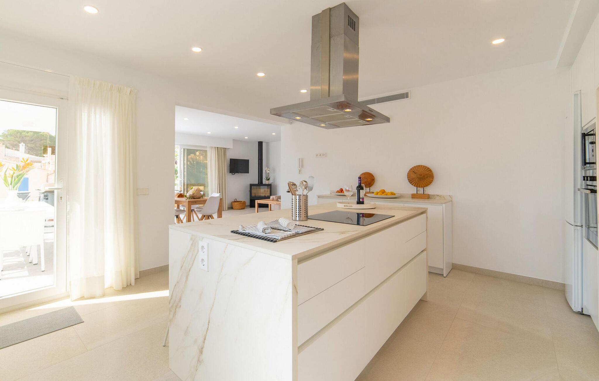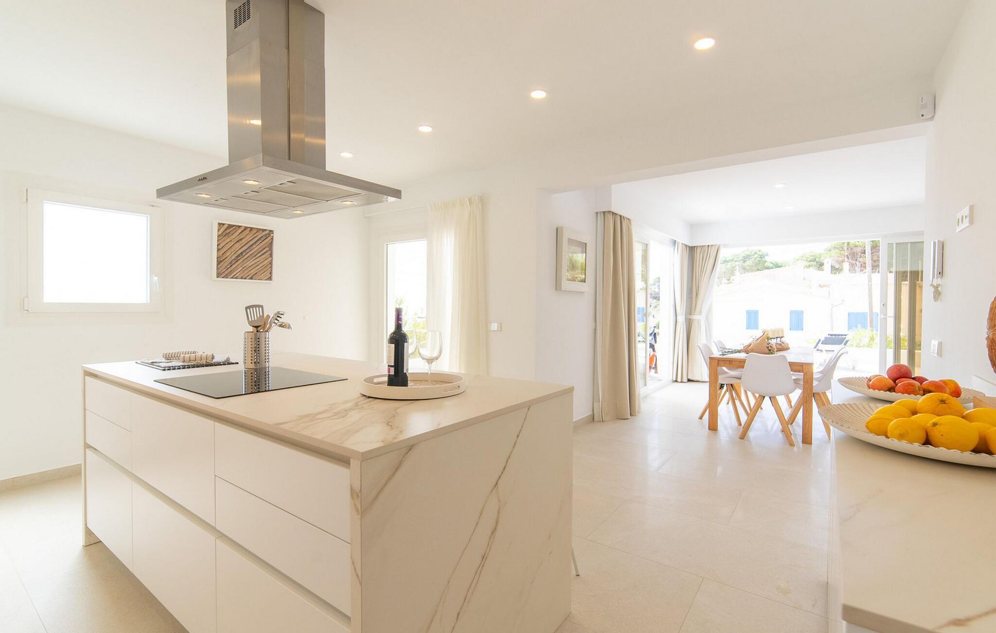 Villaen "Na Pilena" ligger i en ganske enkelt betagende beliggenhed midt i boligområdet Sa Pedruscada. bugten af samme navn, Cala Pedruscada, ligger kun et stenkast væk. Den centrale beliggenhed i forhold til byen og promenaden er det, der giver denne spektakulære villa sin særlige charme. Beliggenheden er den helt rigtige for folk, der ønsker at nyde god gangbar infrastruktur med et urbant præg, men uden at skulle bo midt i travlheden. Takket være villaens beliggenhed på Cala Pedruscada og promenaden, der løber forbi stranden i Son Moll til havnen i Cala Ratjada, kan du nyde både den fantastiske beliggenhed ved havet og den nemme adgang til fods til de omkringliggende strande og byer og andre mål. Der sker så meget i den travle naboby Cala Ratjada: shoppe, slentre på promenaden, spise ude og endda klubber. Dette er et Fincallorca feriehus. Den fuldstændig renoverede villa, præsenteret i Ibiza-stil, afspejler den naturlige maritime karakter af dette rolige sted. Husets design, der består af hvidt, glat pudset murværk kombineret med knaldblå skodder, passer perfekt til de små naboejendomme, hvilket afspejler denne charmerende forstads autentiske karakter. Dette sommerretræte ligger på en blind vej og ligger direkte ud til havet, ligesom den overdækkede terrasse på forsiden af ejendommen. Trapper fører dig til strandpromenaden, som igen fører til Cala Ratjada. På denne overdækkede terrasse finder du et chill-out opholdsområde med kurvemøbler. Vinduer fra gulv til loft åbnes for at afsløre villaens lyse, lyse interiør, som er indrettet med hvide møbler og lyse, sandfarvede gulve. Et langt hvidt sofabord står foran den rummelige opholdsstue, som er udstyret med et beige opholdsområde og et moderne LCD-fladskærms-tv og udstråler en særdeles indbydende atmosfære. Det strålende lyse køkkenområde er lige så indbydende. De stilfulde hvide indbygningsenheder suppleres af en køkkenø med marmorbordplade. Køkkenøen og dens moderne glaskeramiske kogeplade udgør fortsat en bar og et opholdsområde - så I kan tilberede måltider sammen i komfort og bekvemmelighed; Du bør ikke gå glip af dette, især på ferie. Indbyggede lamper i loftet fylder rummene med varmt, behageligt lys. De tre rummelige soveværelser er hver udstyret med en hvid dobbeltseng (hvis der er 4 personer besat, er der et dobbeltværelse på første sal). Subtile vægdekorationer og indbyggede skabe sikrer en behagelig følelse af velvære, når du falder i søvn til lyden af små bølger på stranden og åbner øjnene om morgenen for den samme behagelige dekoration. Den stilfulde villa "Na Pilena" er beliggende i en utrolig malerisk beliggenhed i den rolige boligforstad Sa Pedruscada, kun få skridt fra havet. Den rolige landsby ligger kun 2 km fra Cala Ratjada, hvis havn kan nås via promenaden, der løber forbi huset. Der er et vidunderligt marked der hver lørdag. Huset ligger direkte ved kysten, den smukke strand Platja de Son Moll er inden for gåafstand. Bemærk venligst, at denne ejendom ikke accepterer ungdomsgrupper eller polterabender. En ungdomsgruppe på denne ejendom består af personer på 25 år eller derunder. Book ikke denne ejendom, hvis du er en ungdomsgruppe eller polterabend, da din reservation vil blive afvist, når den er booket, hvilket også kan være tilfældet ved ankomst til ejendommen eller under dit ophold, og du vil ikke modtage en refusion