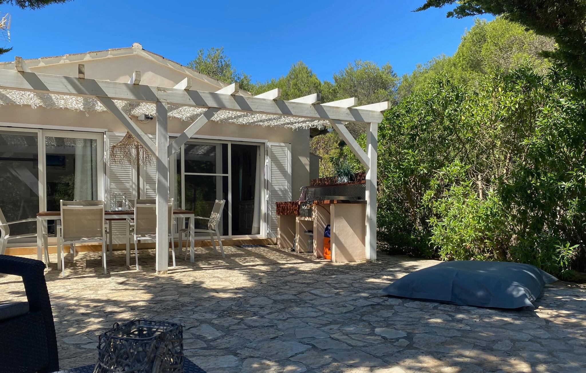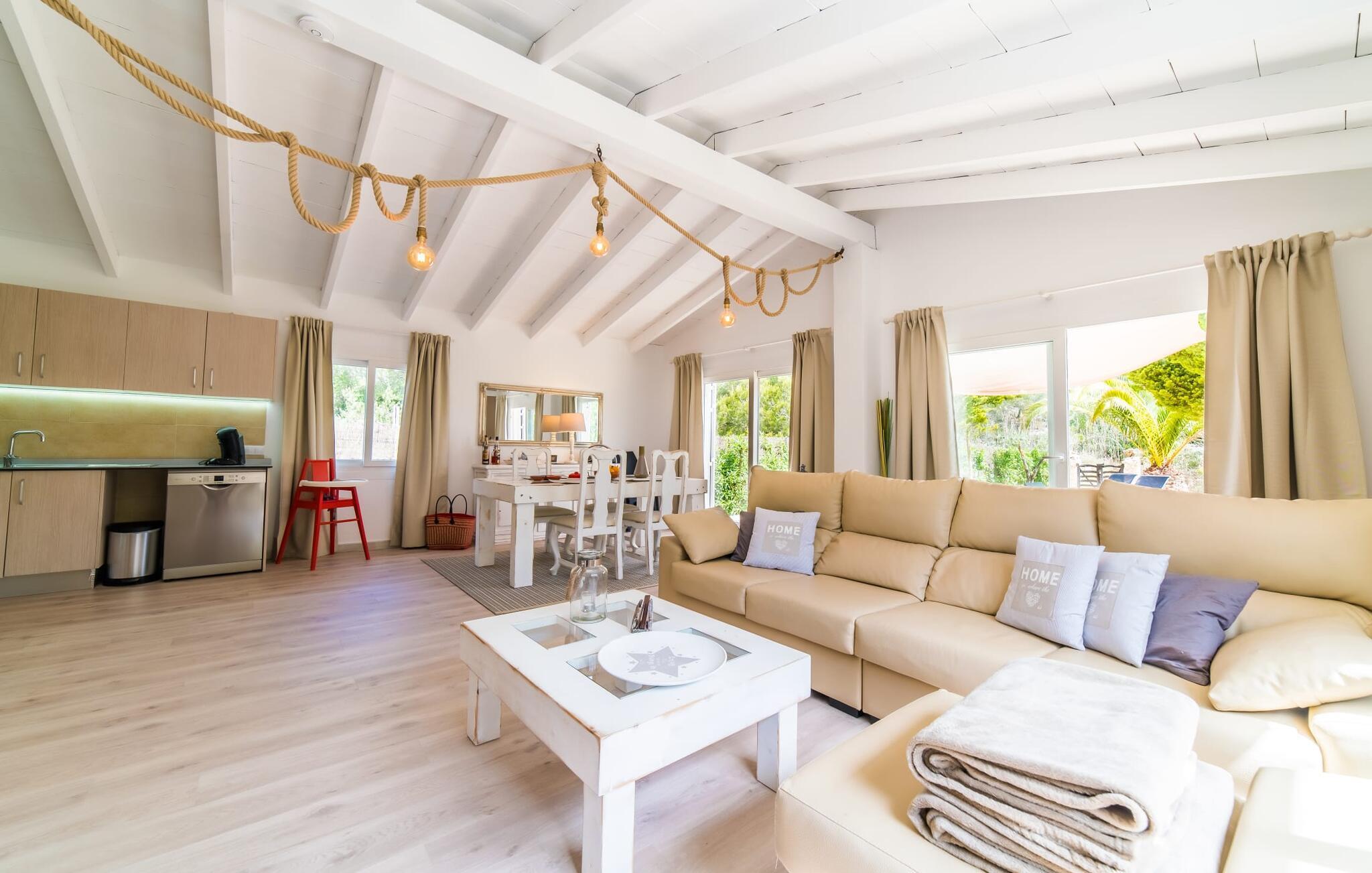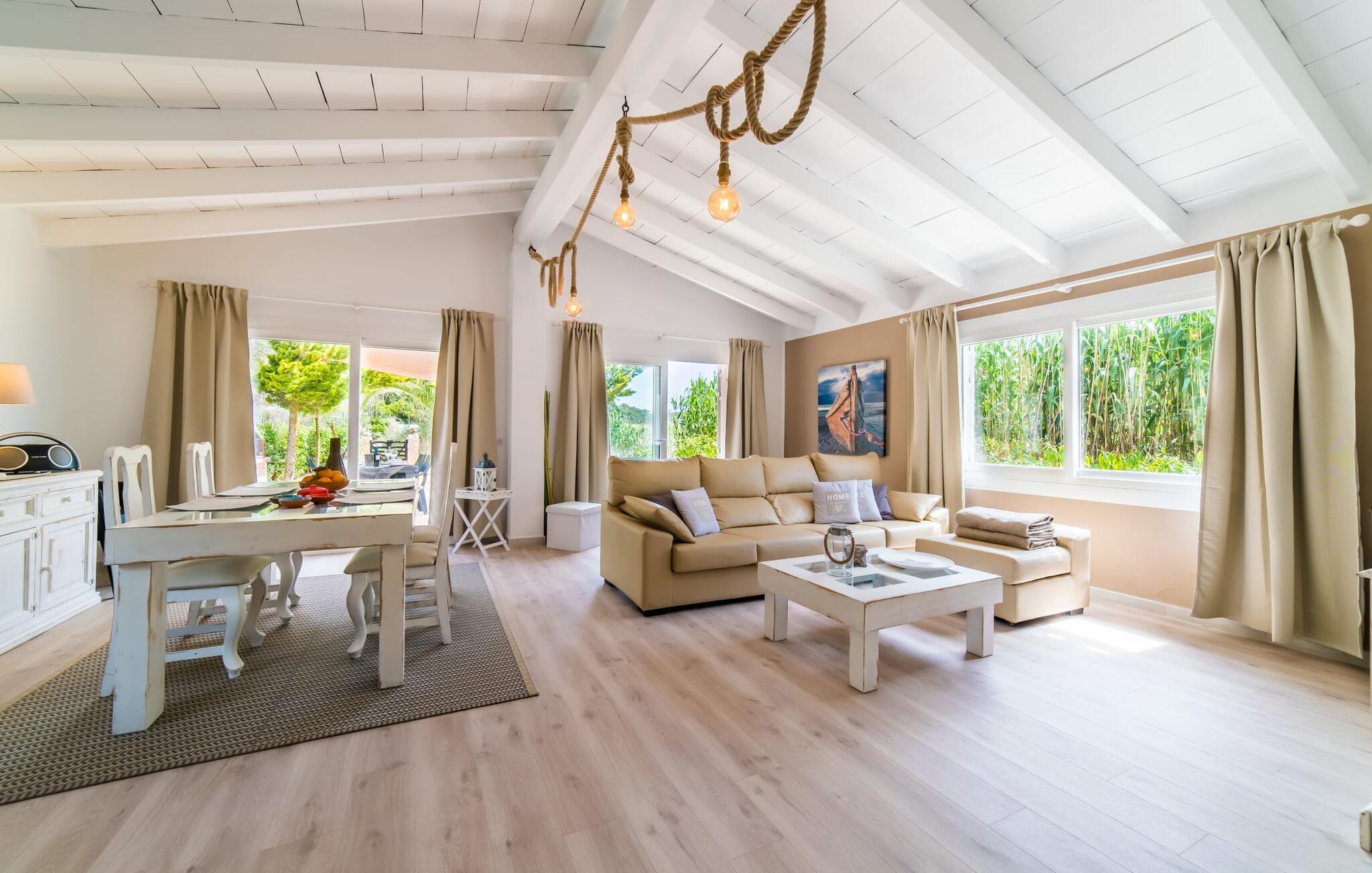 For at finde noget så specielt på Mallorcas frugtbare jord, skal du have næsen af en trøffelgris: Denne ejendom, designet til 4 personer og afslappet samvær, er værd at opdage (og booke). Alle indikatorer peger på strand, sol og hav. Din pool er havet, din udvidede terrasse er drømmebugten i s'Amarador; Du behøver ikke mere end en flaske vin og glas for at tilbringe en romantisk aften der, de andre strandgæster er jo allerede gået hjem. Havet giver musikken gratis, månen og stjernerne giver det bløde lys. Men terrassen, der begynder bag loungens glasdøre, er også et idyllisk sted, helt omgivet af grønne områder med privat udsigt til det lille vandløb i nærheden. Bordet ved den gule grill vil helt sikkert blive dækket af og til og i det flettede siddeområde kan du trygt nyde en hyggelig kaffe og læse god læsning. De frøgrønne liggestole kan også tages med til stranden, da den kun er et minut væk. Foran indgangen er der en ekstra terrasse, der kan bruges til bil, spil mv. Selvom det ligger fjernt, er du ikke afskåret fra resten af verden. Den lille private vej, der løber ud for "Natura Beach", tager dig hurtigt tilbage til et mere trafikeret område. For øvrigt: Selvom den ovenfor nævnte å kommer fra det indre af øen, fører havet her saltvand ind i den. Det betyder, at myg ikke formerer sig. På grund af strandens beliggenhed er det modsatte tilfældet: Der er næsten altid en brise fra havet. Dette er et rigtigt pluspunkt sammenlignet med mange villaer beliggende i det indre af øen. Din rundtur i huset er hurtig, og du behøver ikke et kompas. To soveværelser, stue med åbent, moderne køkken, brusebad - det er alt. Men kigger man nærmere efter, vil man se, at en perle er gemt og pudset op: Gamle møbler er blevet omarbejdet, og de (ønskede) slidtegn er en del af indretningsstilen. Alt blev malet i lys hvid for at understrege den maritime karakter endnu mere. At gå barfodet på det nylagte gulv er yderst behageligt. Det store plastikvindue, hvorigennem sivene og de grønne grene bølger til dig, er termoruder for at holde varmen inde og kan mørklægges ved hjælp af rulleskodder. Bruseren er omfattende flisebelagt. Omhyggeligt udvalgte billeder på væggene og den ekstraordinære lysinstallation i loungen bringer følelsen af havet indenfor, så du føler, at du er på et skib for anker. Huset ser ud til at være orienteret mod solen: elektricitet og varmt vand genereres via paneler på taget - bæredygtighed og miljøvenlighed er topprioritet her! Enhver, der slår deres telt op ved "Natura Beach", skal elske stranden og naturen. Du bor trods alt i Parc natural de Mondragó ved havet, som du bedst kan udforske med vandrestøvler eller på cykel. Fantastiske stier starter lige uden for døren: En kyststi fører dig fra s'Amarador rundt om Cap Punta de ses Gatoves til den lille klippebugt Caló d'en Perdiu og videre til Cape es Blanquer. Det bredere område med saltsletter, kaktushaver, fjorde og den smukke gamle bydel Santanyi er også mere værd end en tur. Og havnen i Cala Figuera, som kunne være filmmateriale, nås bedst til fods; Det er et dejligt sted at tilbringe eftermiddagen med en kop kaffe og vente på, at fiskerne kommer med deres daglige fangst. Bagefter kan du måske tilbringe aftenen med en fantastisk udsigt i Pura Vida restaurant - en ren fornøjelse på mere end én måde! Denne unikke villa ligger direkte på en af de smukkeste sandstrande Mallorca har at byde på: drømmebugten s'Amarador. Stranden er et sandt paradis, og indtil videre er den fri for anlægsarbejde. Den enestående beliggenhed gør ejendommen så unik. Indkøbs- og slentremuligheder kan hurtigt findes i bil i smukke Santanyi, hvor du kan shoppe på det ugentlige marked onsdag og søndag. Dette er et Fincallorca feriehus.