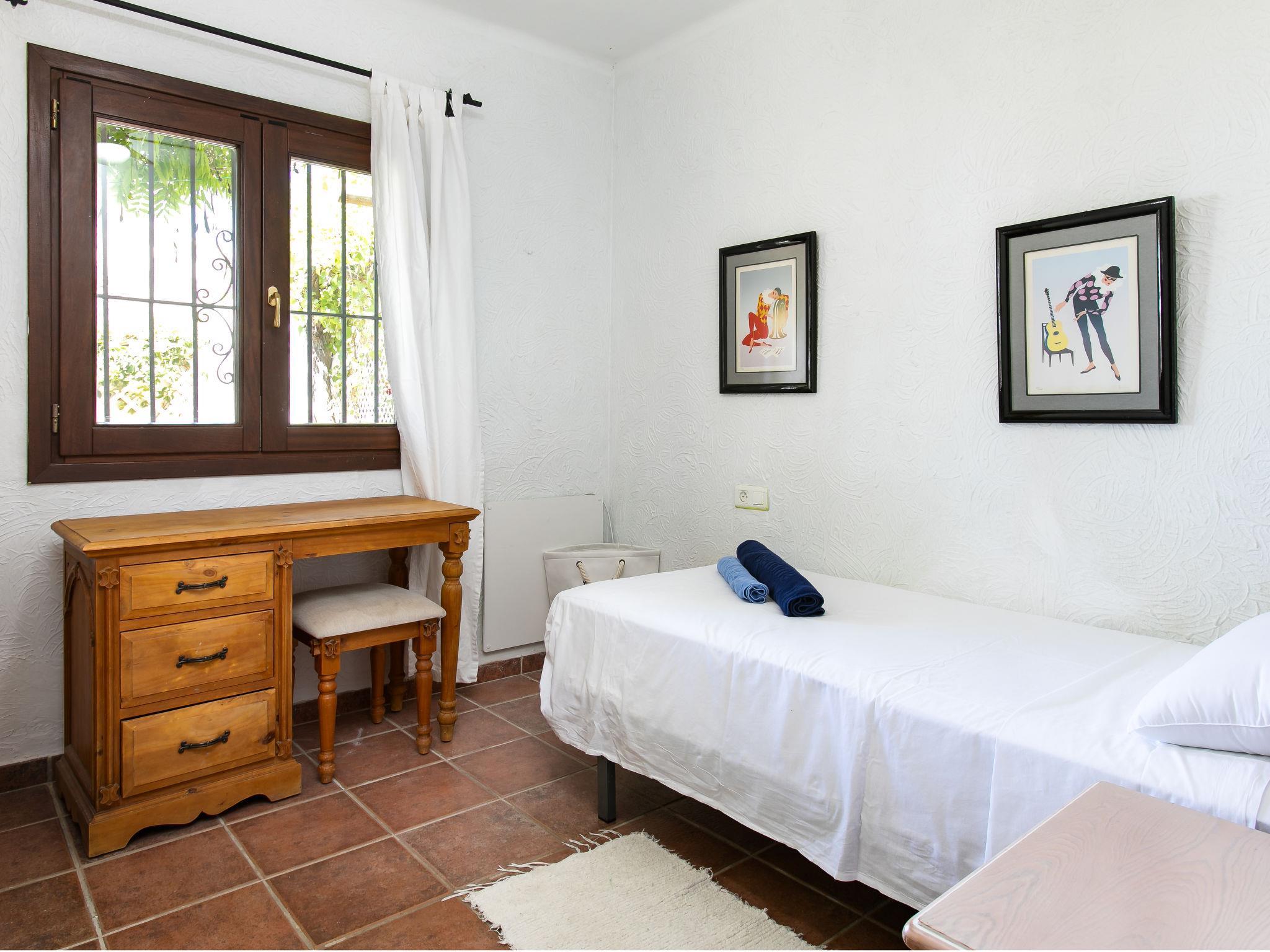 Beautiful, simple farmhouse "Celia Luise", detached. In the resort 1 km from the centre of Nerja, in a quiet, sunny position. Private: swimming pool (8 x 2 m, depth 100 - 175 cm, seasonal availability: 01.Jan. - 31.Dec.). Patio, pergola, garden furniture, barbecue, parking. Shop 500 m, shopping centre 2.3 km, bakery 100 m, bus stop 150 m, sandy beach "Burriana" 2.5 km, diving center 2.5 km. Sports harbour 17 km, golf course (18 hole) 20 km, sailing school 17 km, tennis 2 km, walking paths from the house 3 km. Nearby attractions: Cuevas de Nerja, Frigiliana, Acantilados de Maro, Museo de Nerja, Water park Aqua Velis, La Alhambra. Well-known ski regions can easily be reached: Sierra Nevada. Hiking paths: Sierra Tejeda, Sierra Almijara, Las Alpujarras. The owner does not accept any youth groups. Please note: Loading and unloading of baggage is possible at the holiday house.