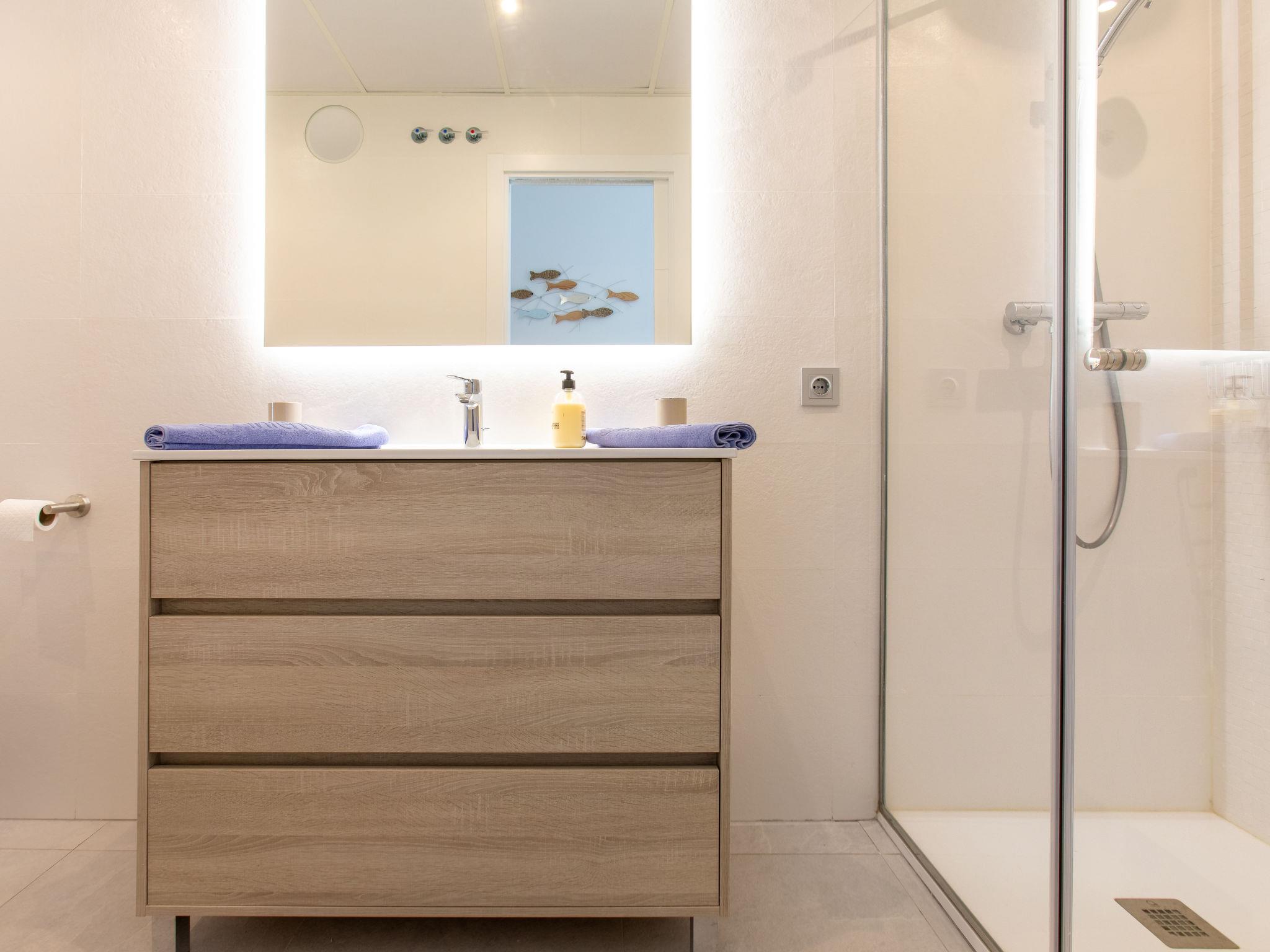 "Bayview Hills", 3-room apartment 85 m2. Practical and modern furnishings: living/dining room with dining table, TV, digital TV, international TV channels, air conditioning and forced-air heating. Exit to the balcony, to the terrace, to the veranda. 1 room with 1 double bed (180 cm, length 200 cm), shower/WC and double hand-basin (private) air conditioning and forced-air heating. Exit to the balcony. 1 room with 2 beds (90 cm, length 190 cm), air conditioning and forced-air heating. Exit to the balcony. Open kitchen (oven, dishwasher, 3 induction hot plates, toaster, kettle, microwave, freezer, electric coffee machine, cooking island) with bar. Shower/WC. Large terrace. Terrace furniture, deck chairs (2), sitting area. Panoramic view of the sea and the mountains. Facilities: washing machine, dryer, iron, children's high chair, baby cot for up to 2 year olds, hair dryer. Internet (WiFi, free). Parking space n 8 (roofed). Please note: suitable for families. Non-smokers only. Smoke alarm, fire extinguisher. VUF/MA/75751 // Reg. Nr.: ESFCTU0000290130010872270000000000000000VUF/MA/757512