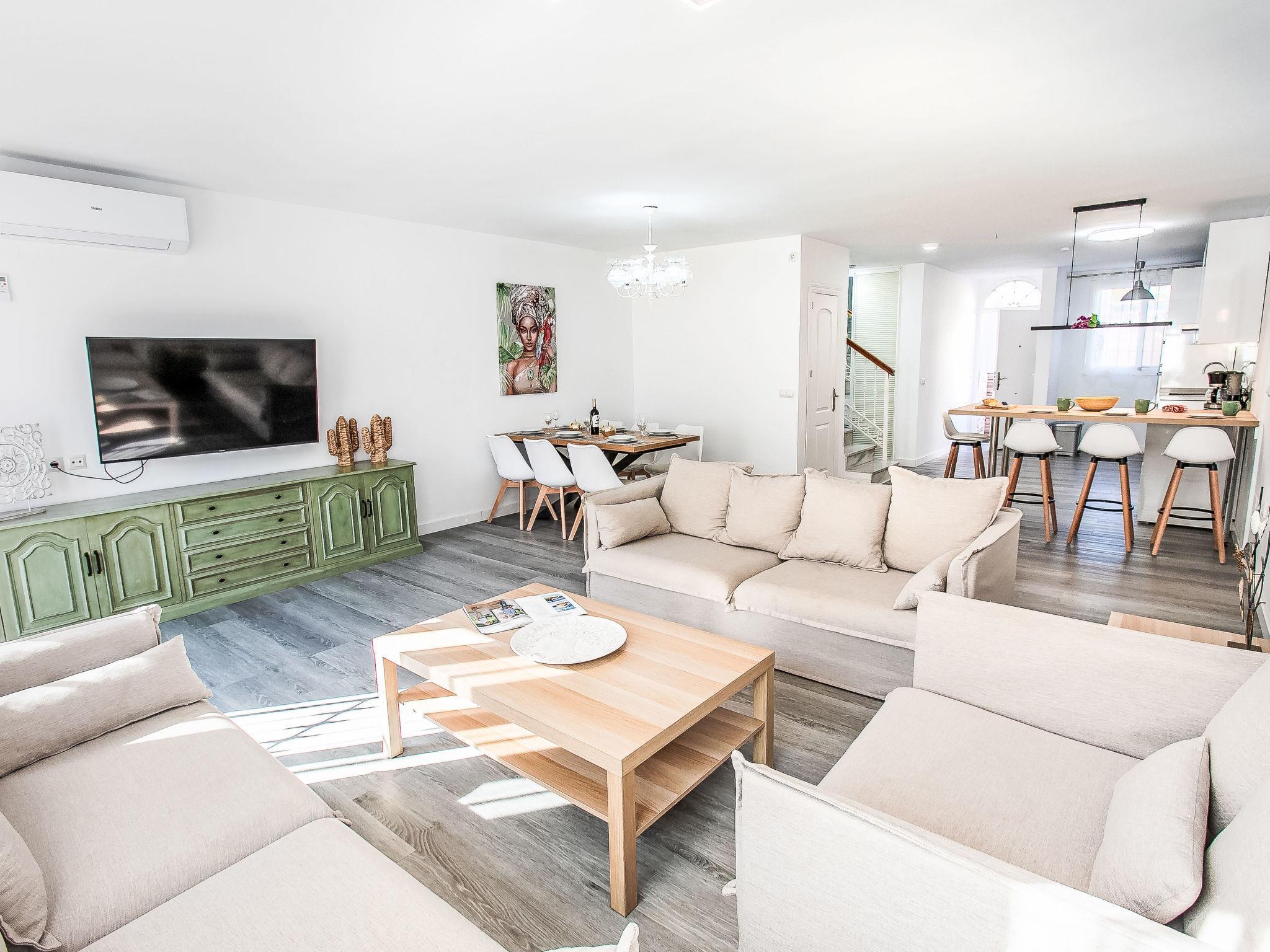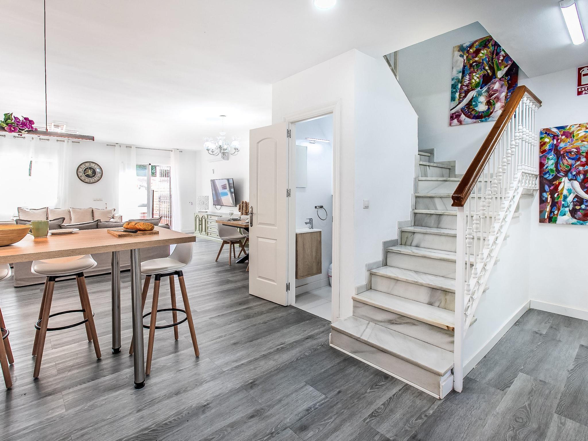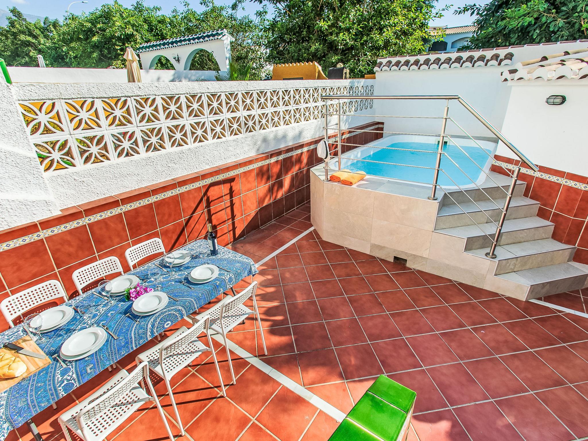 Nerja: Beautiful, cosy, comfortable terraced house "Cheng", 2 storeys. In the resort, 800 m from the centre, 3 km from the edge of the forest, 500 m from the sea, 500 m from the beach, 1.5 km from the river, south facing position. Private: courtyard, swimming pool (above ground) (4 x 3 m, 12 m2, depth 80 - 140 cm, seasonal availability: 01.Jan. - 31.Dec.). WC in the pool area, outdoor shower, pool maintenance by the owner/gardener. In the house: solarium, washing machine. Shop, grocery 300 m, supermarket 500 m, restaurant 200 m, bar, bakery 150 m, bus stop 50 m. Golf course (18 hole) 20 km. Nearby attractions: Cueva de Nerja 4 km, Playa Burriana 700 m, Frigiliana 5 km, Málaga 58 km, Granada 97 km, Almuñécar 23 km. Well-known ski regions can easily be reached: Sierra Nevada 126 km. Hiking paths: Sierra Tejeda 9 km, Sierra Almijara 12 km, Alpujarras 100 km. The owner does not accept any youth groups.