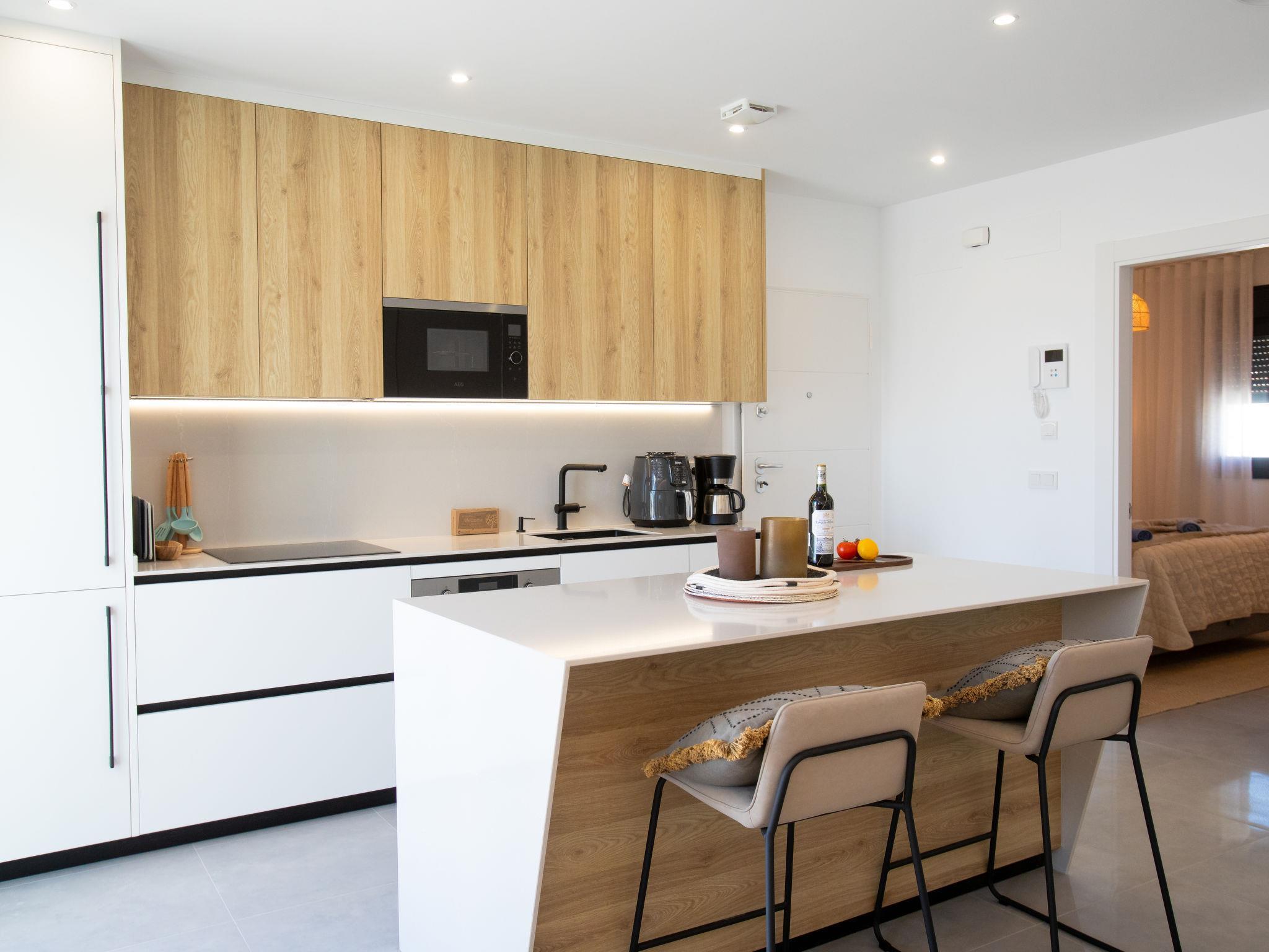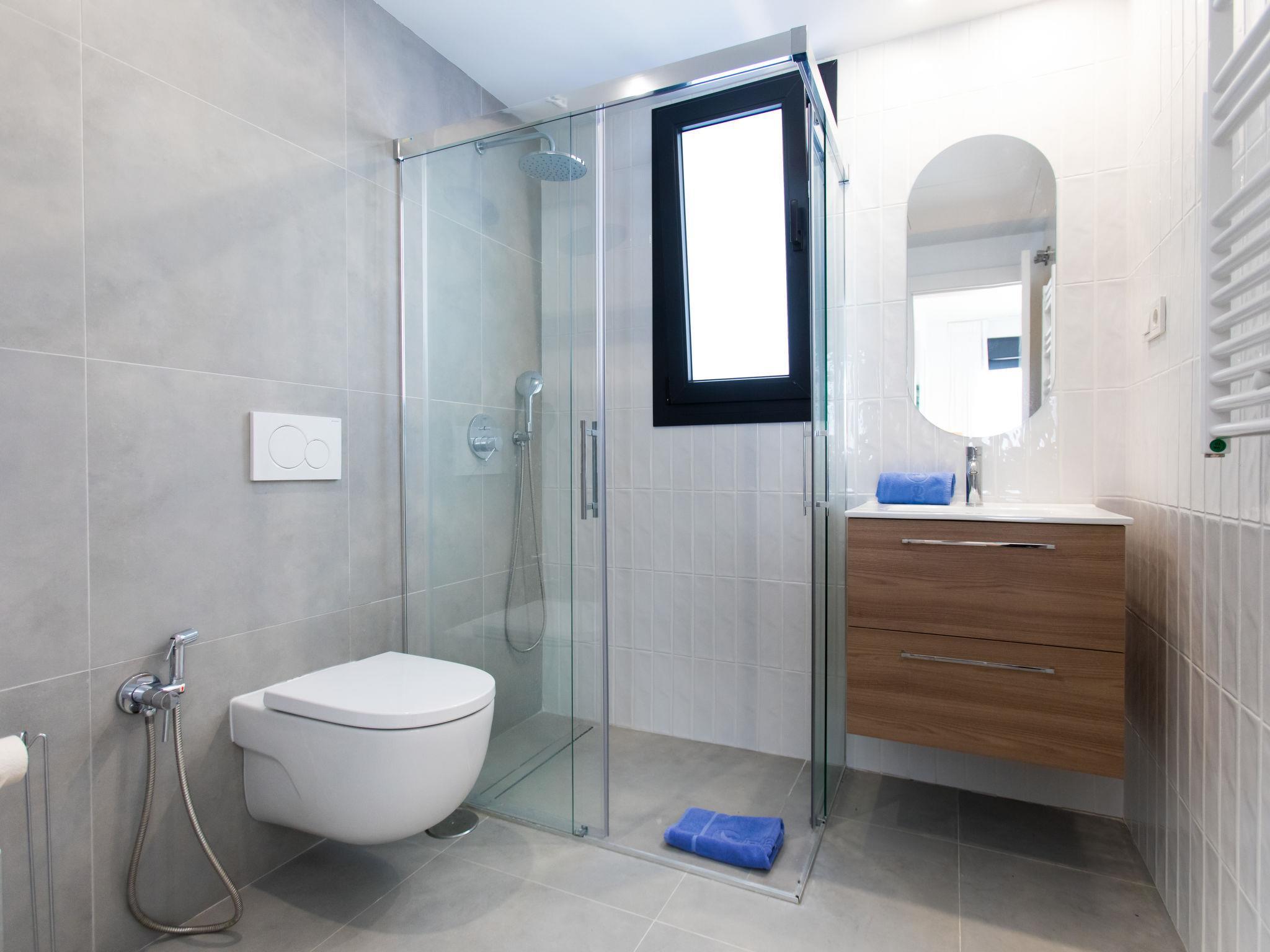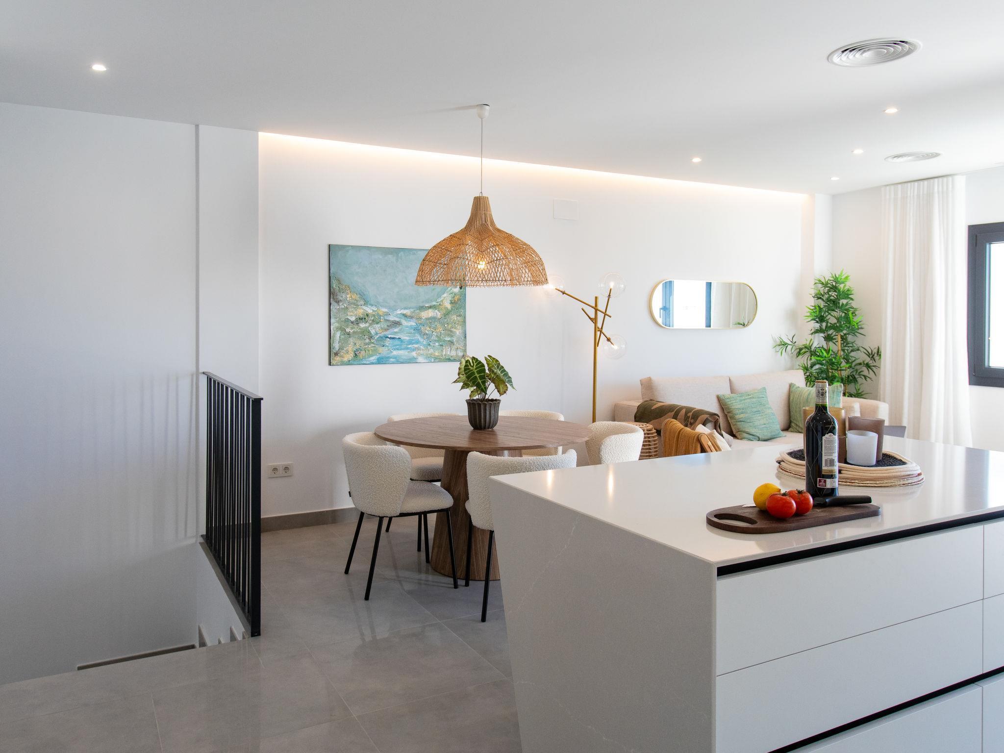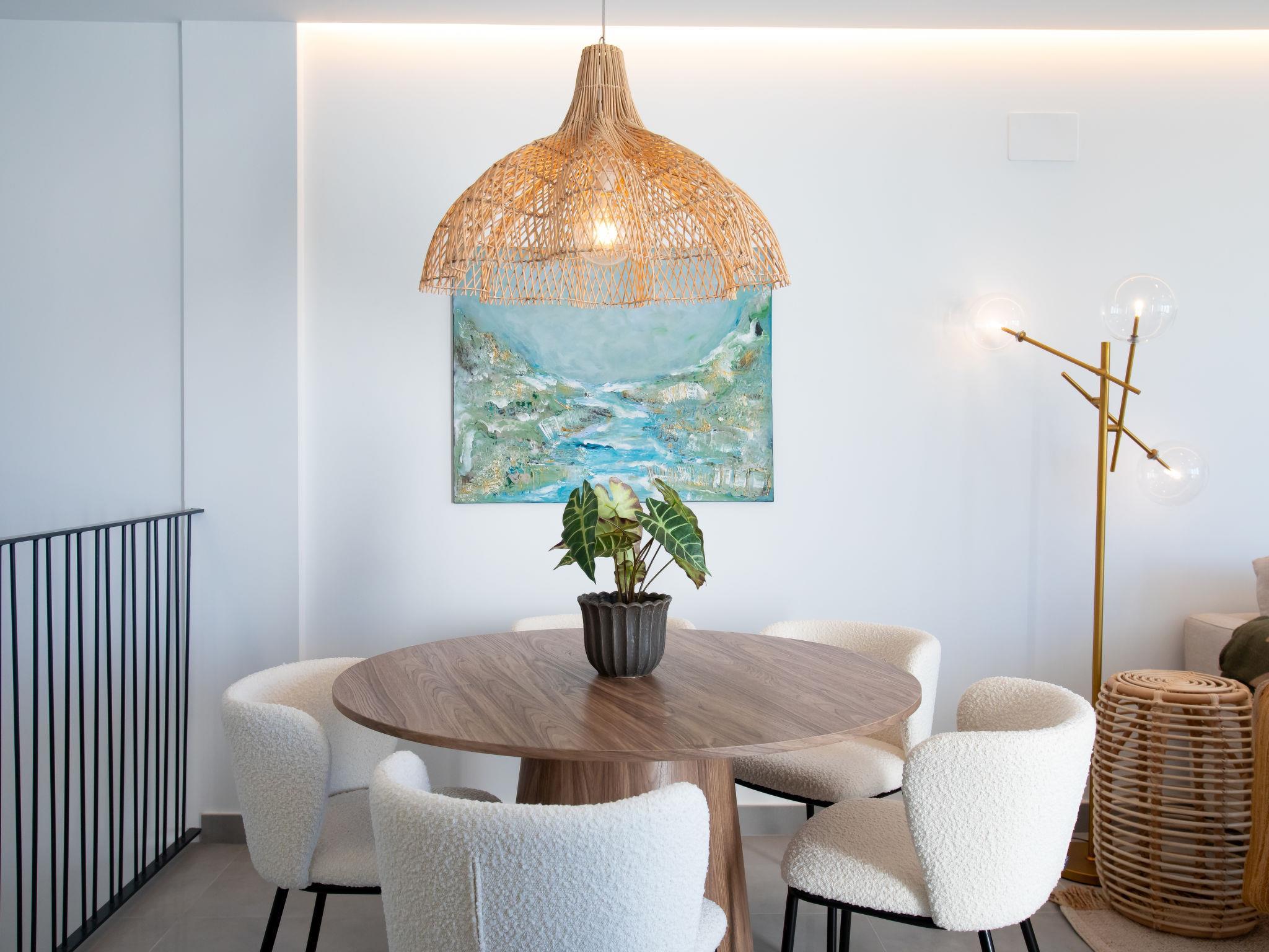 "Skyhill", 4-room terraced house 110 m2. Spacious and bright, comfortable and modern furnishings: 1 room with 2 beds (90 cm, length 200 cm), air conditioning and forced-air heating. Exit to the terrace. 1 room with 1 double bed (150 cm, length 200 cm), shower/WC, air conditioning and forced-air heating. Exit to the terrace. Shower/WC. Upper floor: living/dining room with digital TV, air conditioning and forced-air heating. Exit to the terrace. 1 room with 1 bed (150 cm, length 200 cm). Open kitchen (oven, dishwasher, 4 ceramic glass hob hotplates, toaster, kettle, microwave, electric coffee machine, cooking island). Shower/WC. 3 terraces. Terrace furniture, electric barbecue, deck chairs. Very beautiful view of the sea and the resort. Facilities: washing machine, dryer, safe, iron, children's high chair, baby cot, hair dryer. Internet (WiFi, free). Please note: fire extinguisher. VUT/MA/76381 // Reg. Nr.: ESFCTU0000290130010998480000000000000000VUT/MA/763818
