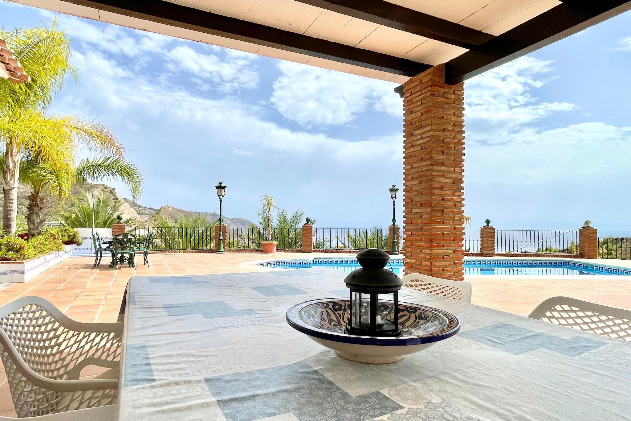 Enkelt etagers landhus, beliggende mellem havet og bjergene kun 3 km fra Maro og 7 km fra Nerja. Molino de Papel strand er 700m væk fra huset og kan nås til fods. Der er gå muligheder langs Rio de la Miel stien; også i nærområdet. Landstedet ligger i toppen af en avocado og mango gård med skønne terrasser med udsigt over havet og bjergene. Hele terrassen er omgivet af haver, med rosenbusker og mediarræer, jasmin, dama de noche og stilleben. Ejendommen er kun et stenkast væk fra de naturlige strande Cantarrijan, El Cañuelo, La Alberquilla osv. Området er ekstremt fredeligt.