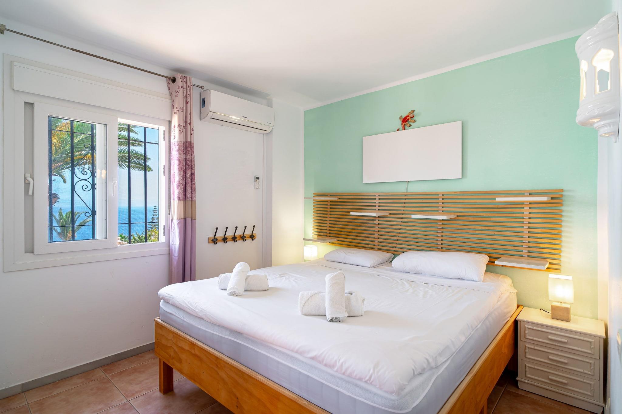 Denne hyggelige villa er designet til komfort og naturskøn afslapning og har to soveværelser – et med en dobbeltseng og det andet med to enkeltsenge – der komfortabelt rummer op til fire gæster. Højdepunktet er en privat terrasse med en fantastisk havudsigt, komplet med liggestole og en udendørs spiseplads. Den er udstyret med aircondition for komfort året rundt og højhastighedsinternet til underholdning eller fjernarbejde. Gæsterne har også adgang til en sæsonbestemt fælles pool med liggestole og parasoller. Villaen er røgfri og kæledyrsfri, med valgfri ekstraudstyr som en barneseng, højstol eller velkomstpakke tilgængelig. Villaen ligger kun 500 meter fra stranden og 1,5 km fra Nerjas centrum og tilbyder nem adgang til områdets mest attraktive steder. Et busstoppested 400 meter væk tilbyder regelmæssige forbindelser til byen, det lokale marked og Burriana-stranden. Selvom en bil anbefales for nemheds skyld, er offentlig transport og taxaer let tilgængelige. Nærliggende strande og traditionelle strandbarer giver gæsterne mulighed for at nyde autentisk andalusisk kystcharme, mens lokale butikker og spisesteder kun ligger en kort køretur eller gåtur væk. Villaen har et veludstyret køkken med ovn, mikrobølgeovn, køleskab, fryser, kaffemaskine, brødrister og køkkenredskaber, ideelt til selvforplejning. Der er også et moderne badeværelse med bruseniche, hårtørrer og håndklæder. For ekstra bekvemmelighed er huset udstyret med strygejern, strygebræt og et velkomstsæt med rengøringsmidler og toiletartikler.